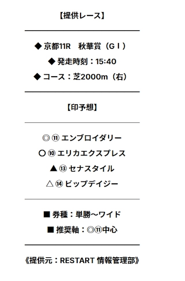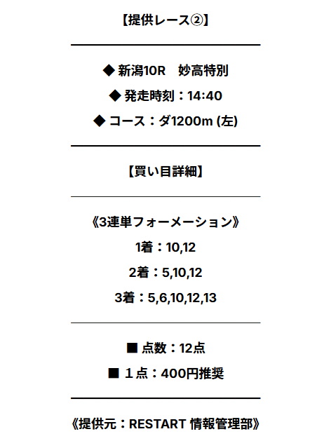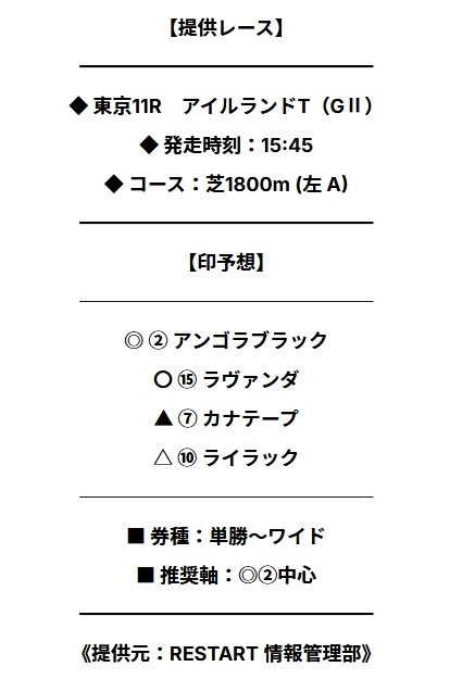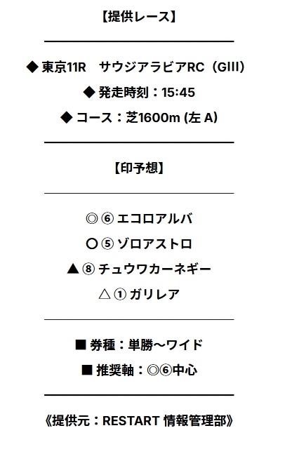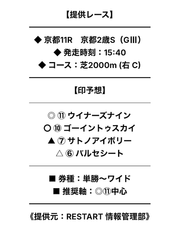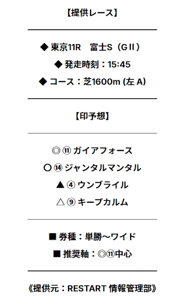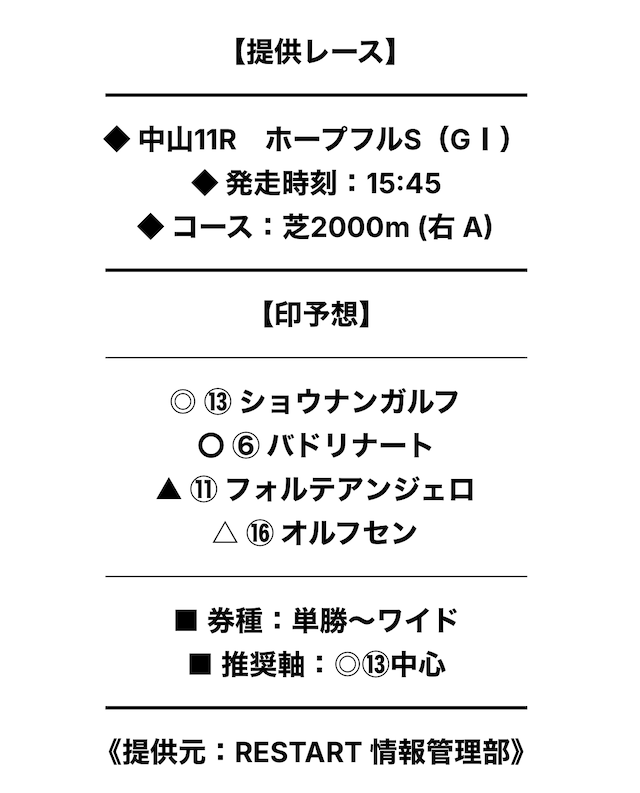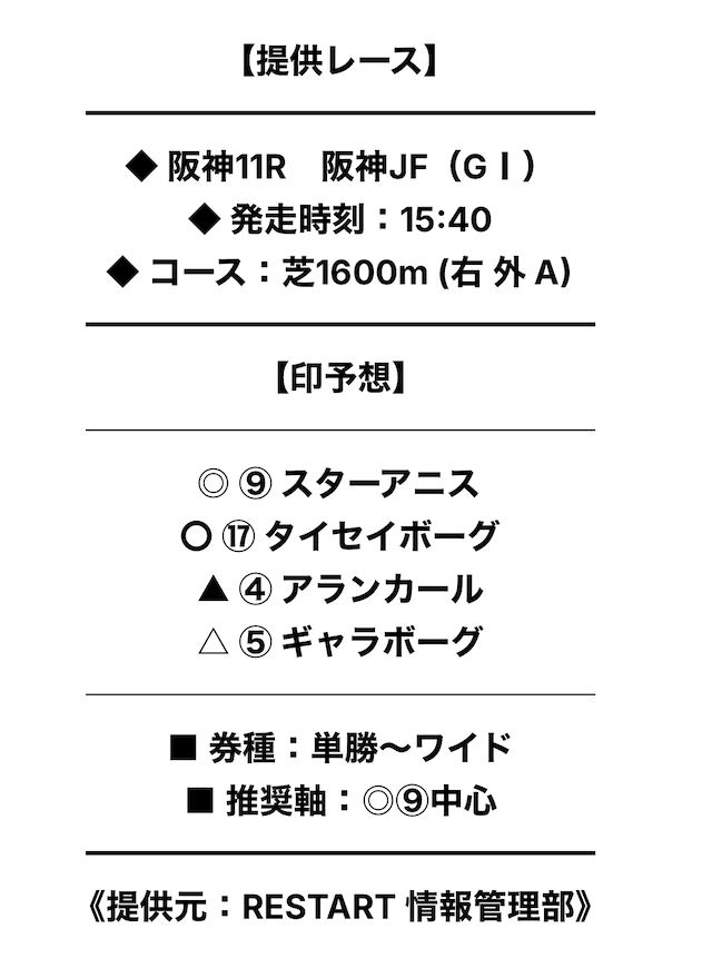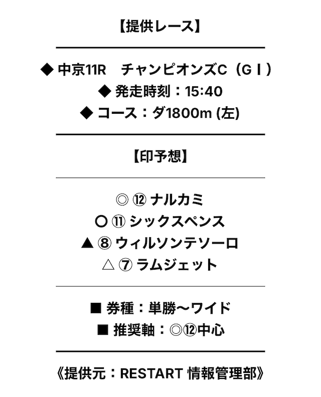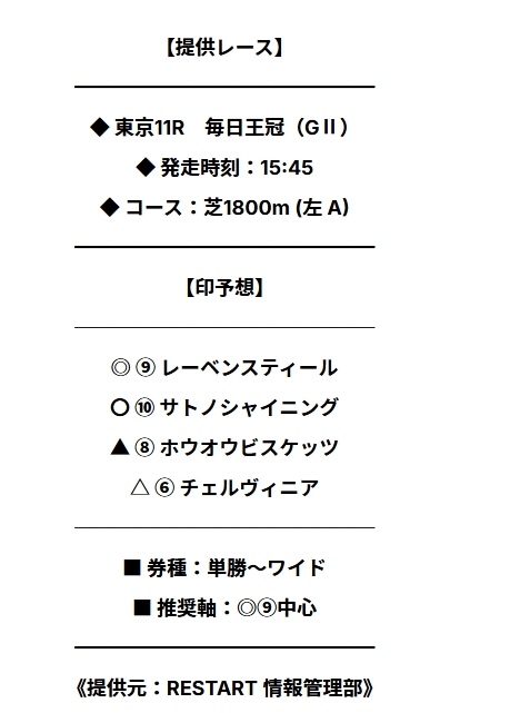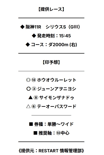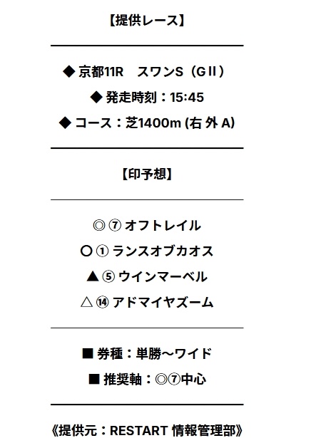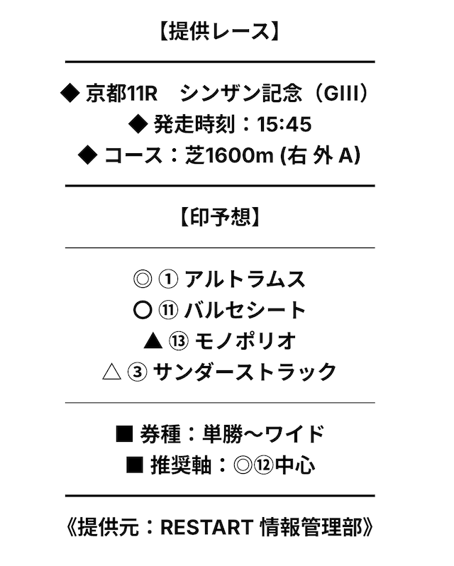 リスタートは、1着候補から人気馬をほとんど切った予想を公開しました。