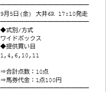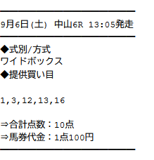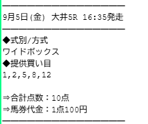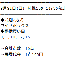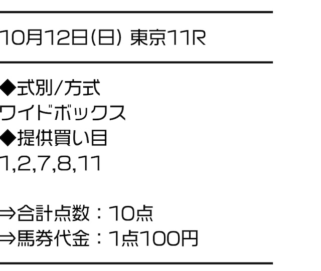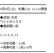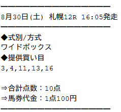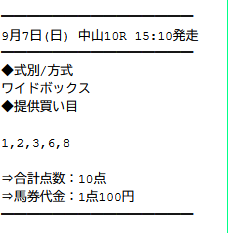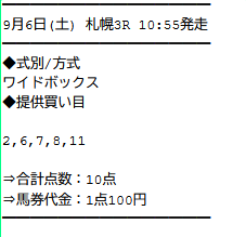 実際に公開された買い目がこちらです。