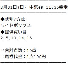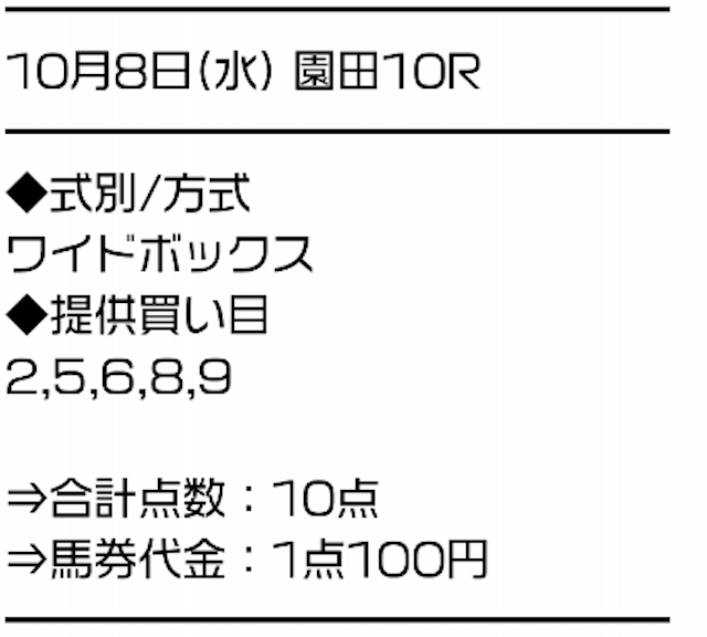 買い目は10点!コスパ良し!