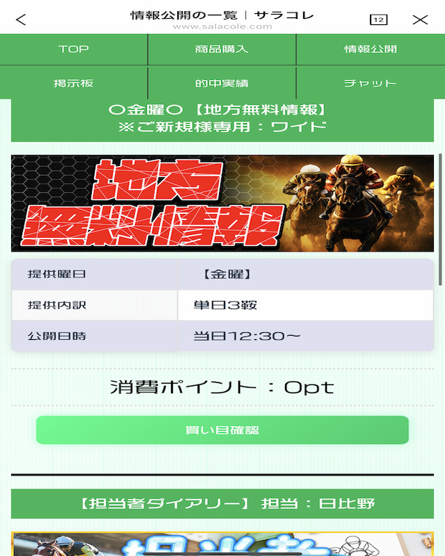 50万円の的中実績や豊富な競馬情報のコンテンツも確認出来ました。