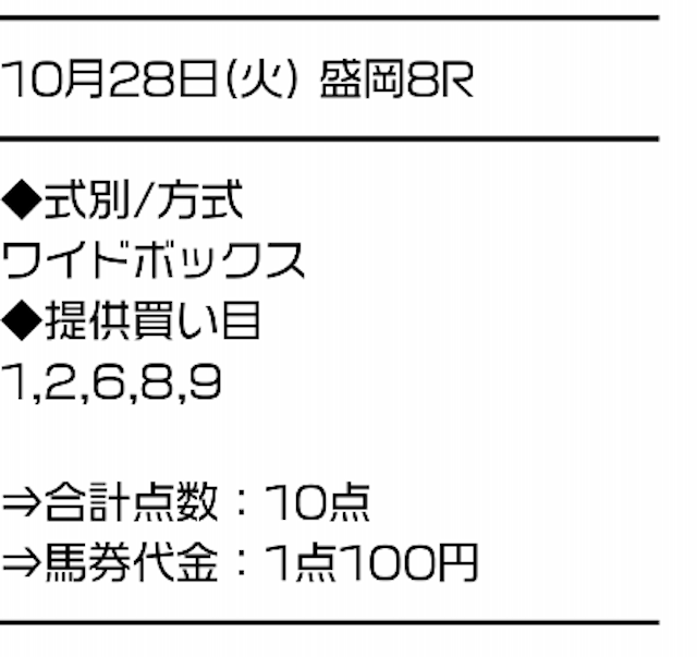 投資金額は1点100円となっていますが、馬ラボはまとまった払戻が欲しいため、1点1,000円で購入して勝負していきます!