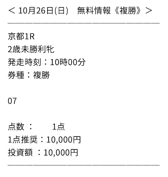 ★★★★★5.0 ゆうき 競馬歴:4〜5年 30代男性 12連勝しました!半信半疑で始めましたが、まさかここまで当たるとは思っていませんでした‥笑スター競馬が掲げている通り、これからは「資産運用」として競馬を続けたいと思います!これはもう、みんなに自慢しますw12連勝も出来るのは、スター競馬が本当に実力を持っているからこそ出せる結果ですね。