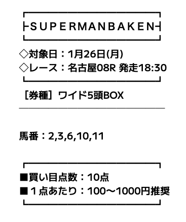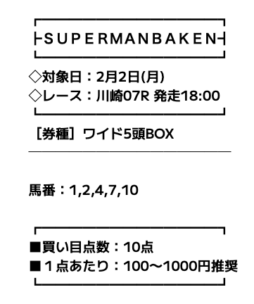スーパーマンバケンの無料予想で勝負!【1回目】