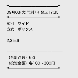 推奨されている投資金額は1点100〜300円ですが、ワイドは配当がつきづらい券種...。