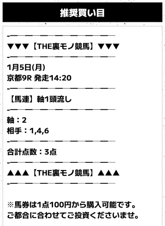 THE裏モノ競馬の無料予想で勝負!【1回目】