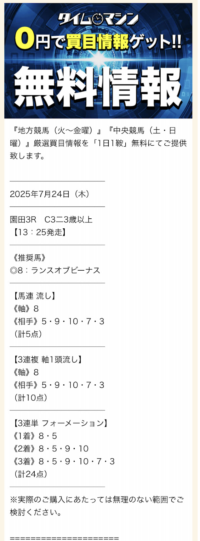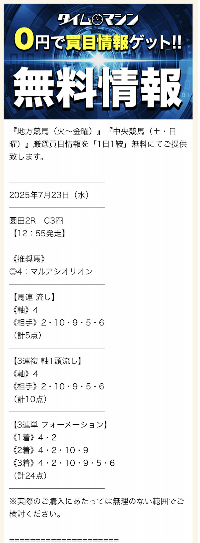 タイムマシンの無料予想で勝負!【1回目】