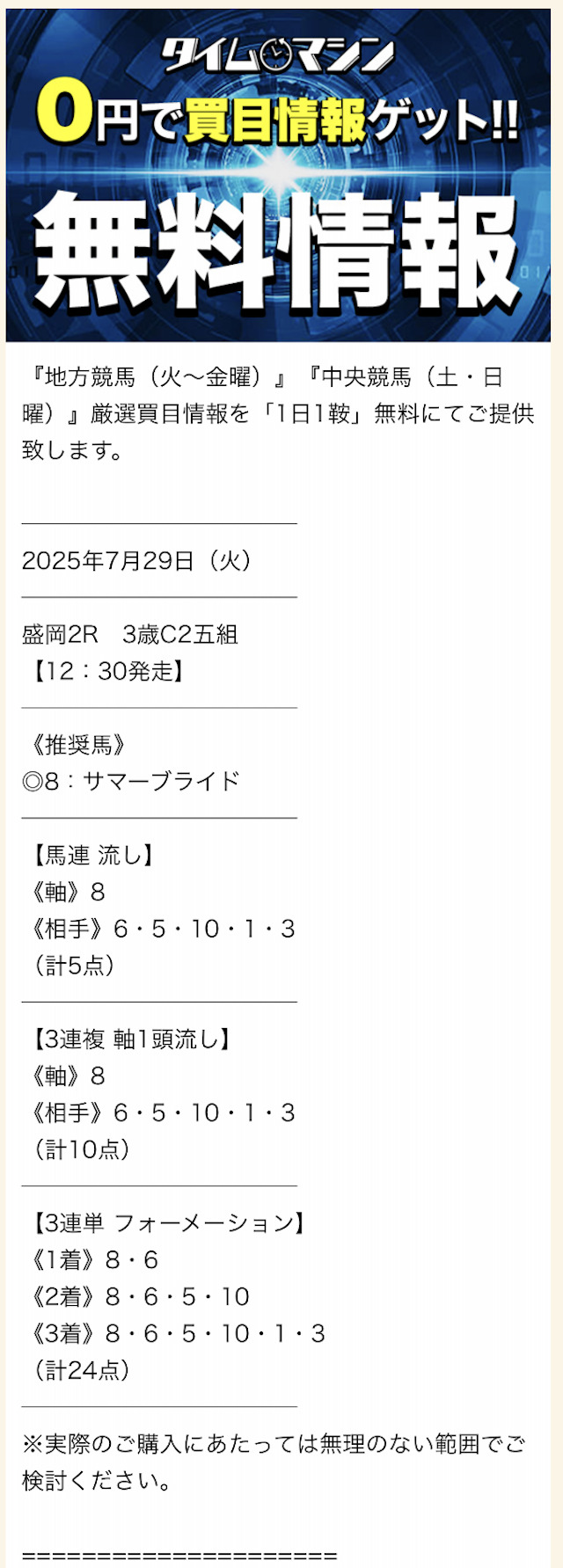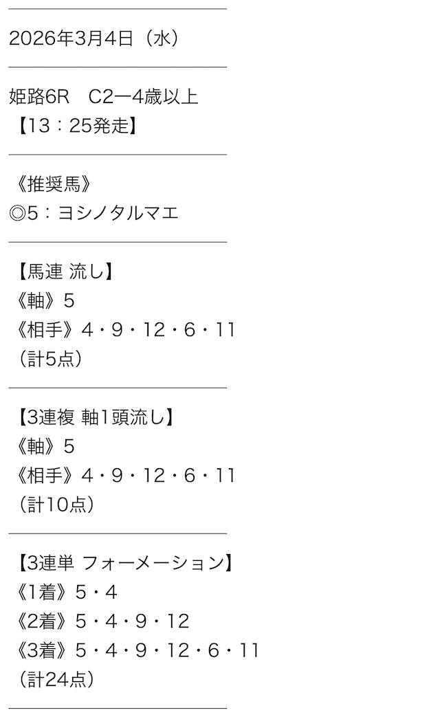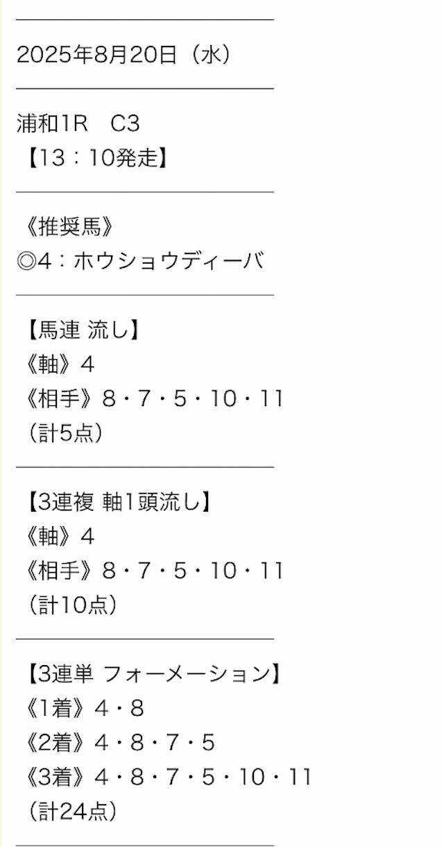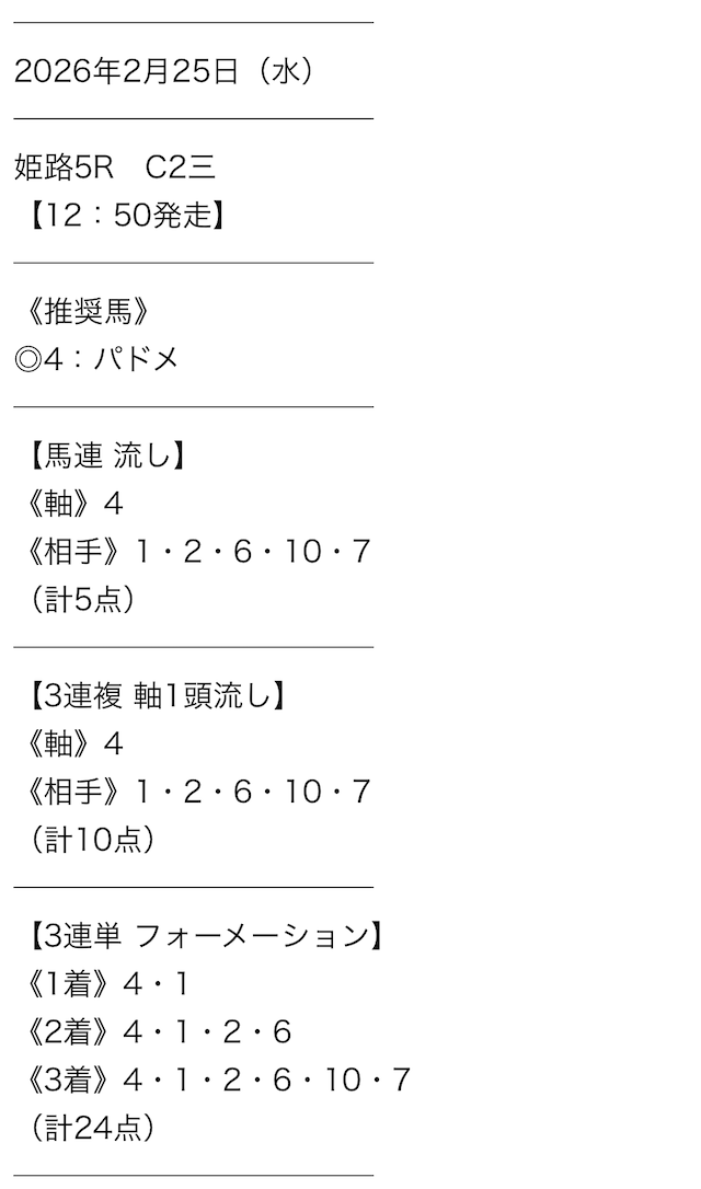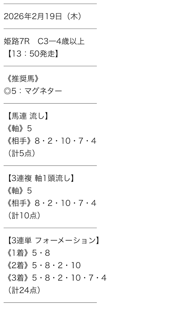 • 提供数:毎日1レース