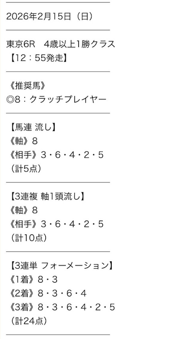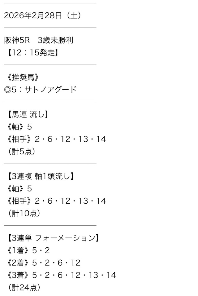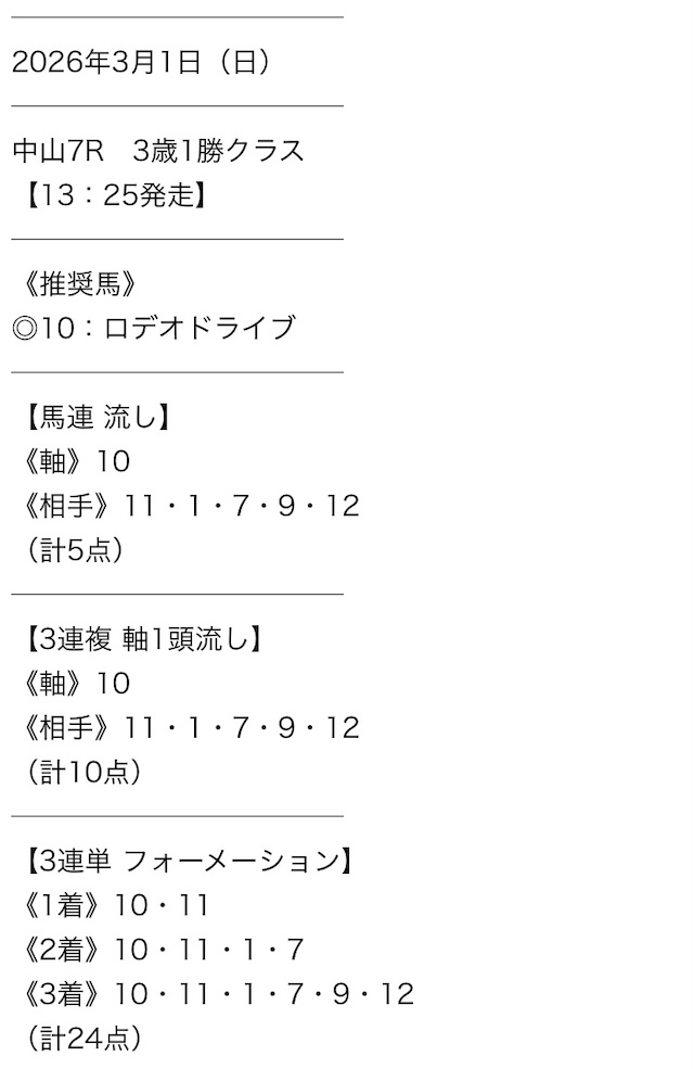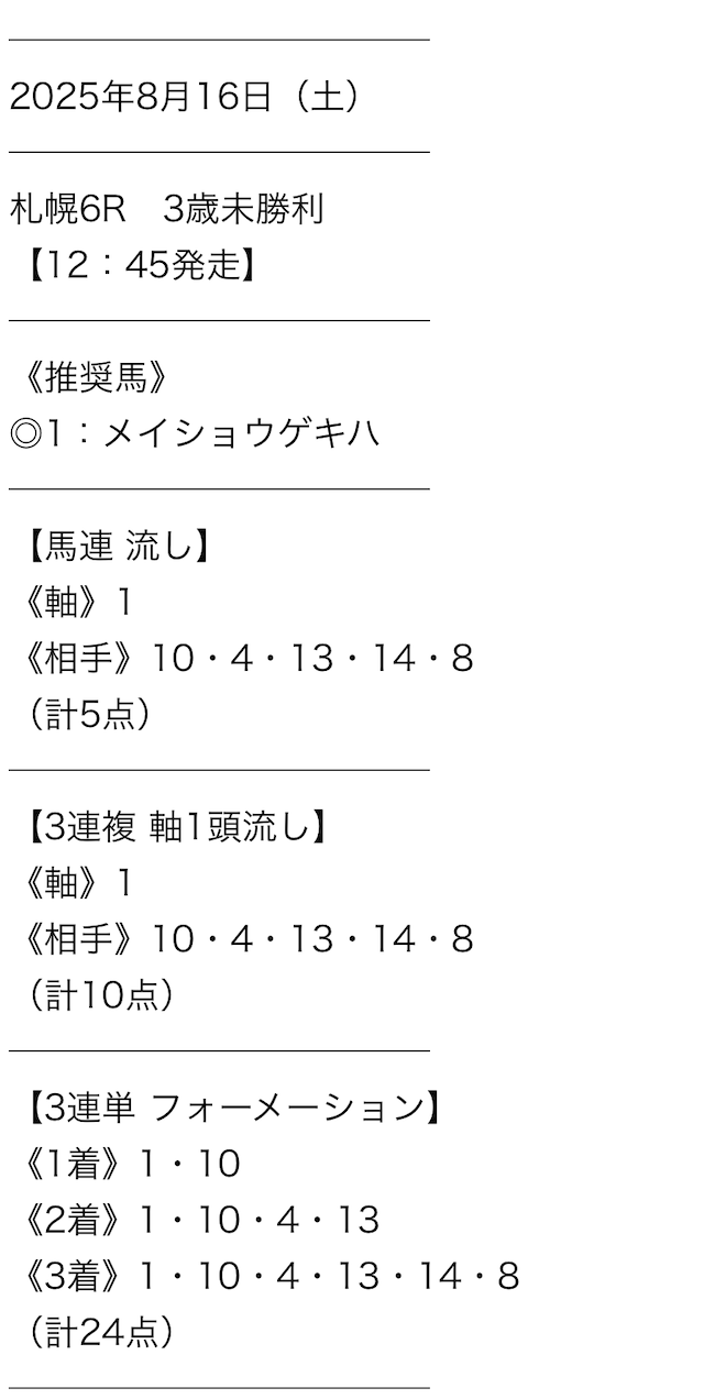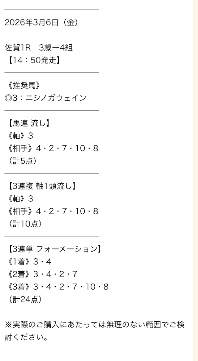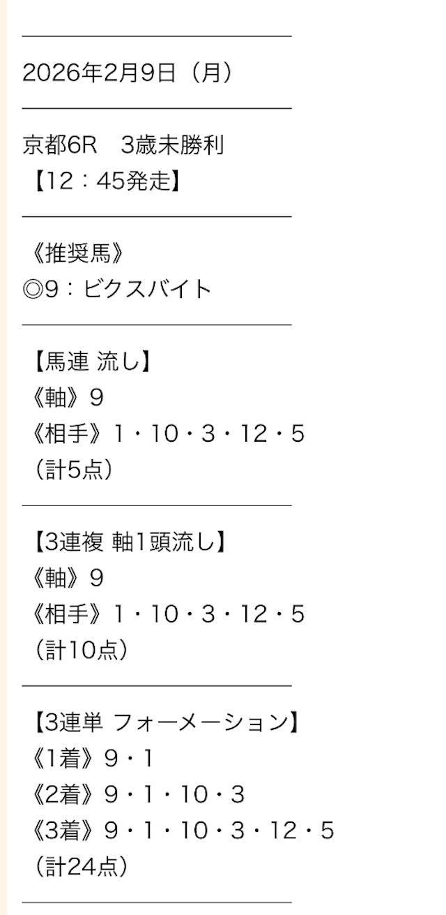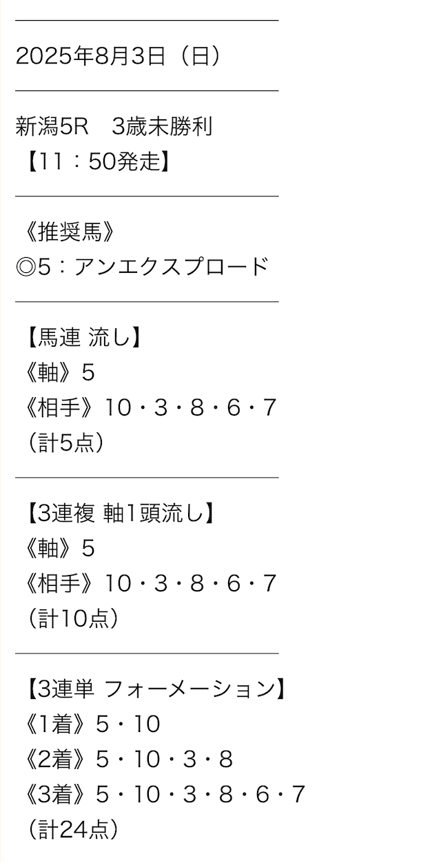 実際に公開された買い目がこちらです。