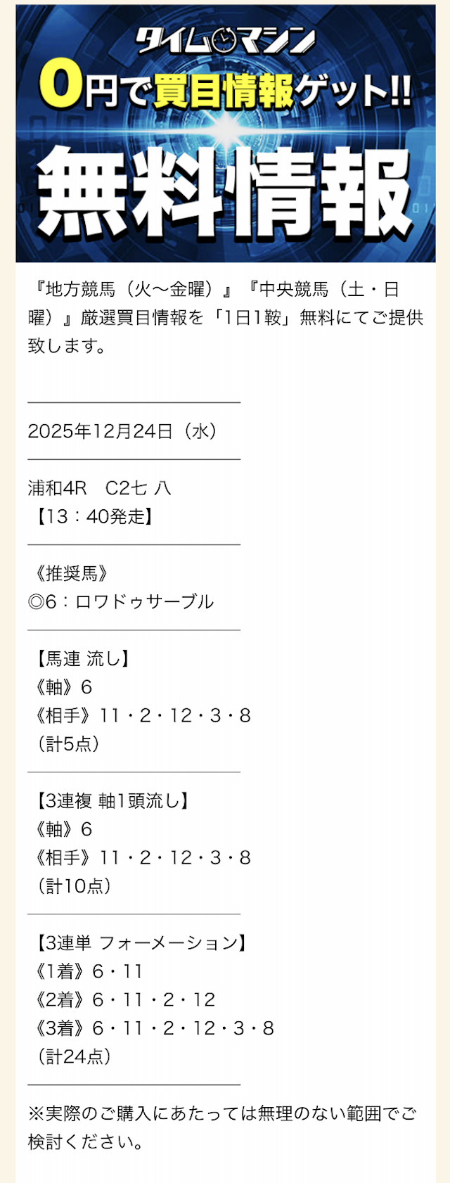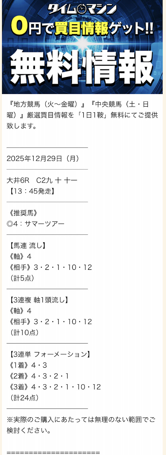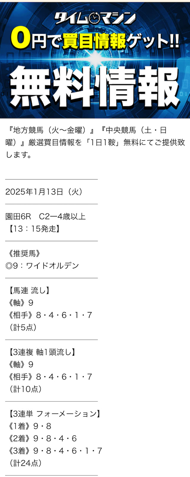 今回見つけたのは『タイムマシン』という競馬予想サイト。