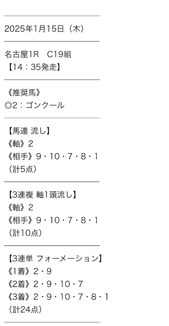 馬ラボは指示通りの点数で、1点1,000円で購入して勝負!