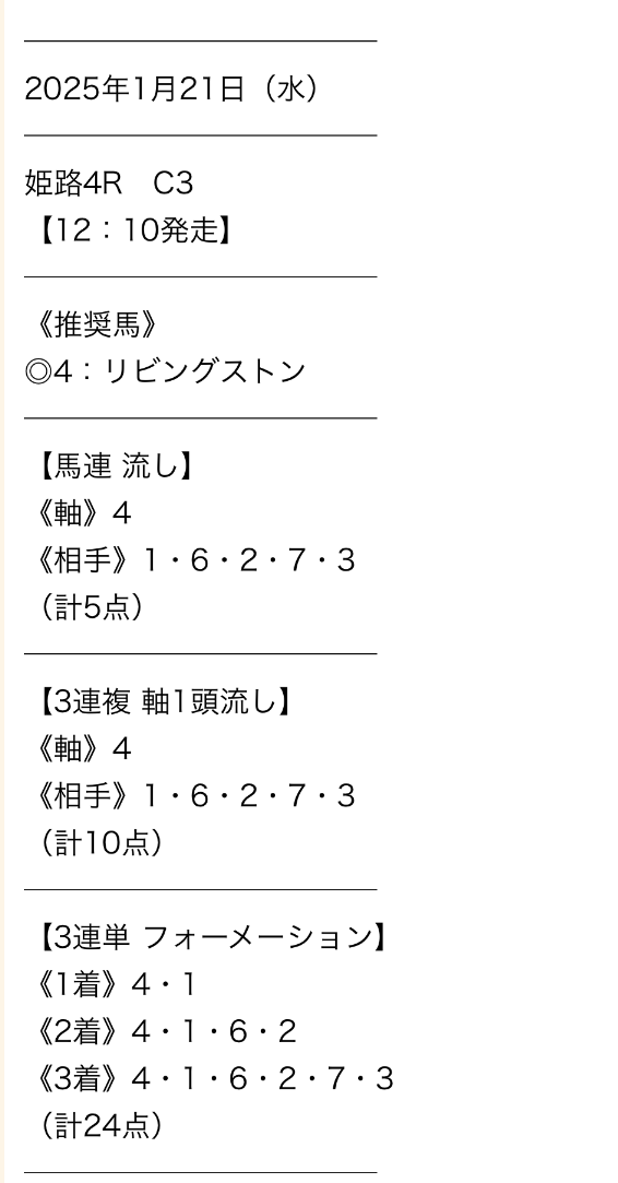 点数については、馬連が5点、3連複が10点、3連単は24点となっています。