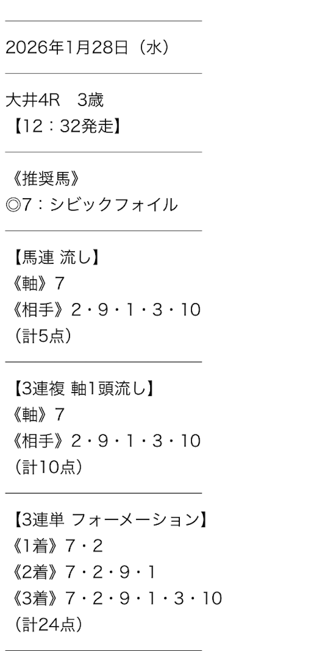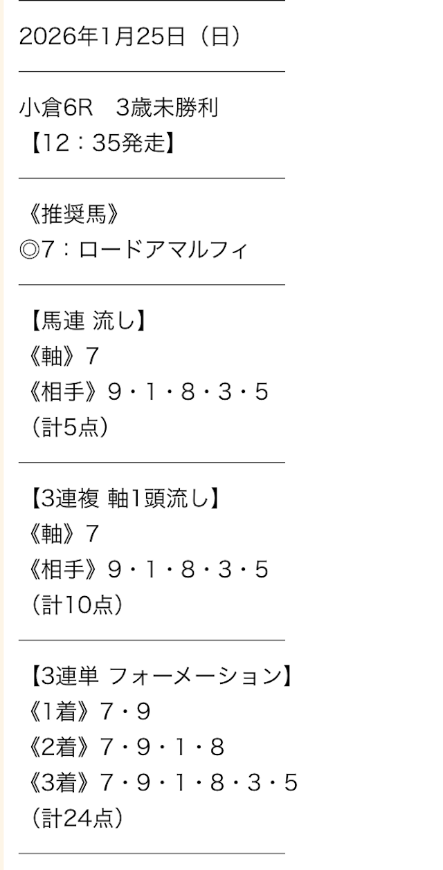23戦6勝17敗 | 26% | 73% | ワイド | 3点(◎-◯▲△) |