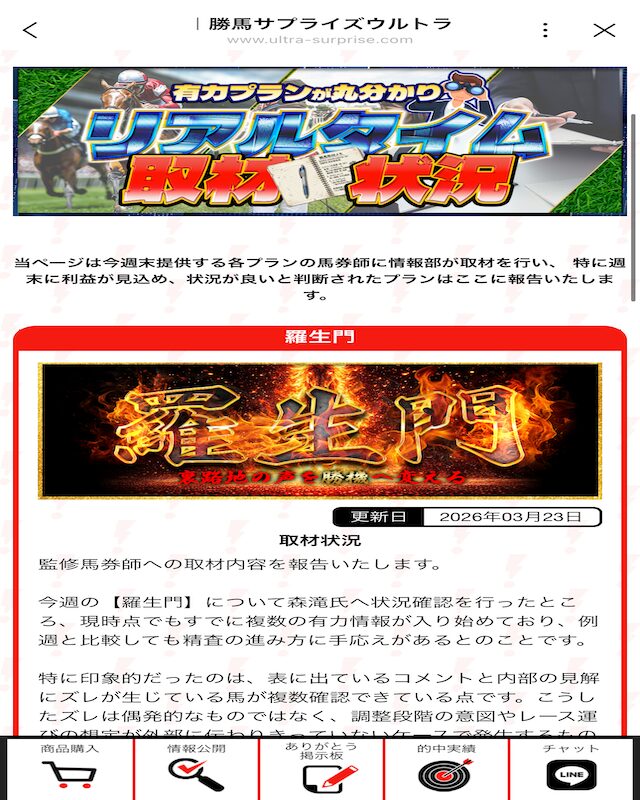 今回見つけたのは『勝馬サプライズウルトラ』という競馬予想サイト。