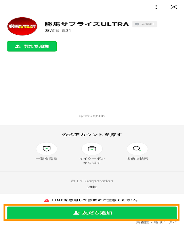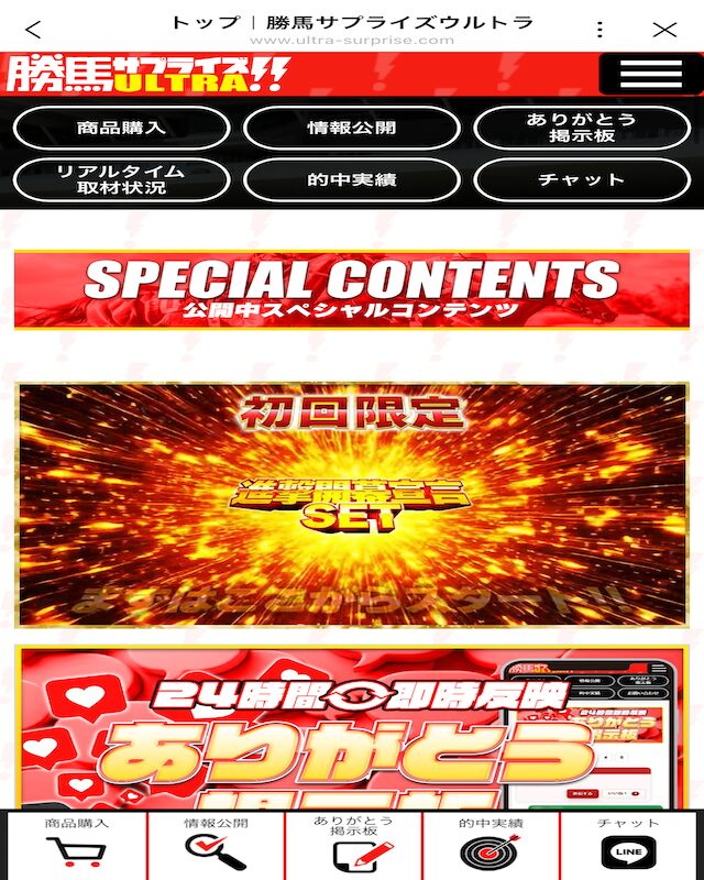 勝馬サプライズウルトラは、公式サイトからLINEの友達追加をすれば利用できます。