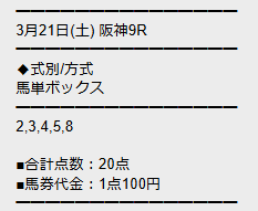 予想が当たると判明している以上、勝馬サプライズウルトラの予想で勝負しない理由はありません。