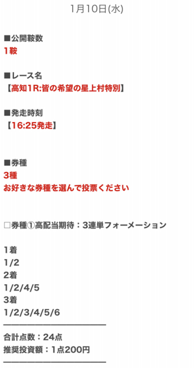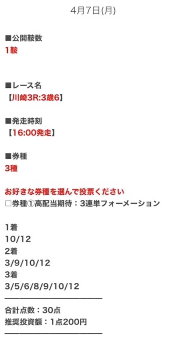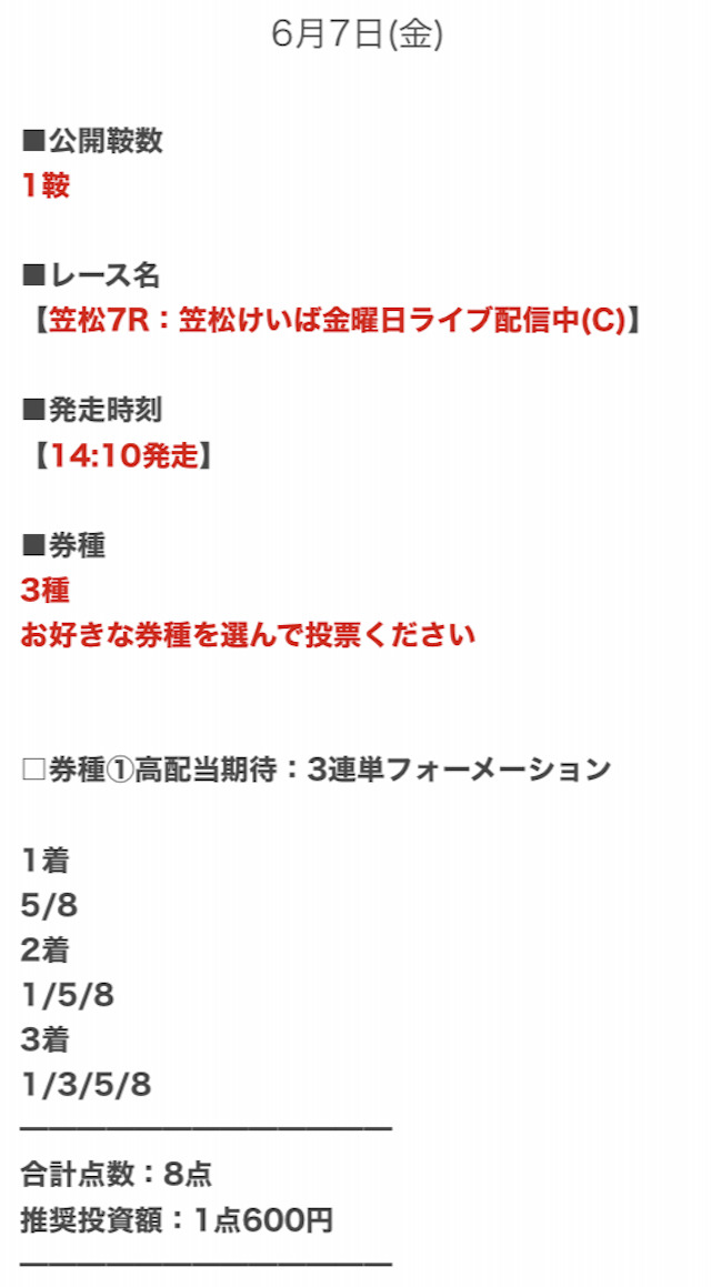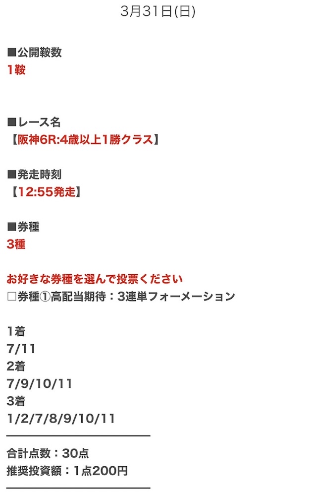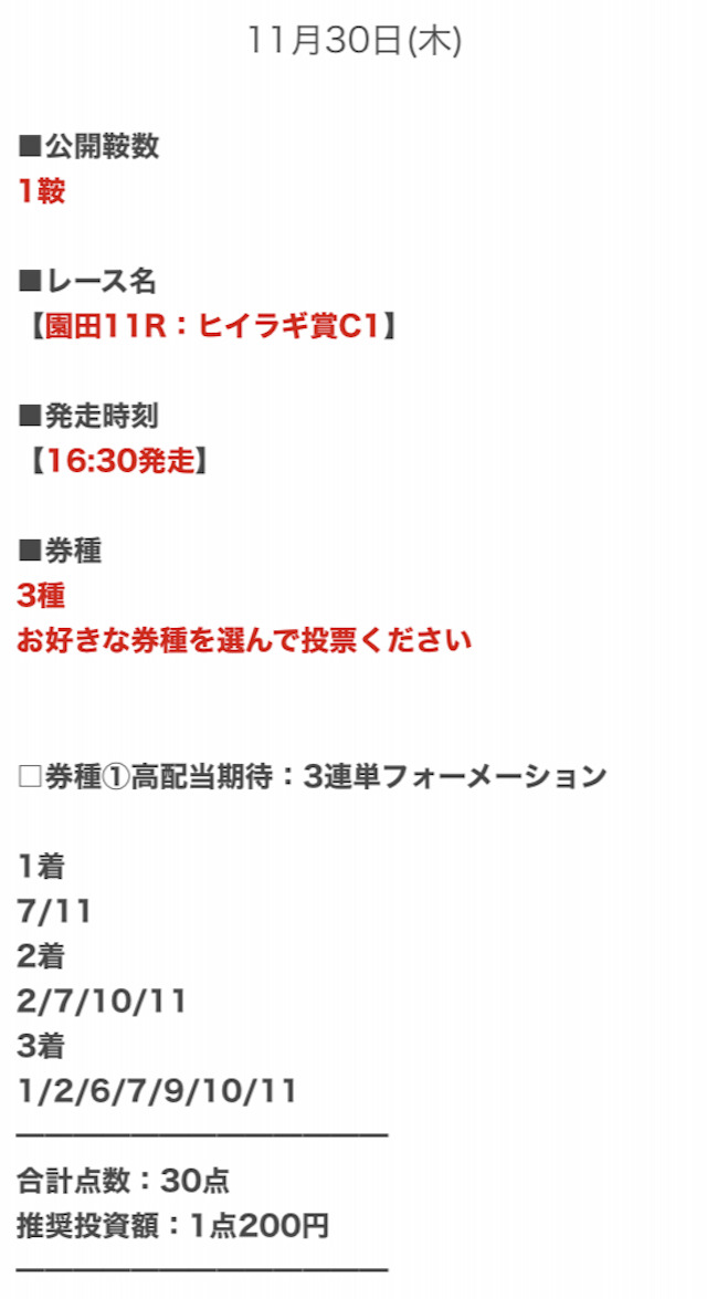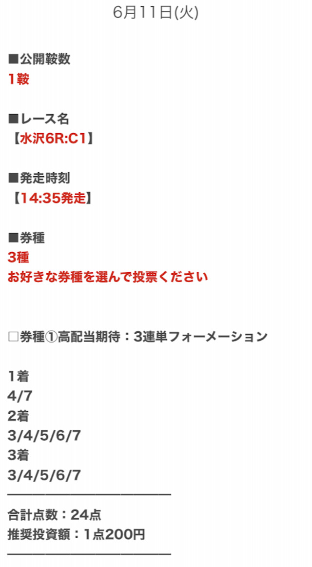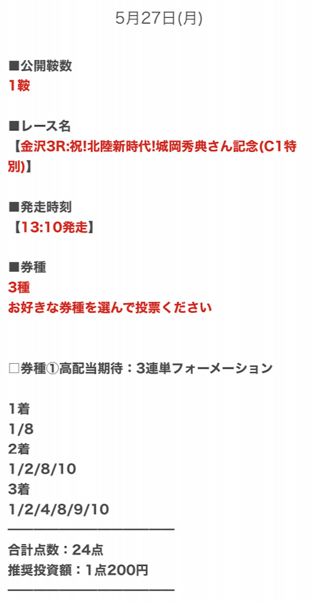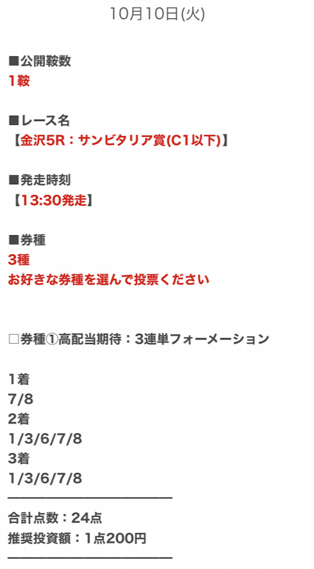 予想は毎日公開され、公開時間はレース当日の10時ごろ。