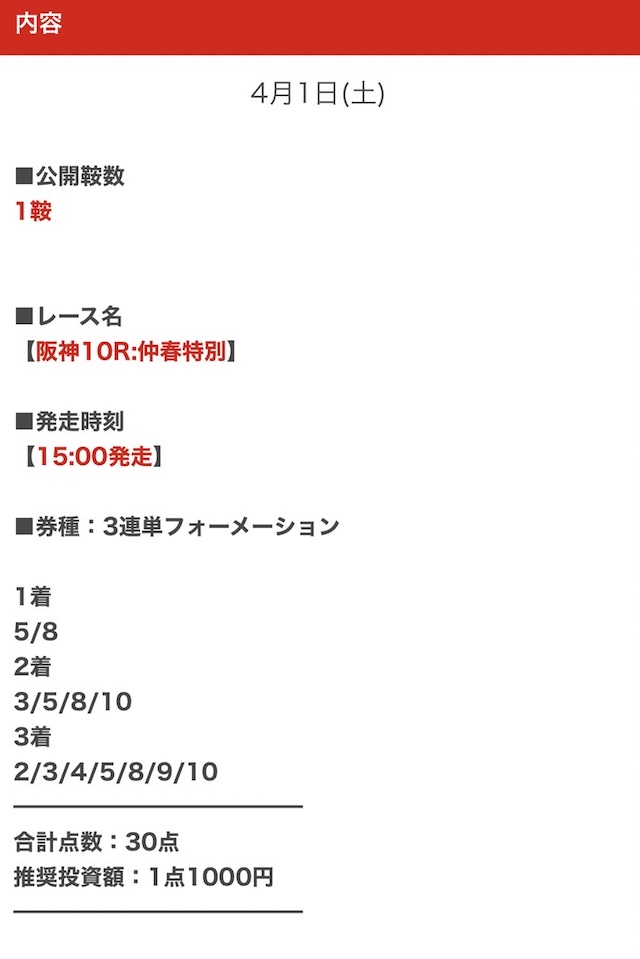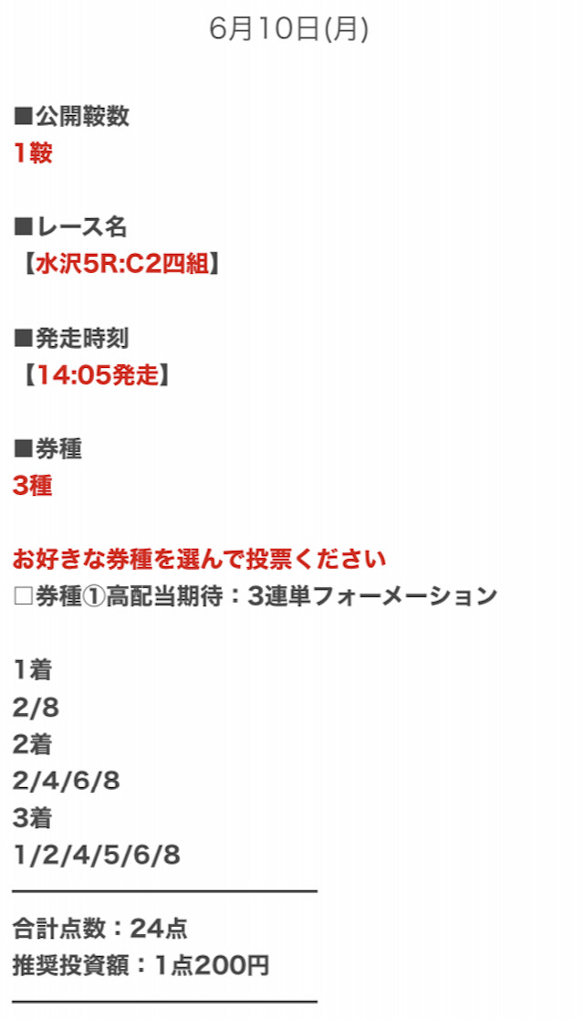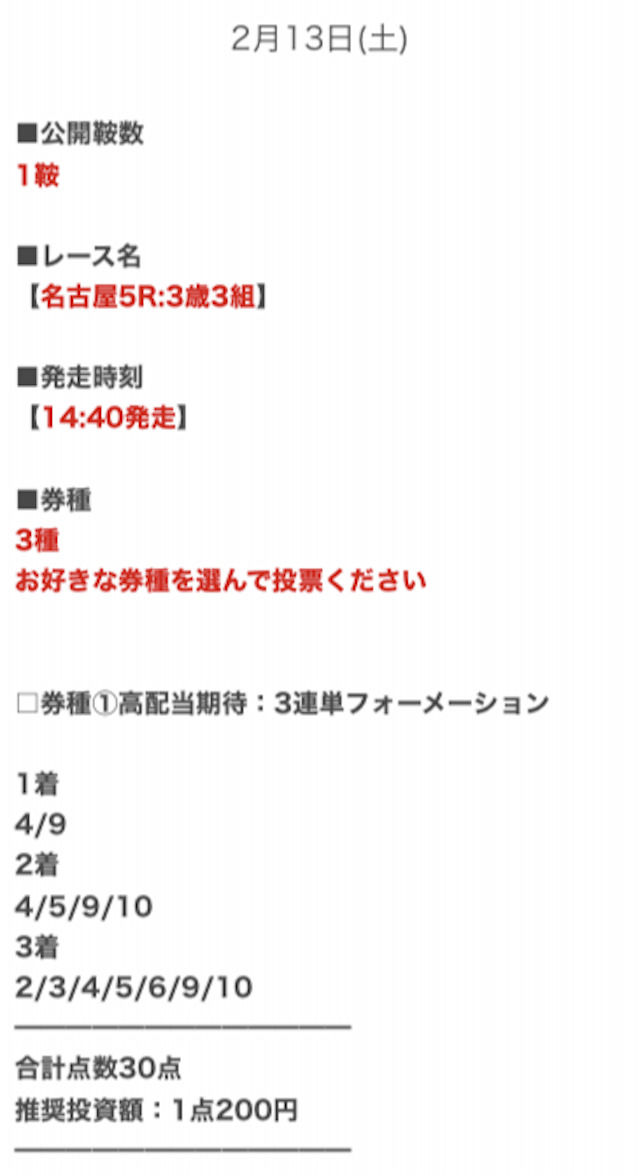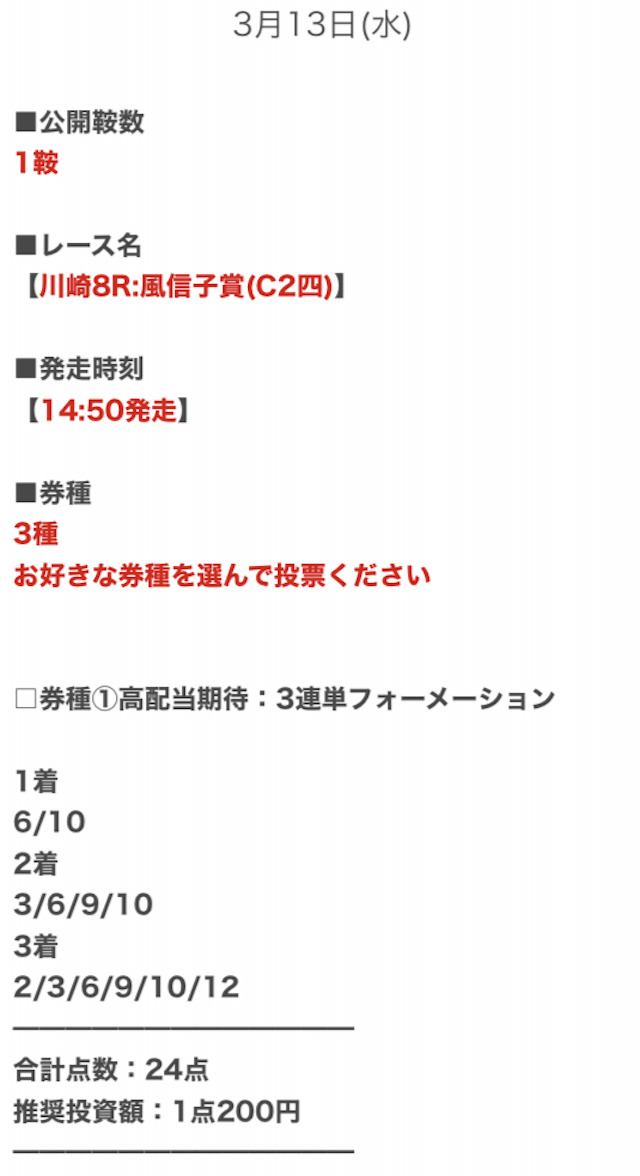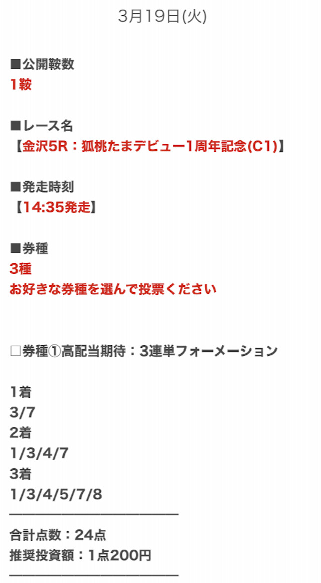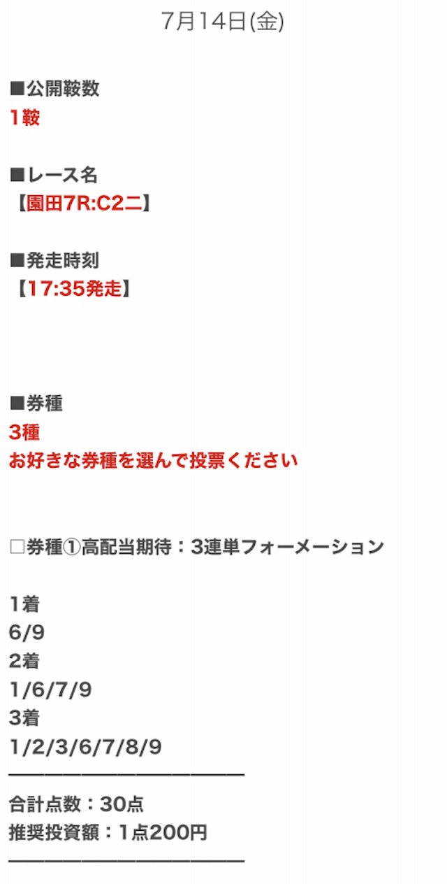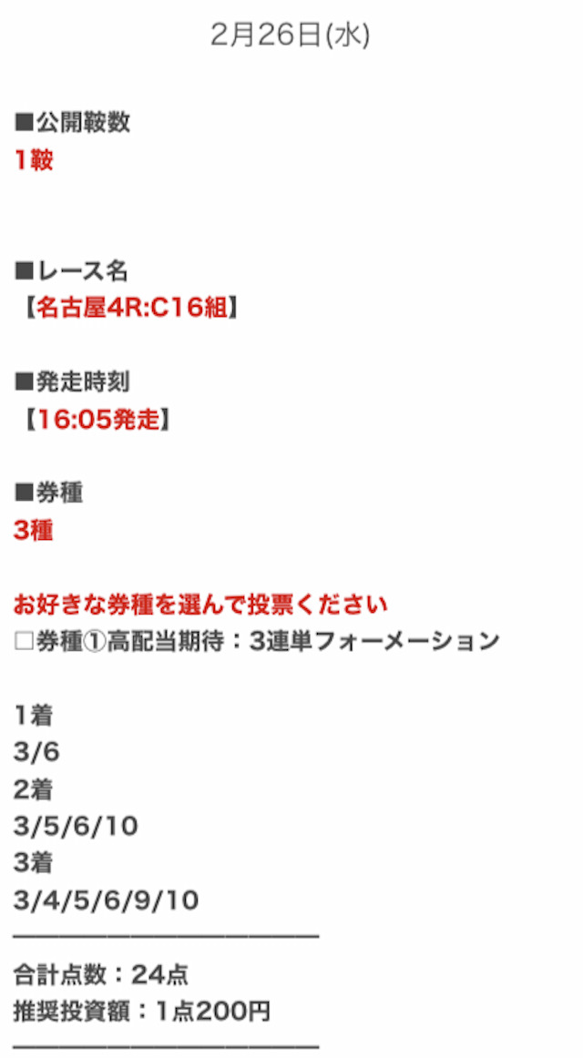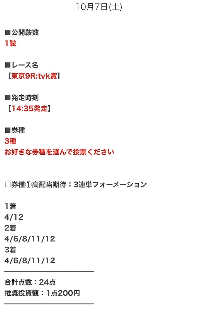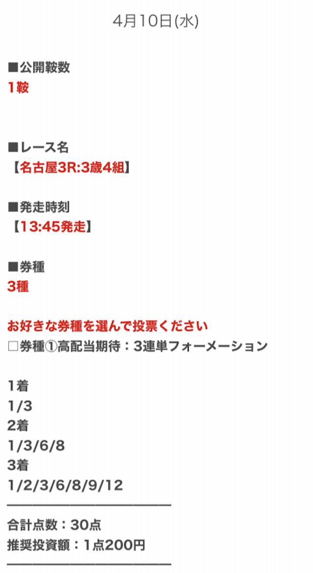 予想は毎日公開され、公開時間はレース当日の10時ごろ。
