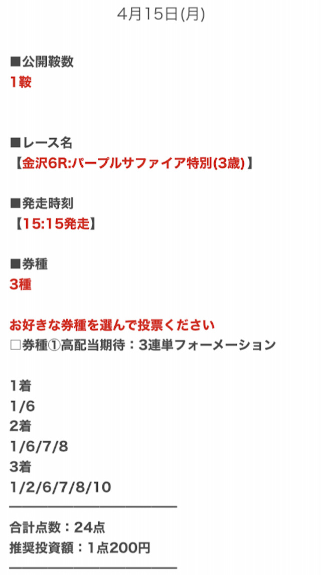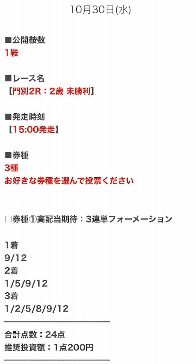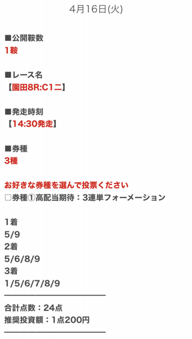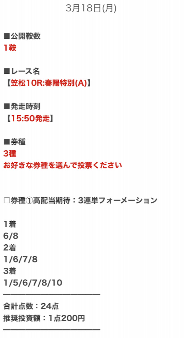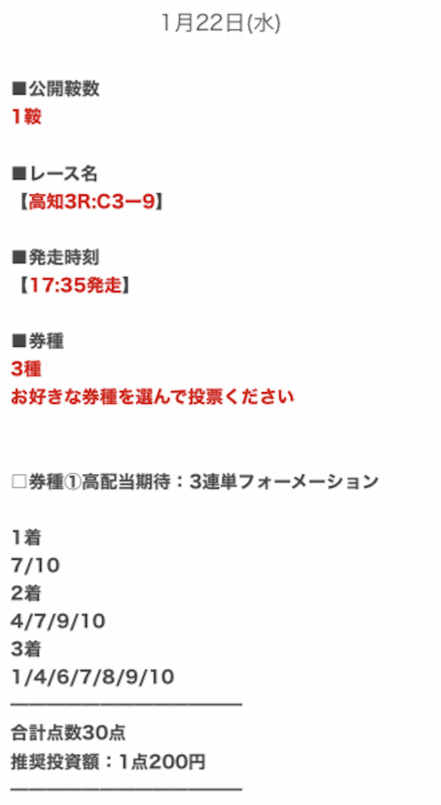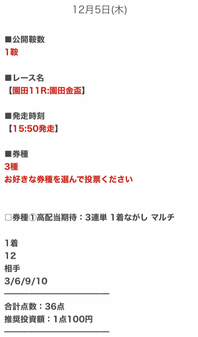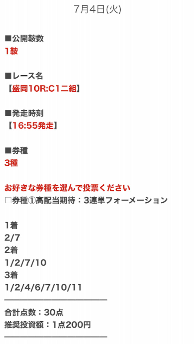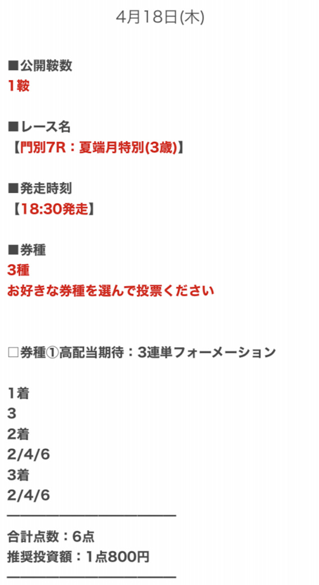 予想は毎日公開され、公開時間はレース当日の10時ごろ。