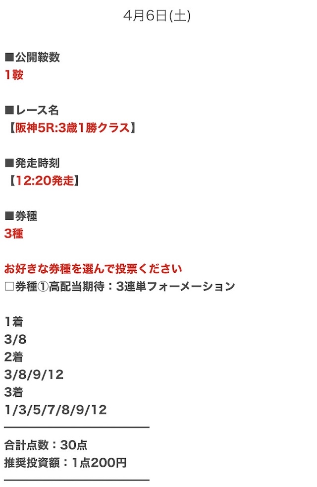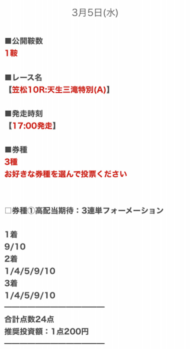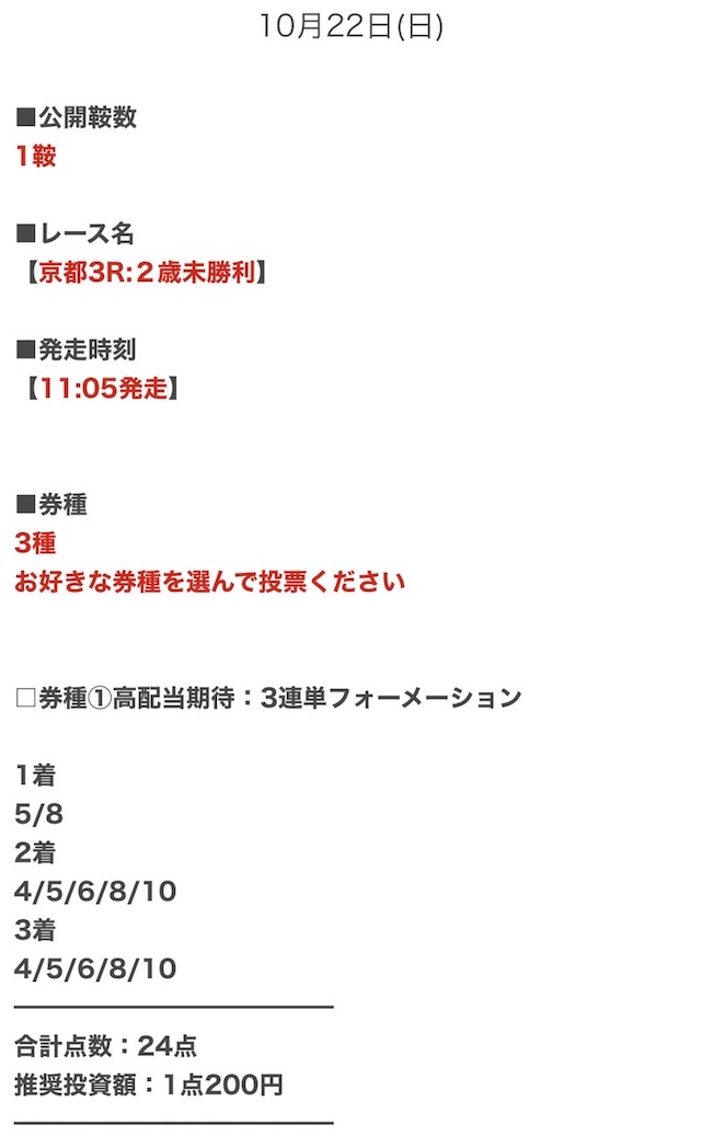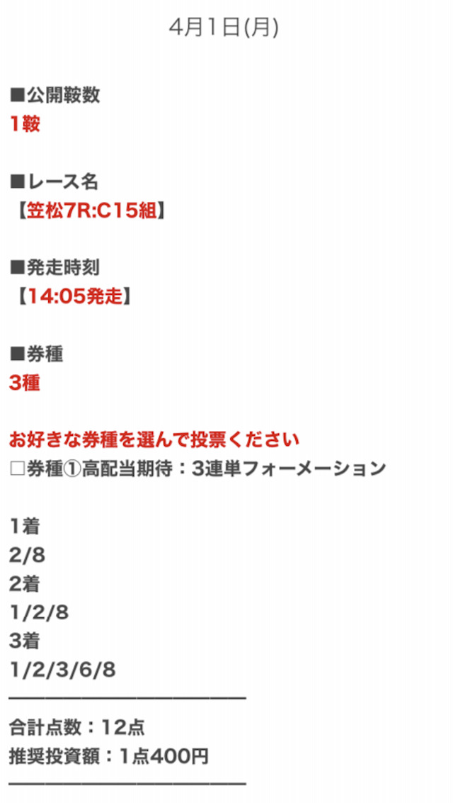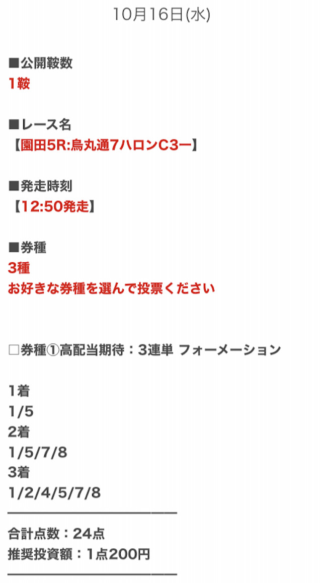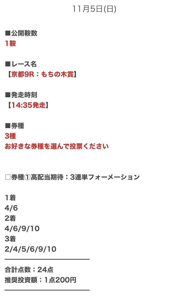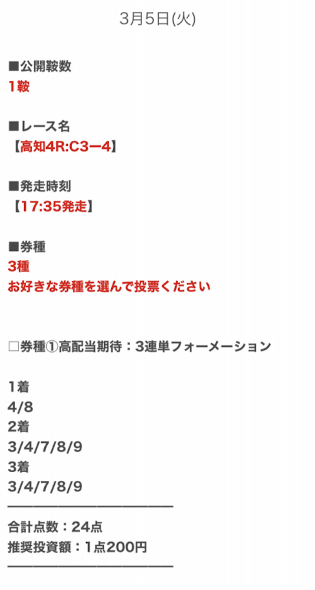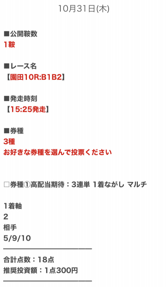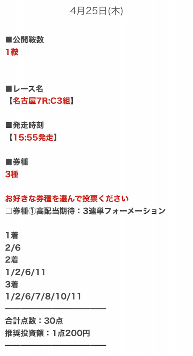 予想は毎日公開され、公開時間はレース当日の10時ごろ。