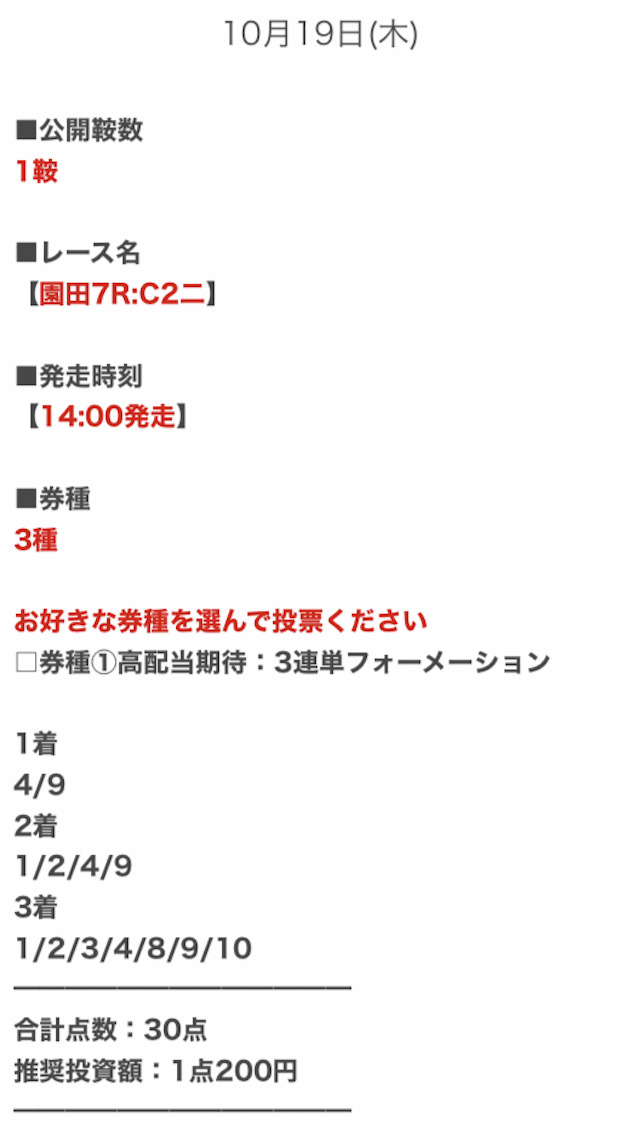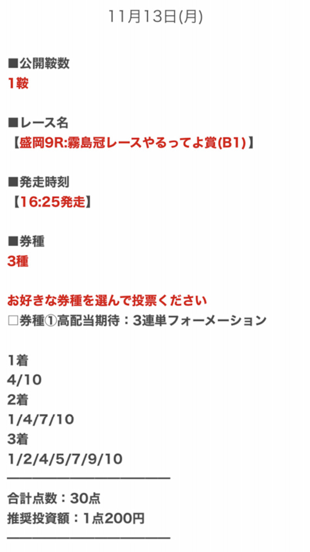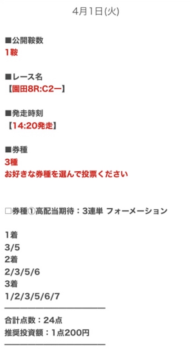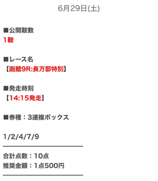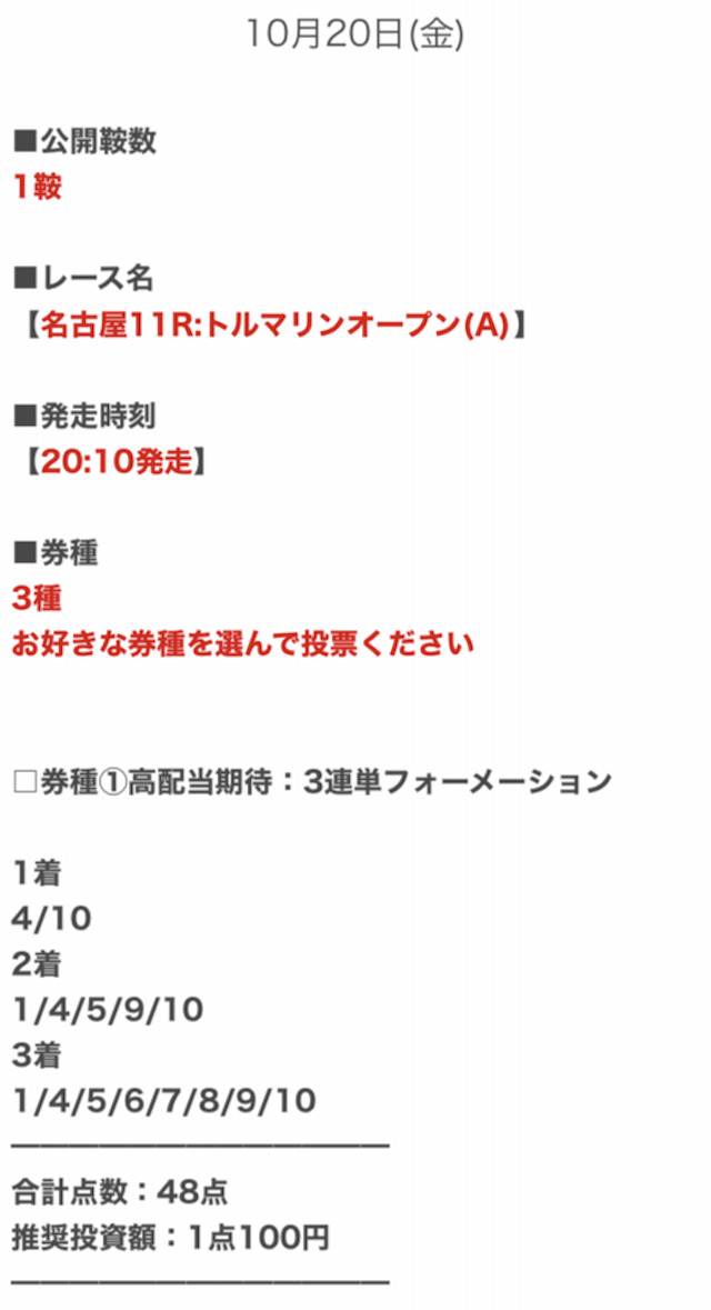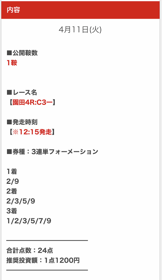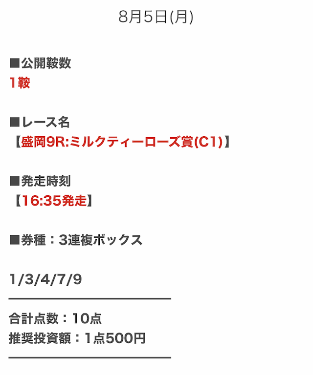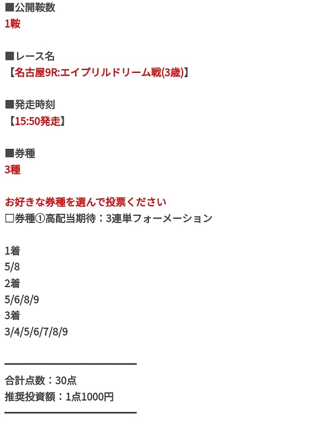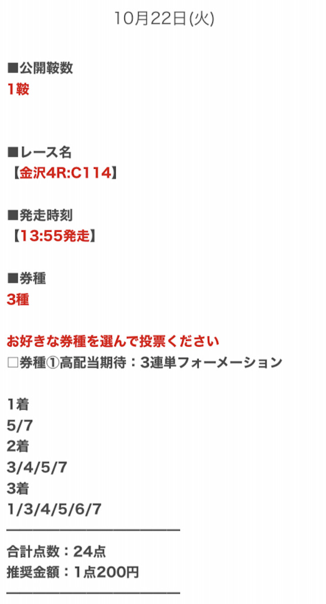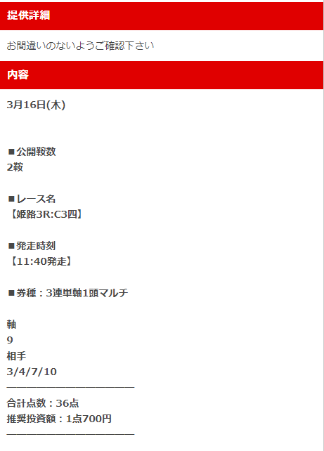 予想は毎日公開され、公開時間はレース当日の10時ごろ。