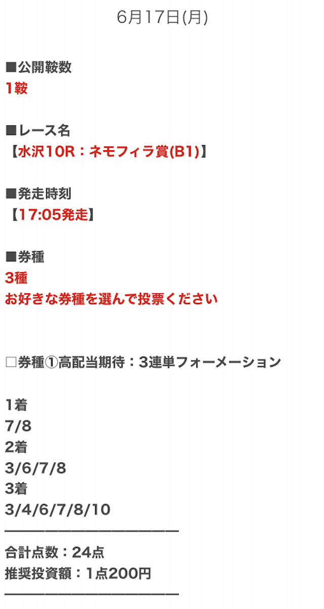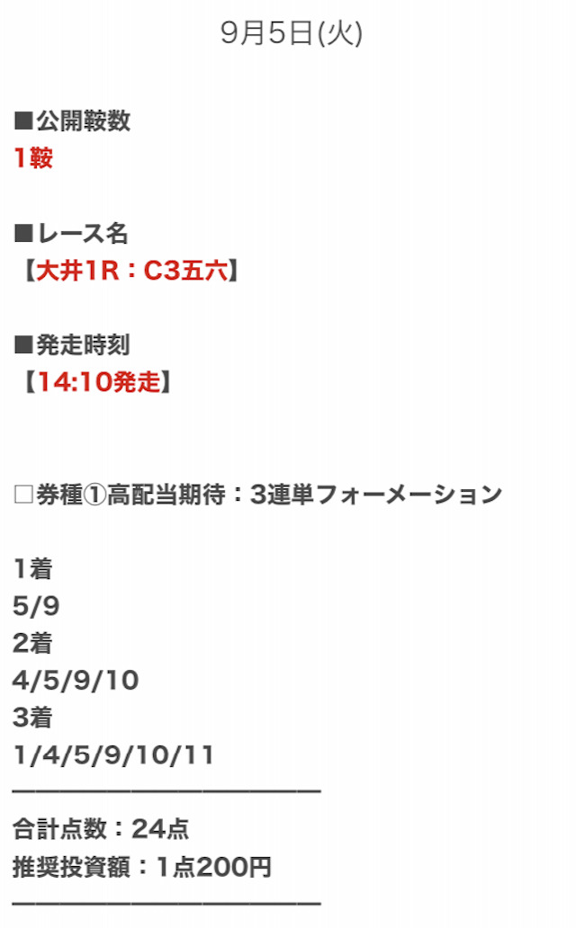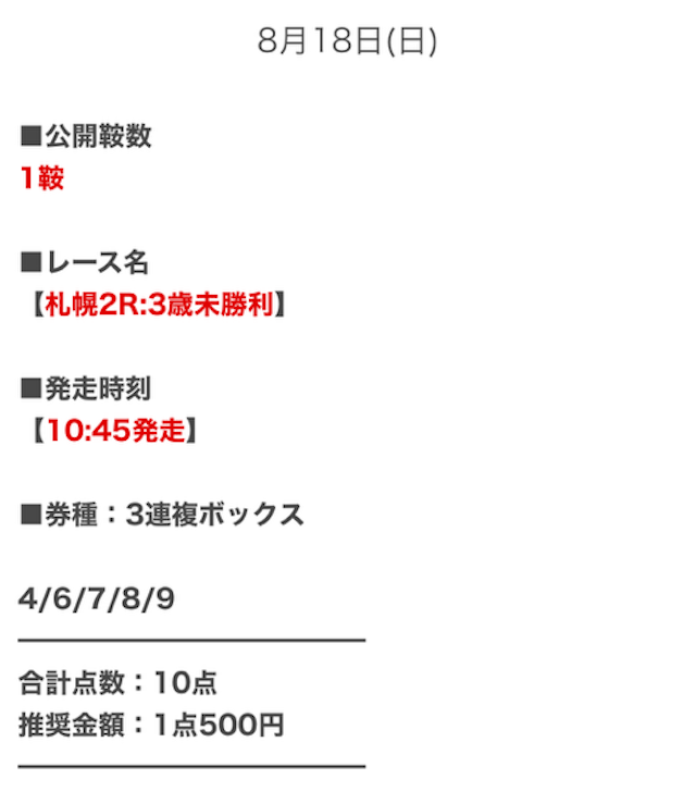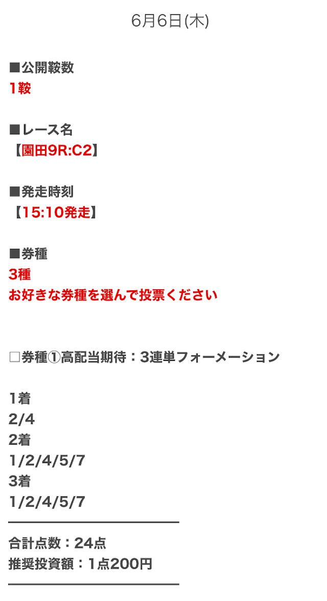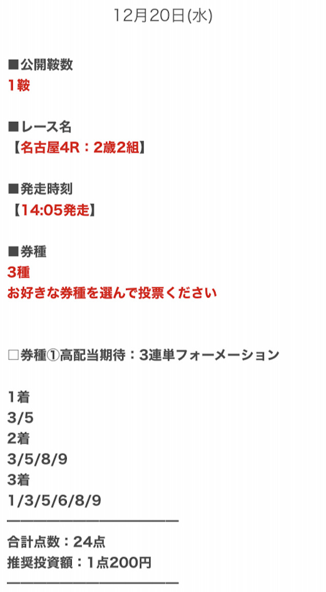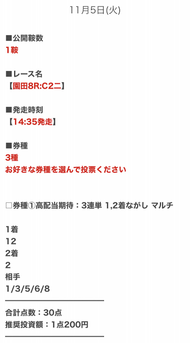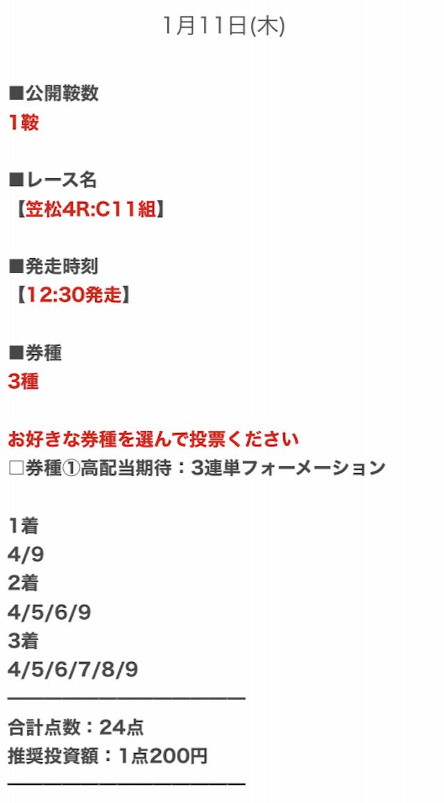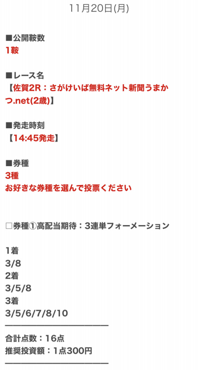 予想は毎日公開され、公開時間はレース当日の10時ごろ。