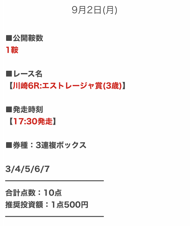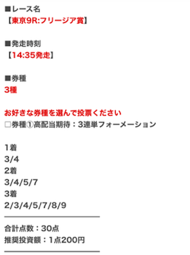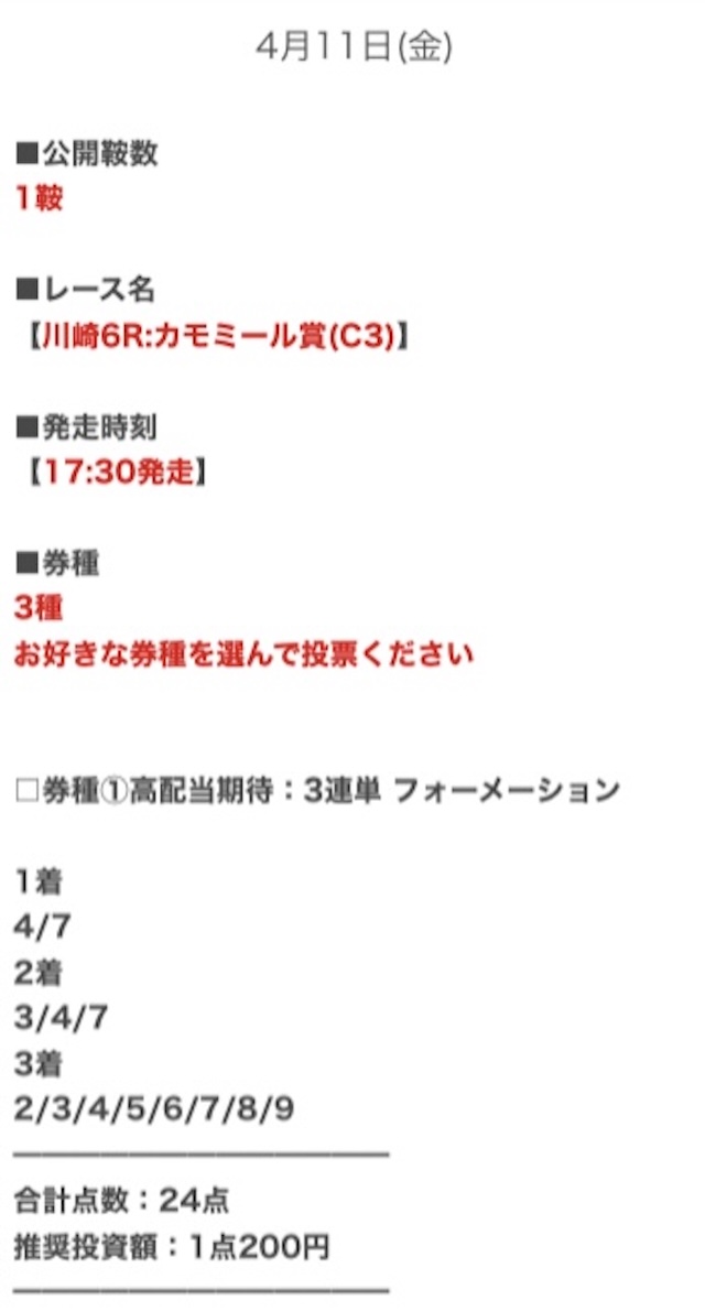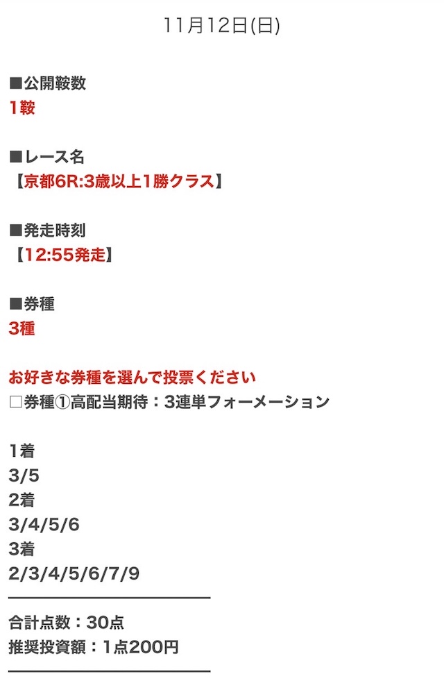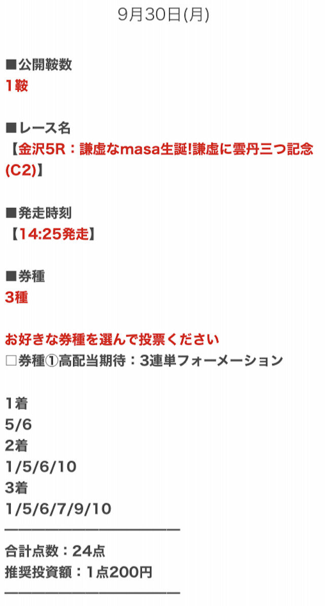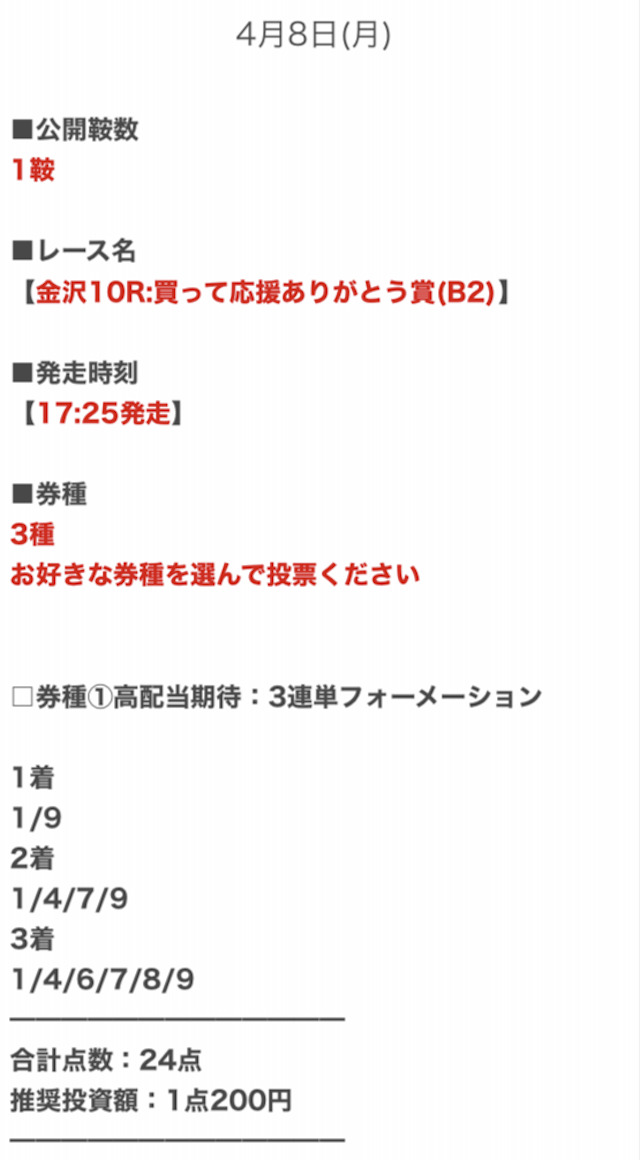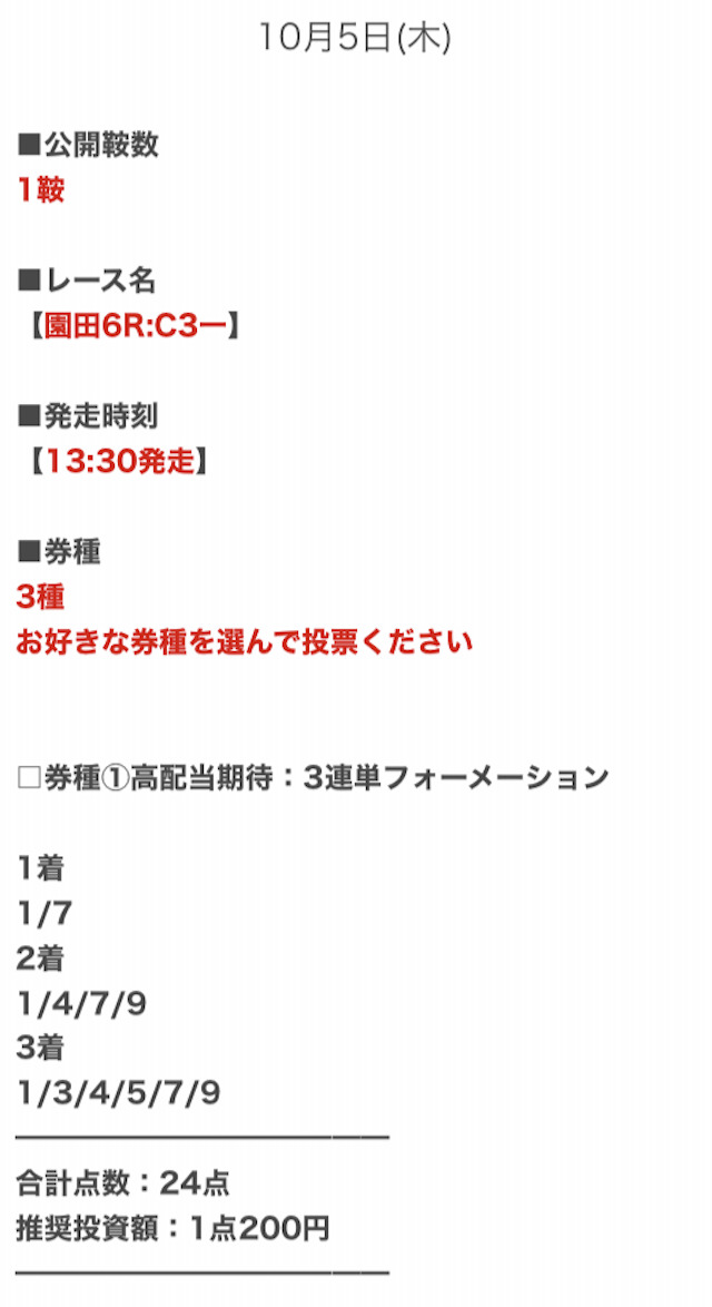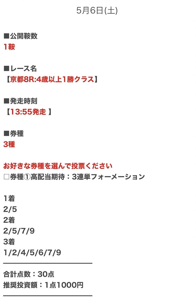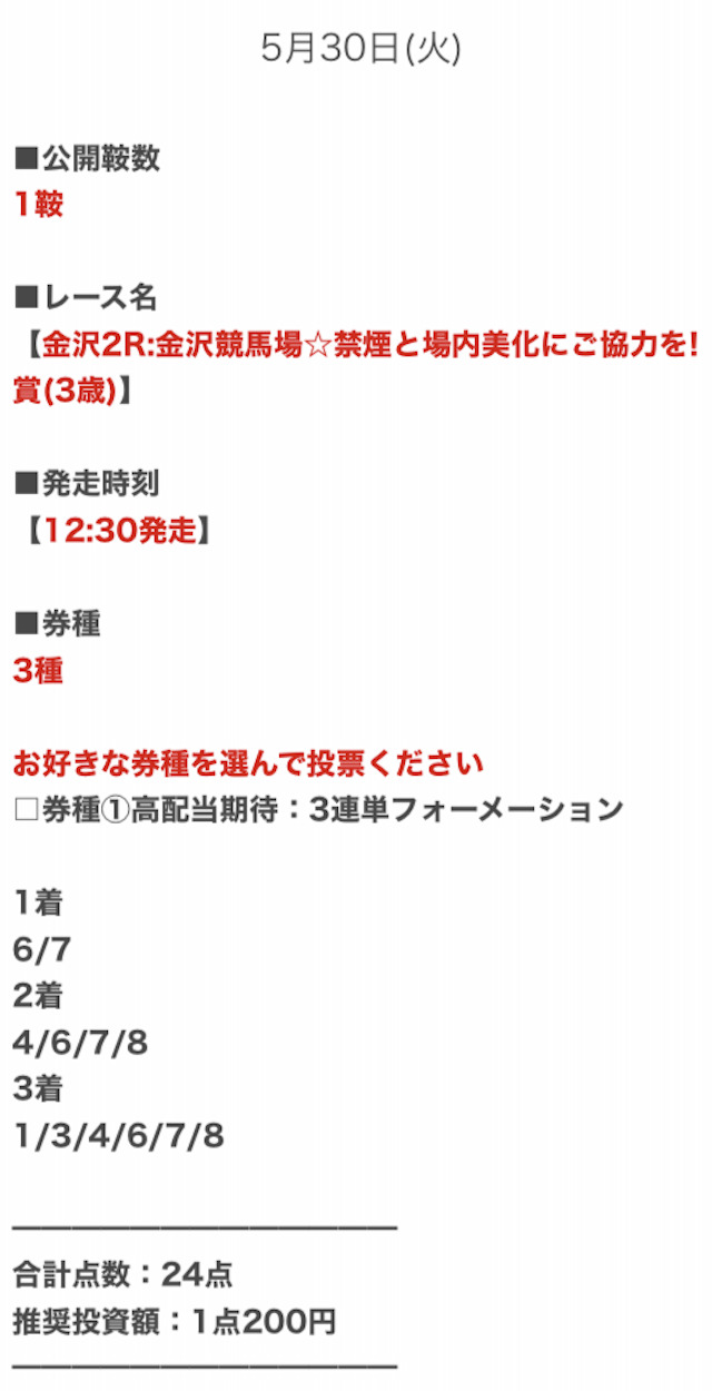 予想は毎日公開され、公開時間はレース当日の10時ごろ。