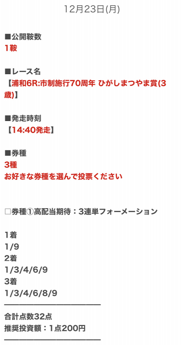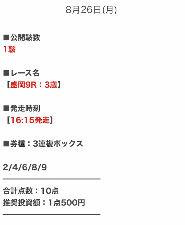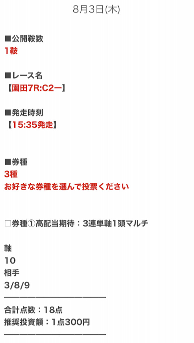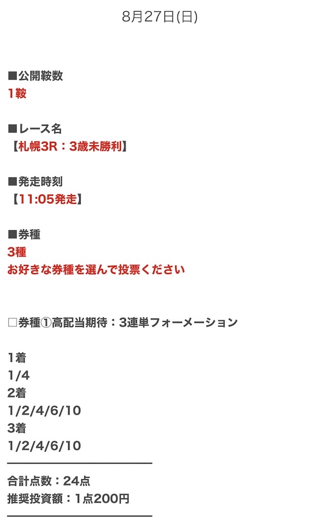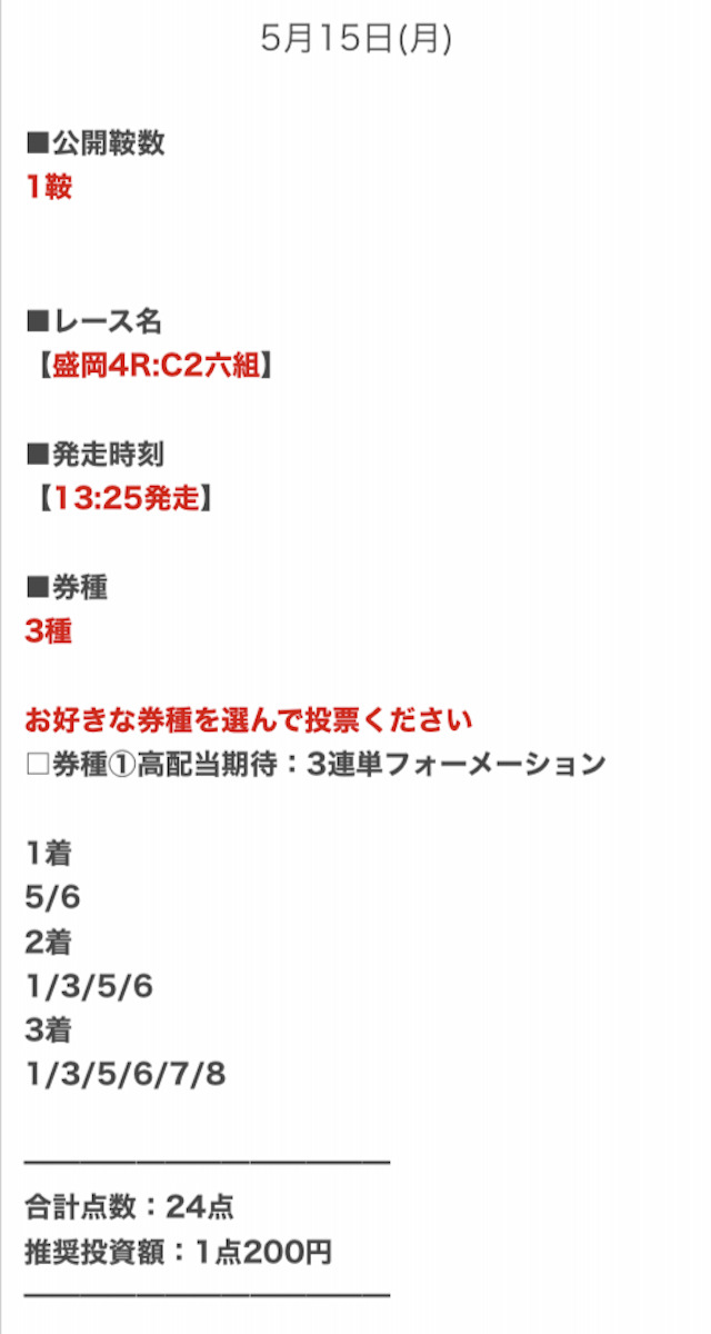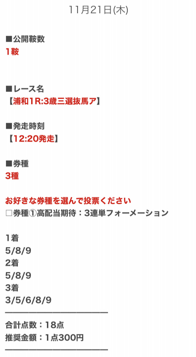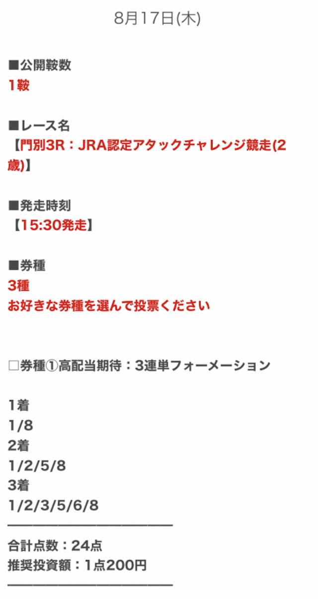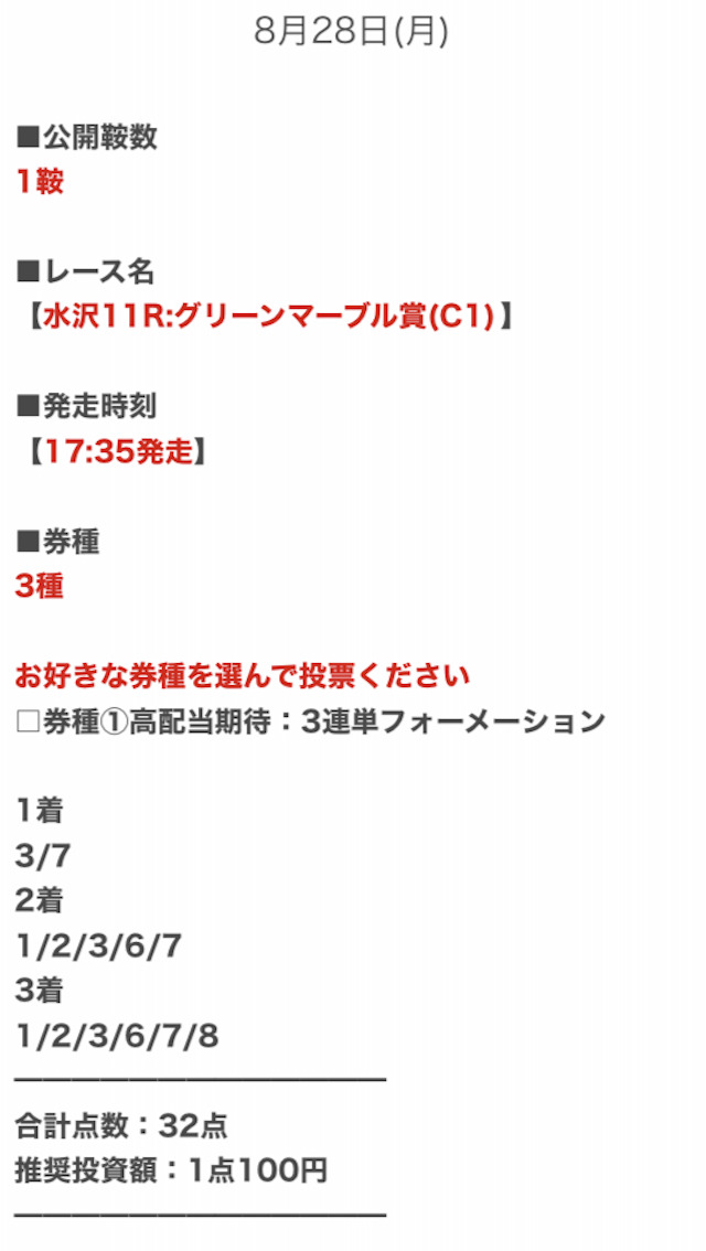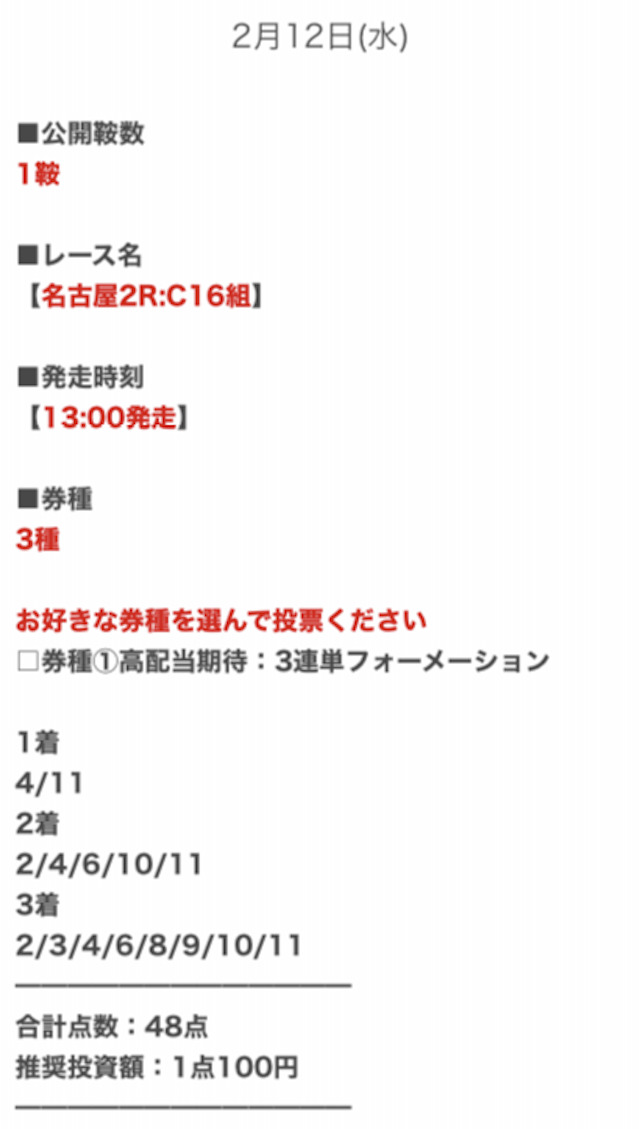 予想は毎日公開され、公開時間はレース当日の10時ごろ。