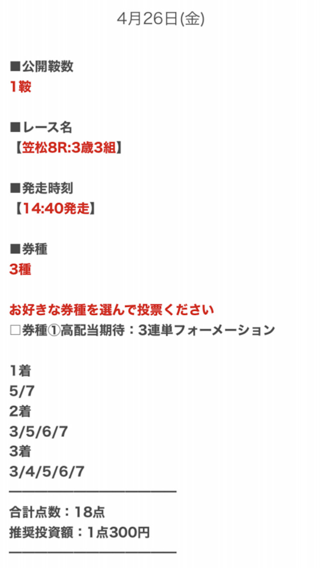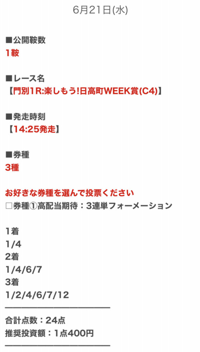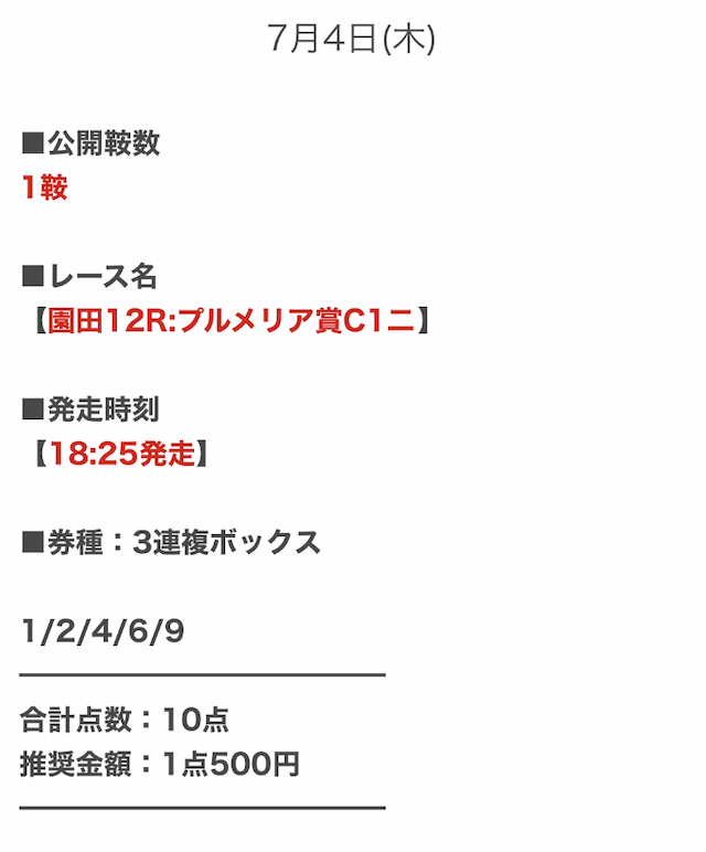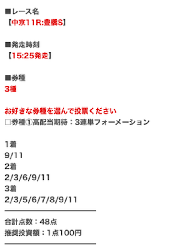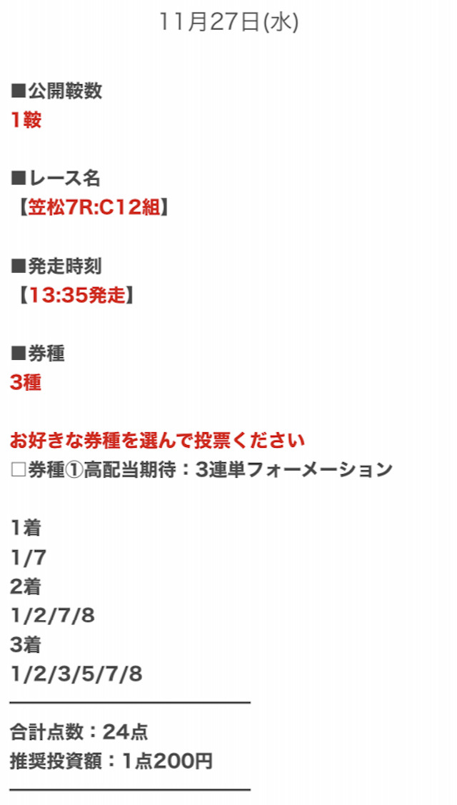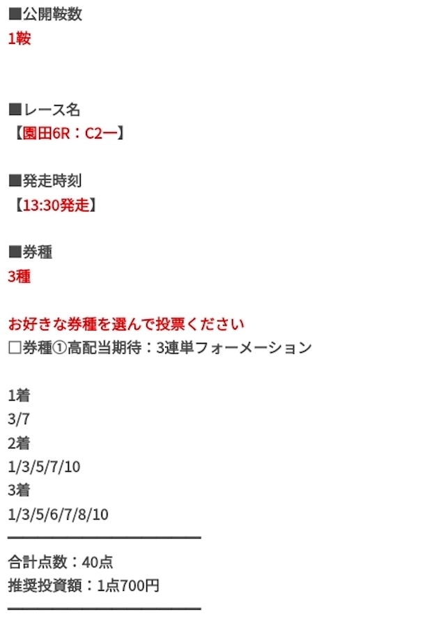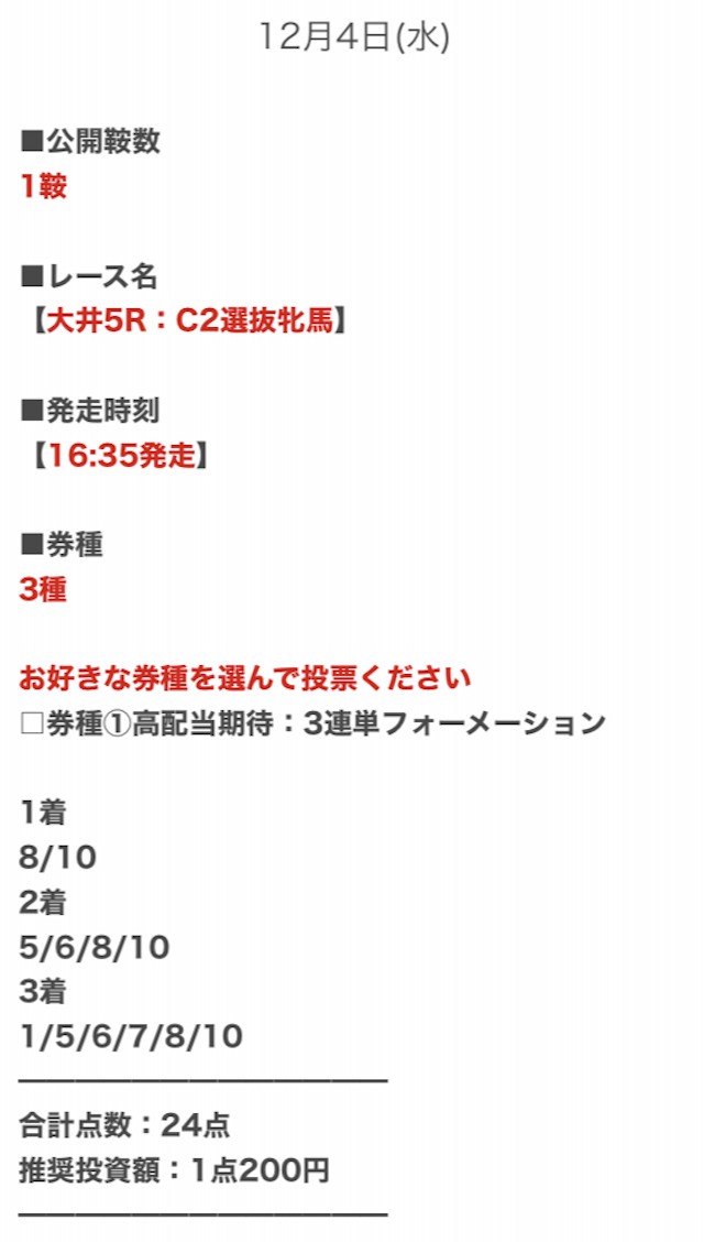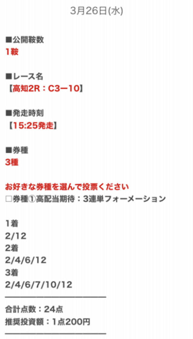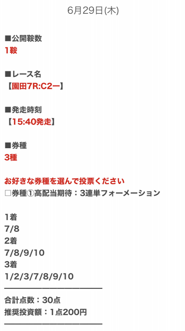 予想は毎日公開され、公開時間はレース当日の10時ごろ。