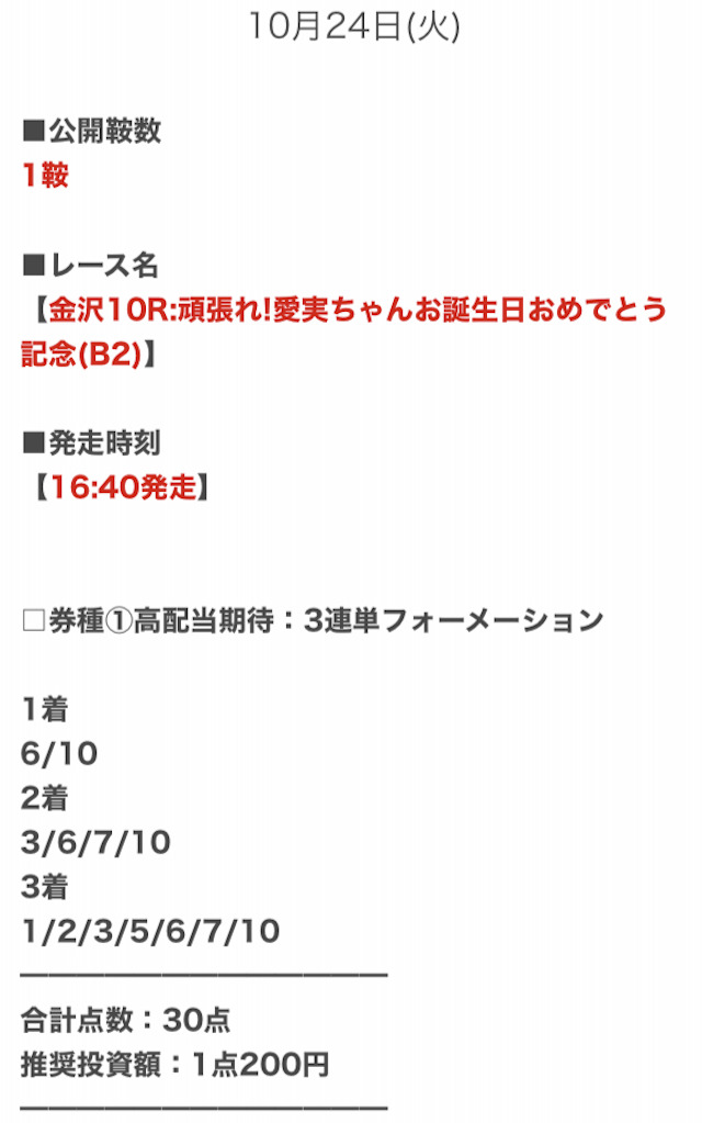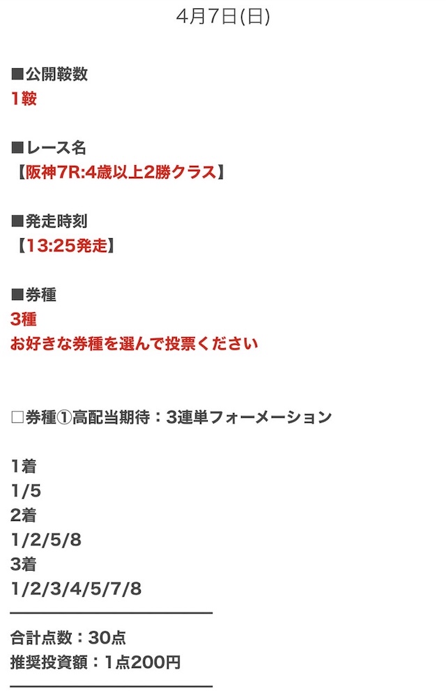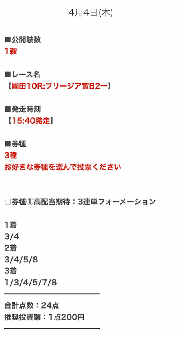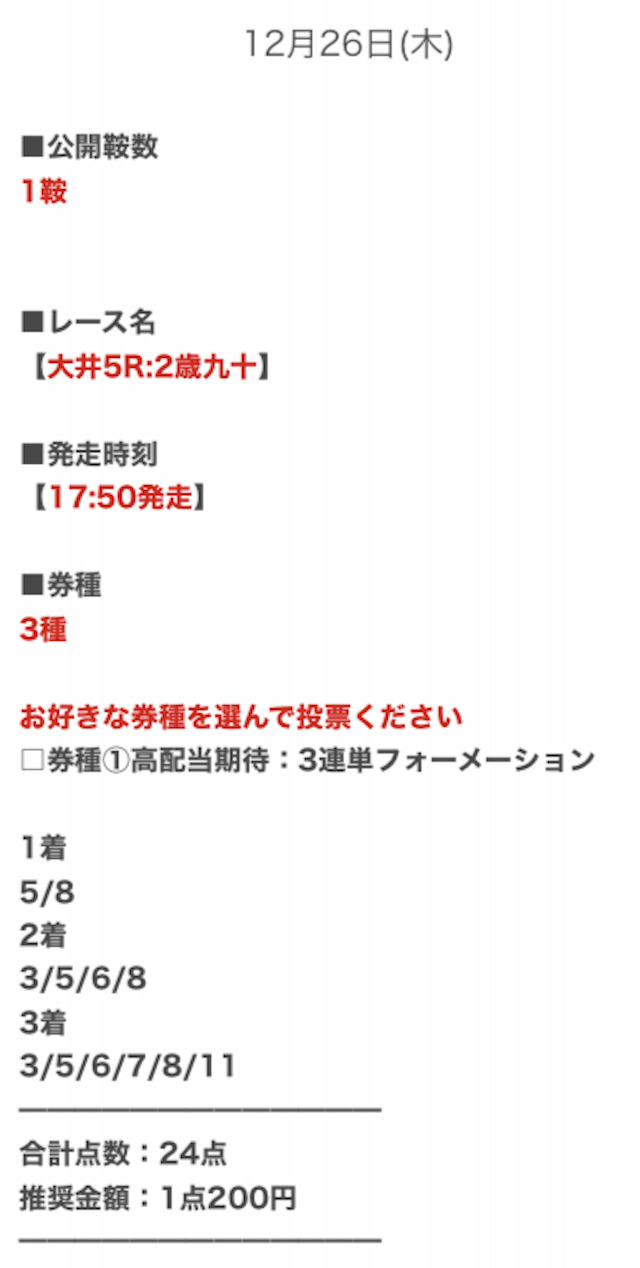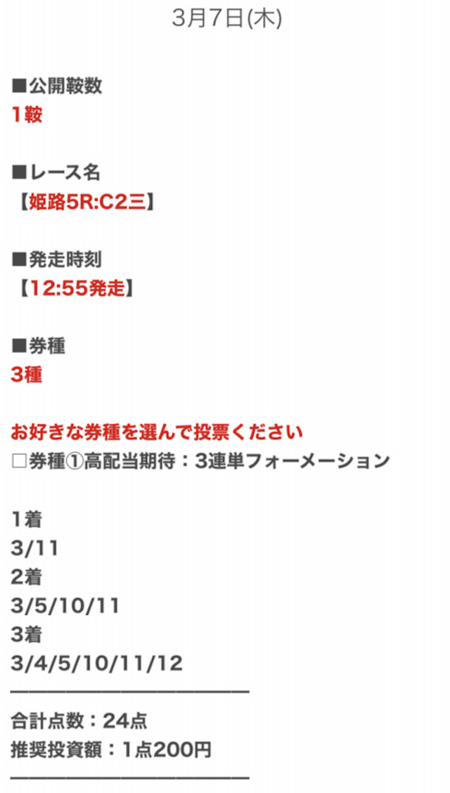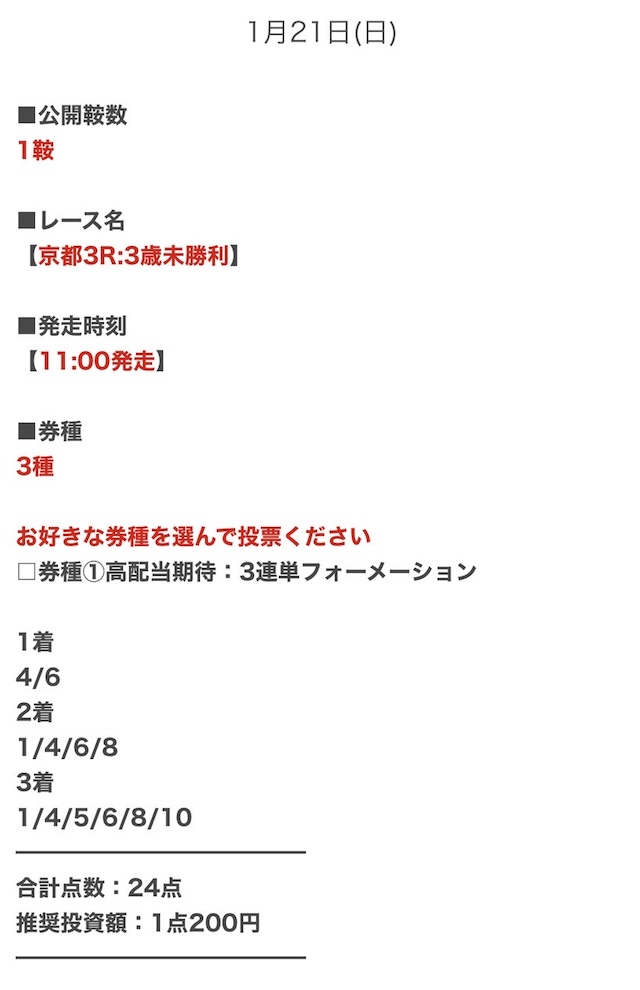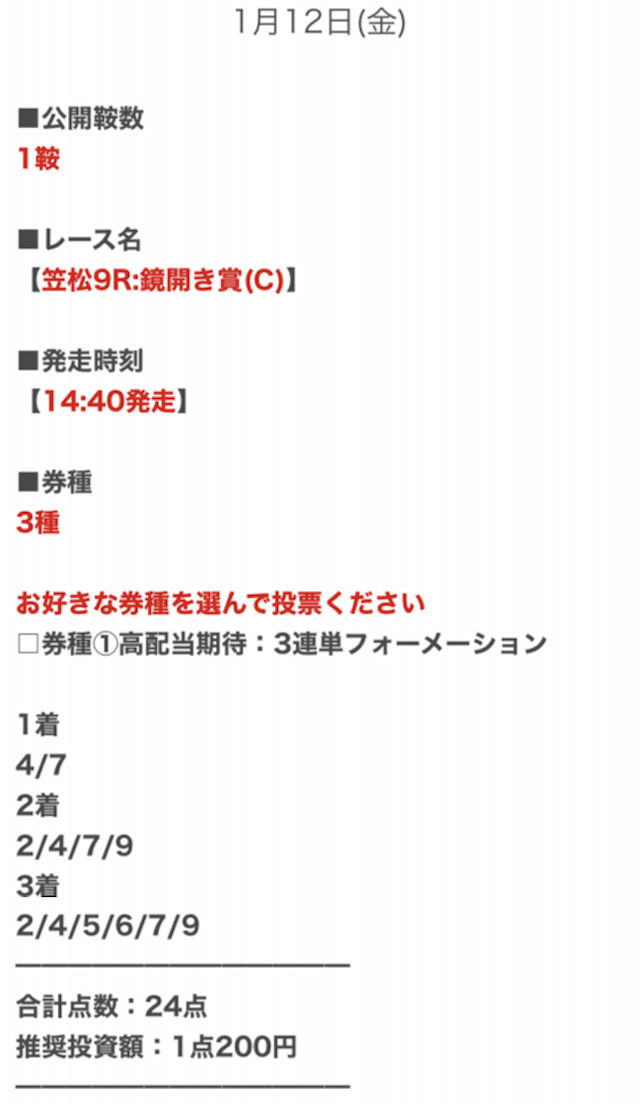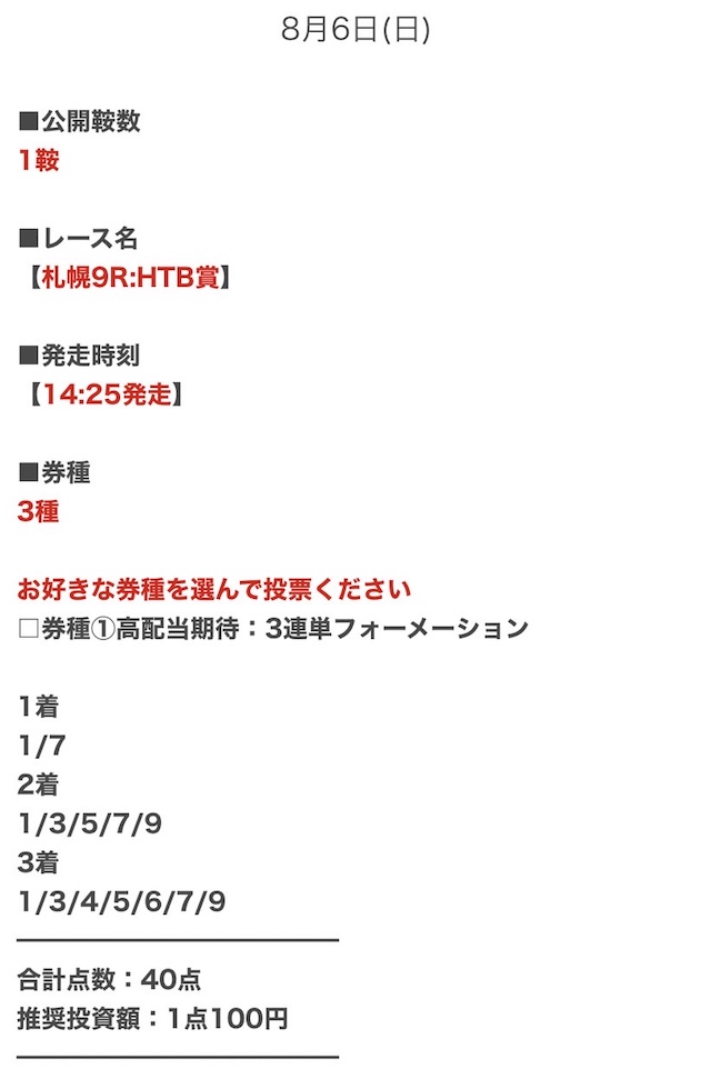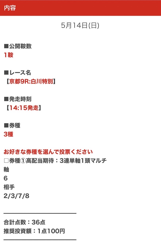 予想は毎日公開され、公開時間はレース当日の10時ごろ。