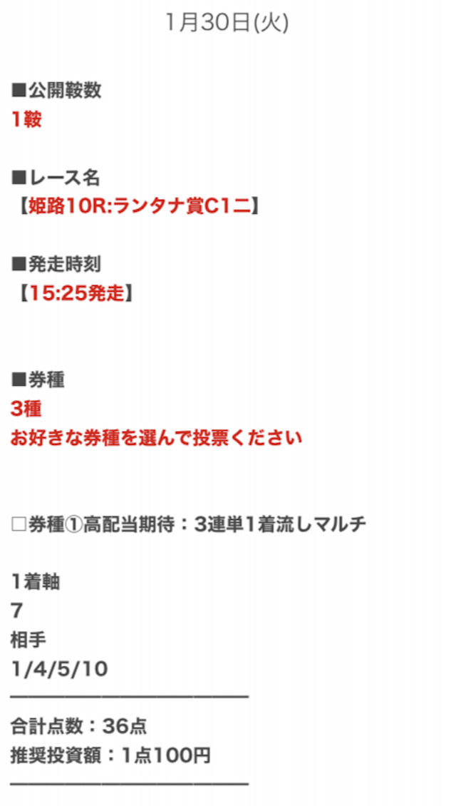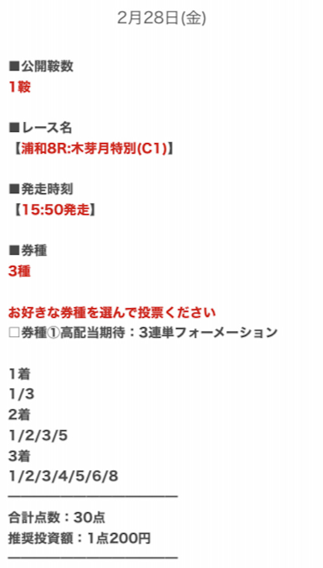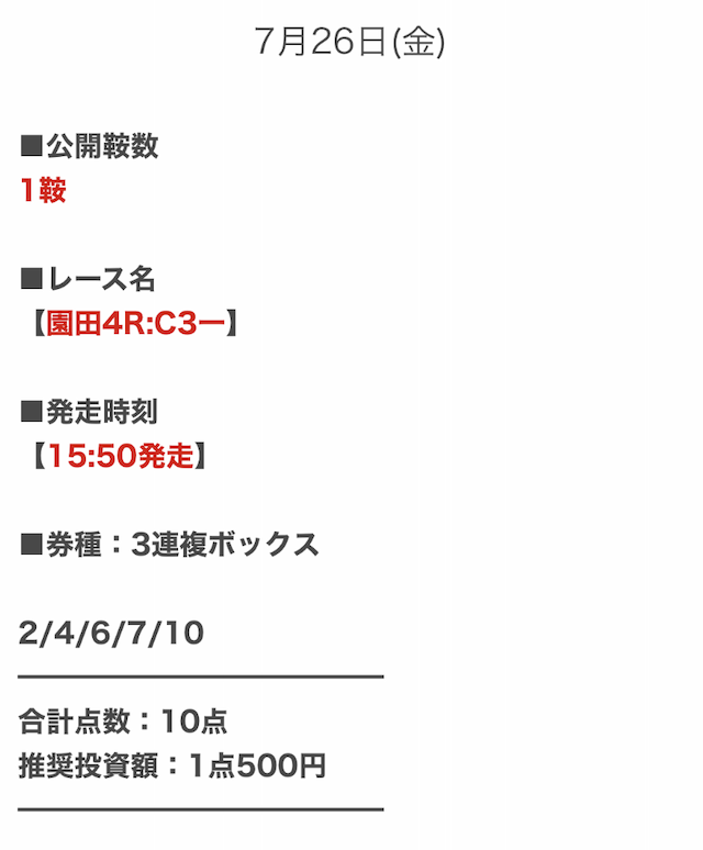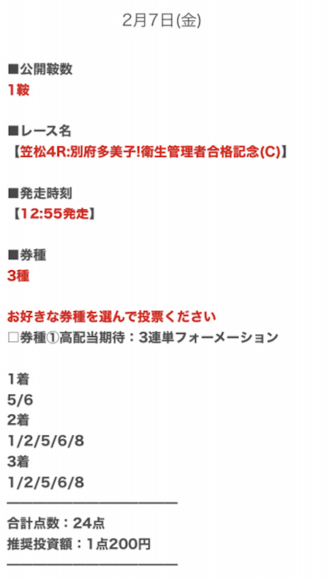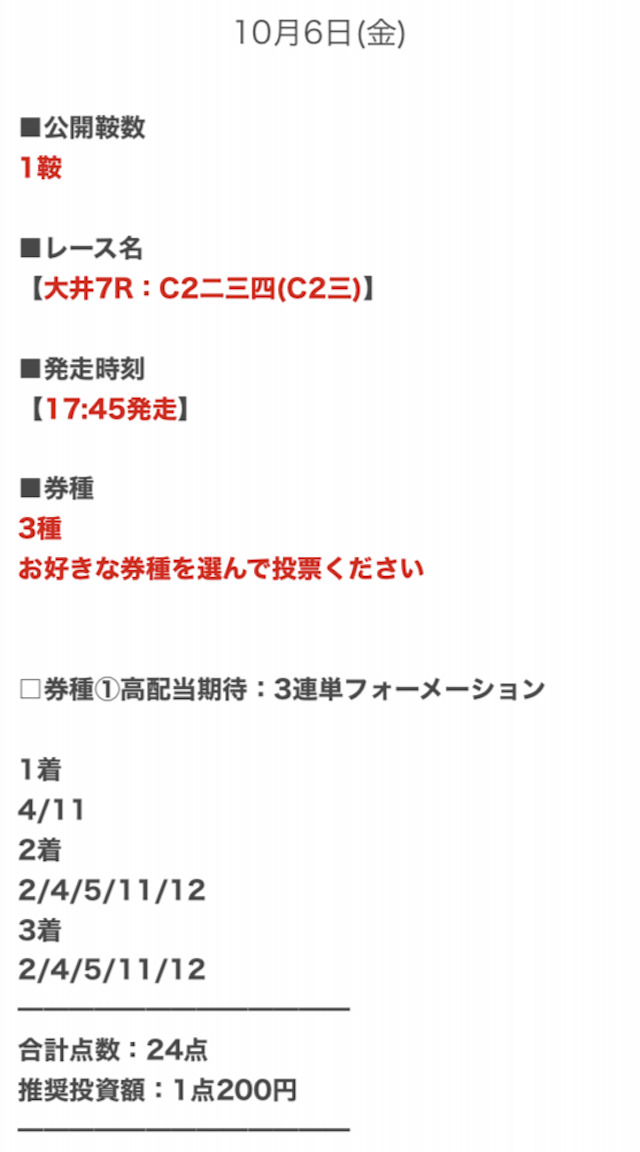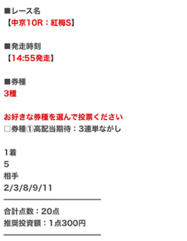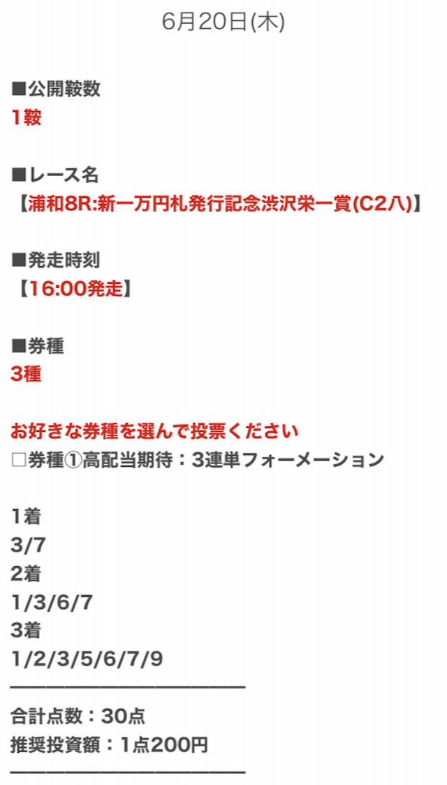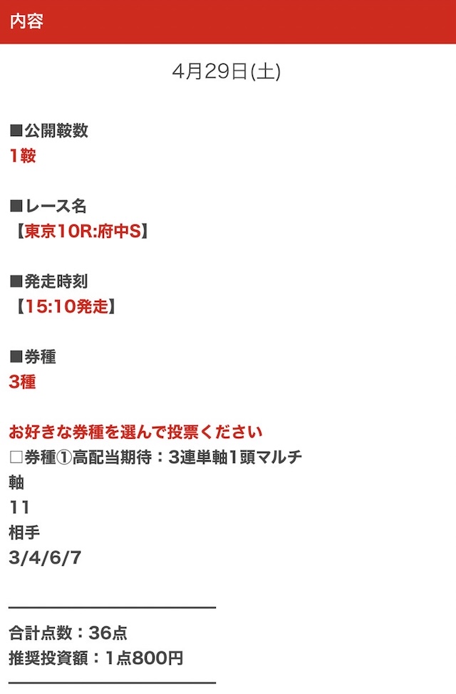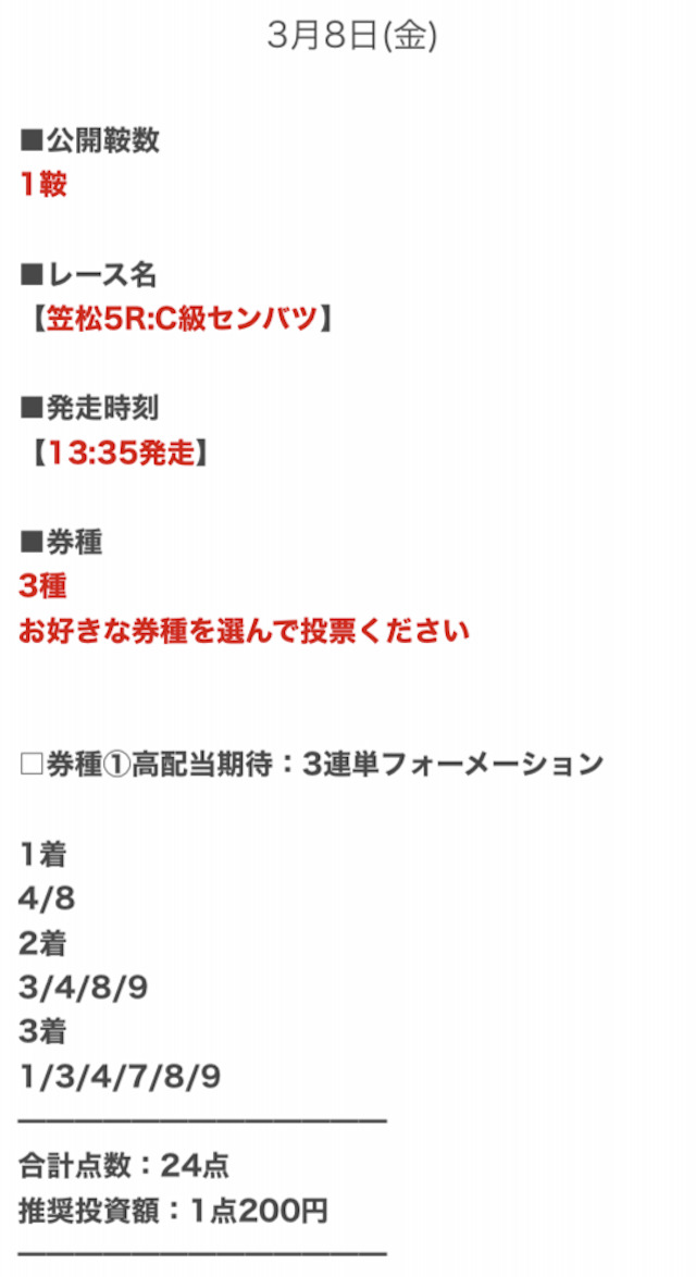 予想は毎日公開され、公開時間はレース当日の10時ごろ。