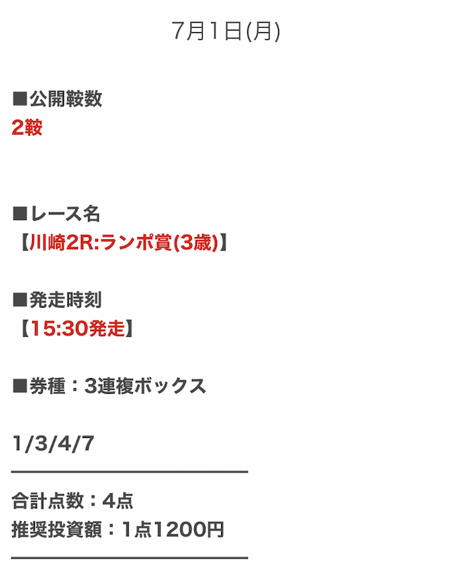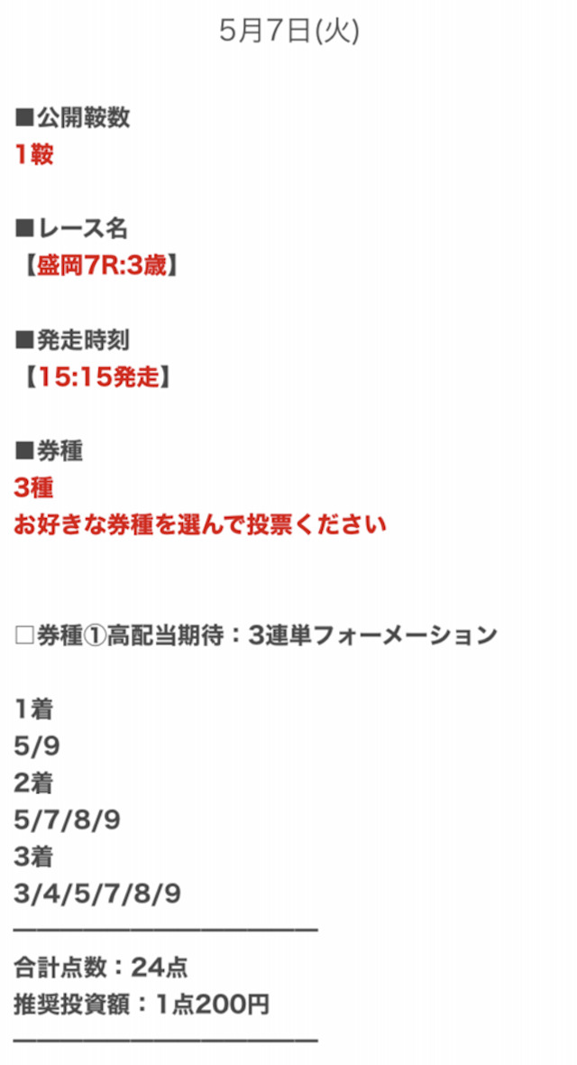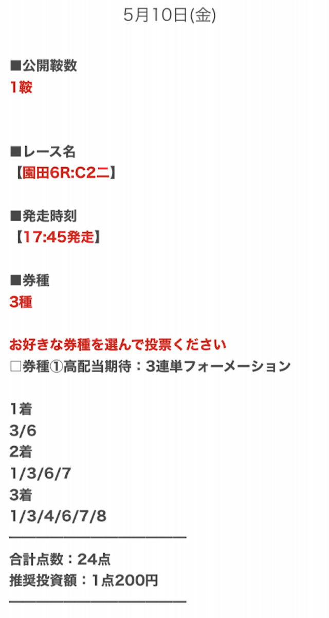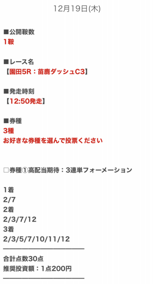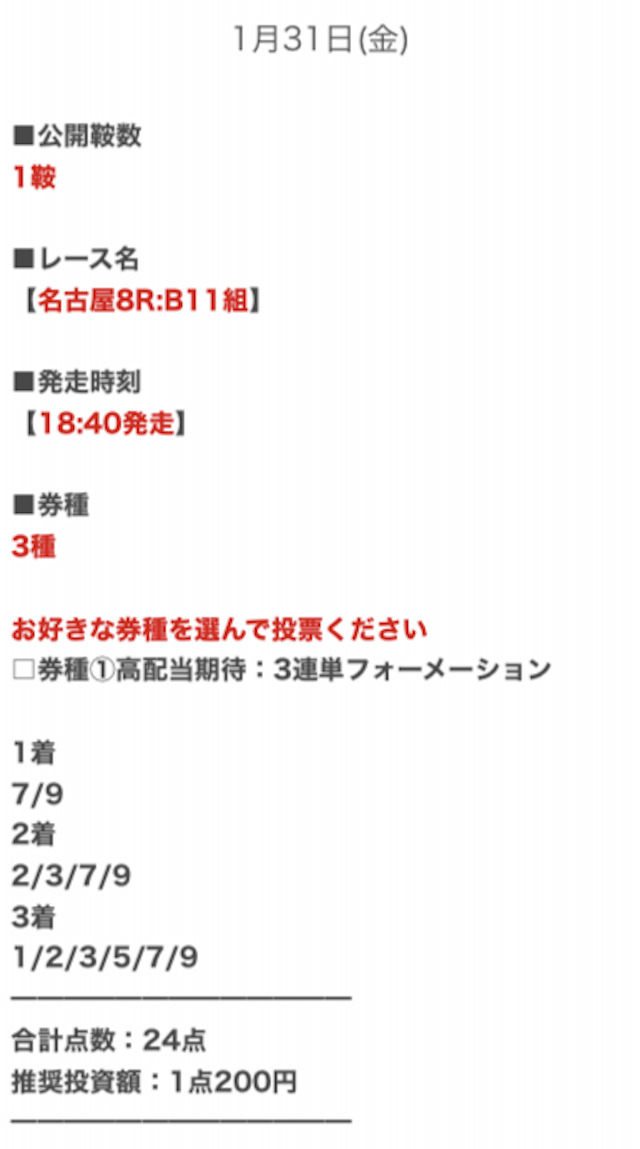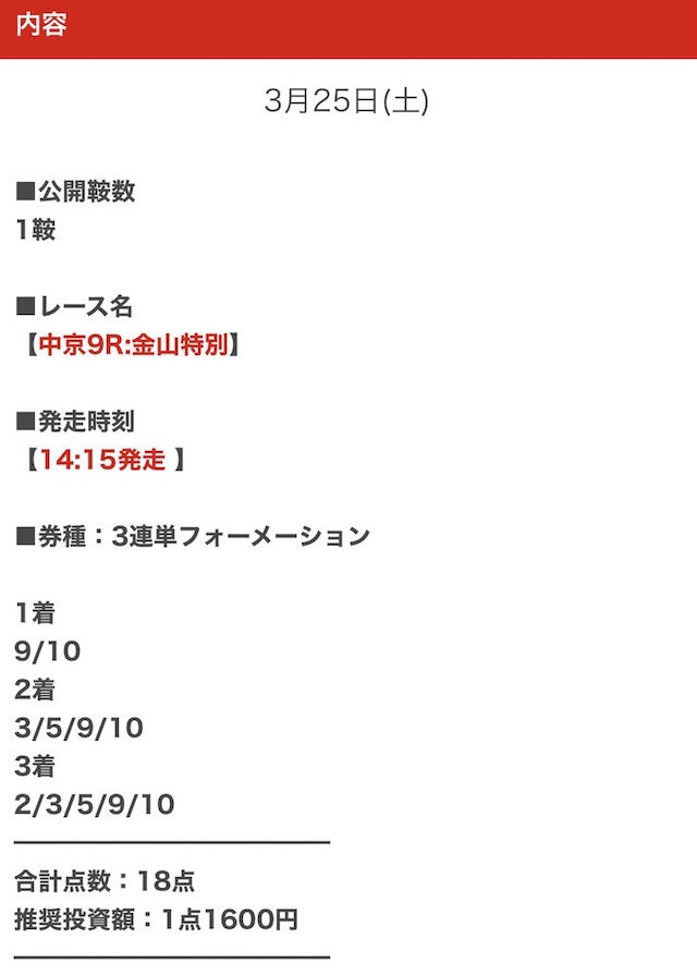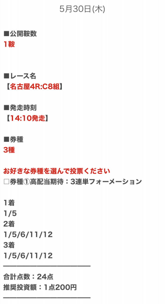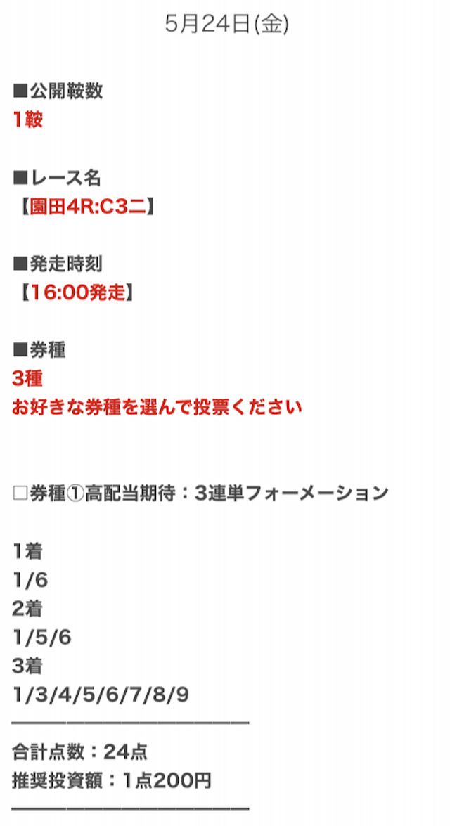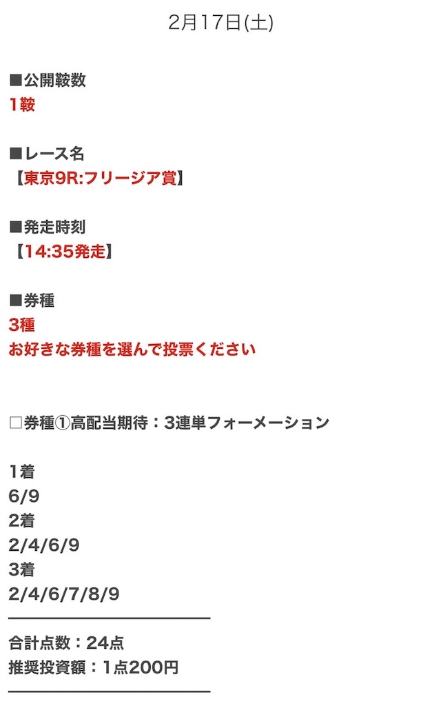 予想は毎日公開され、公開時間はレース当日の10時ごろ。