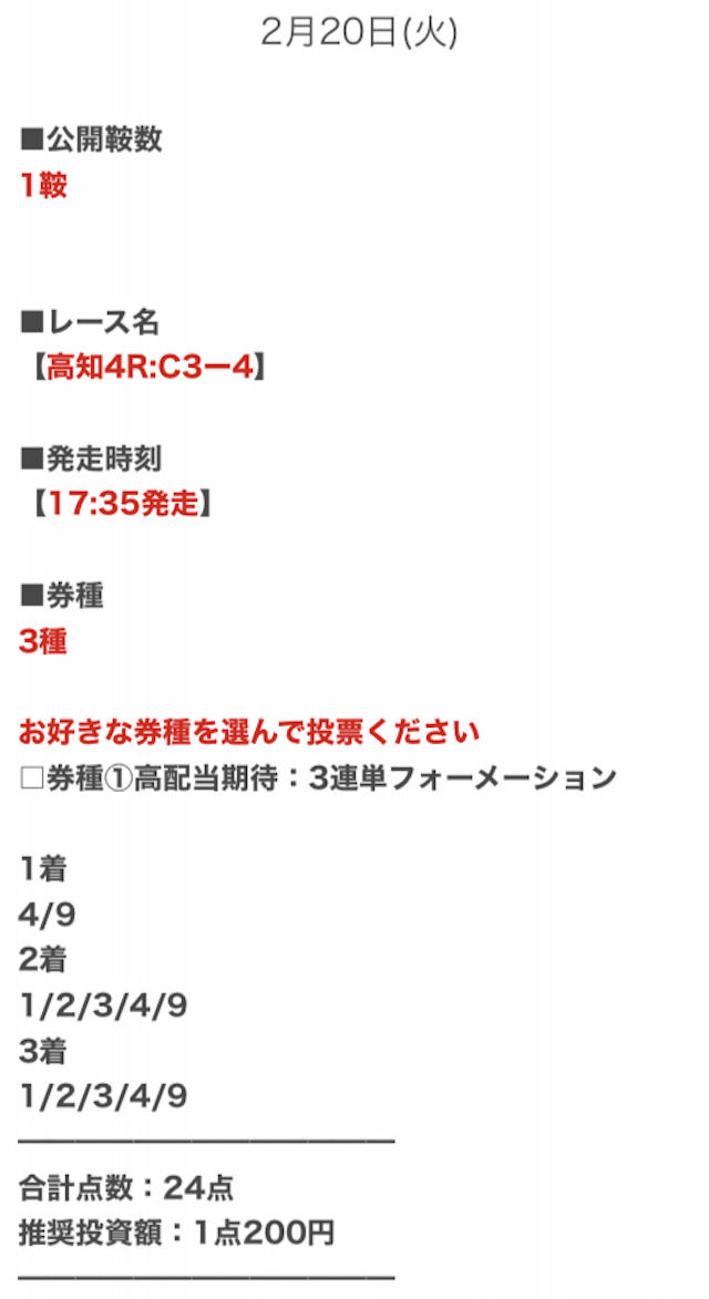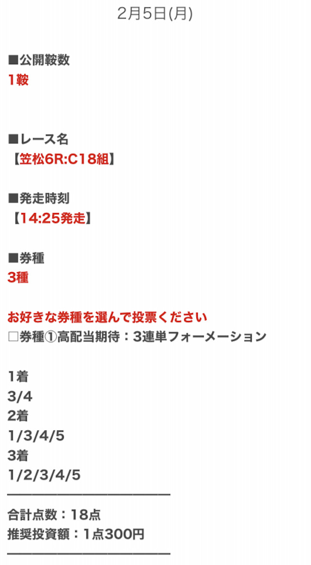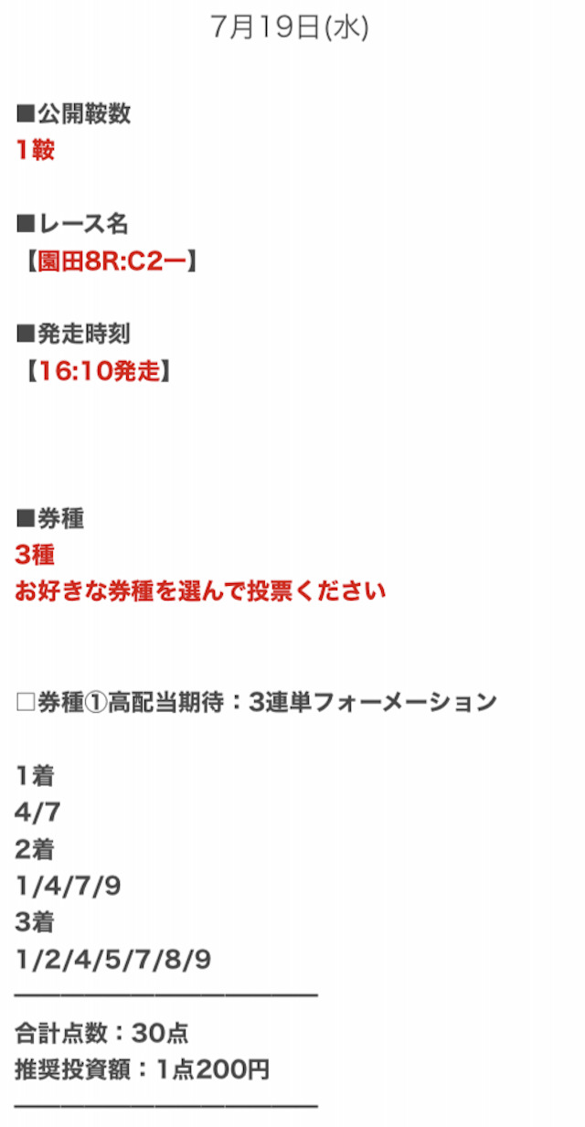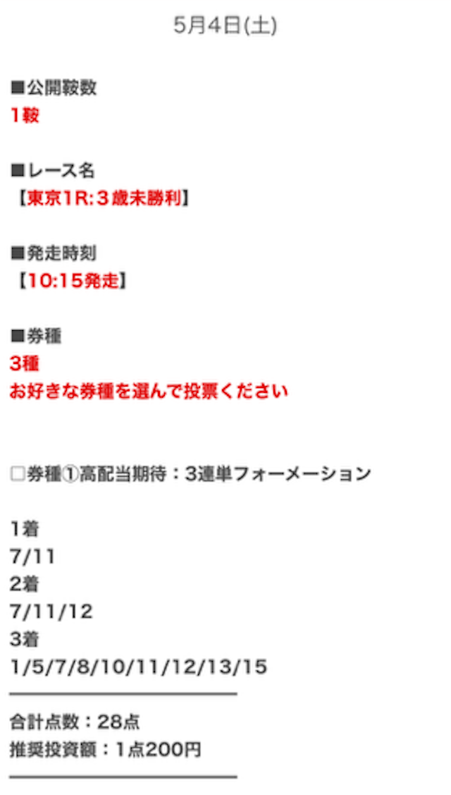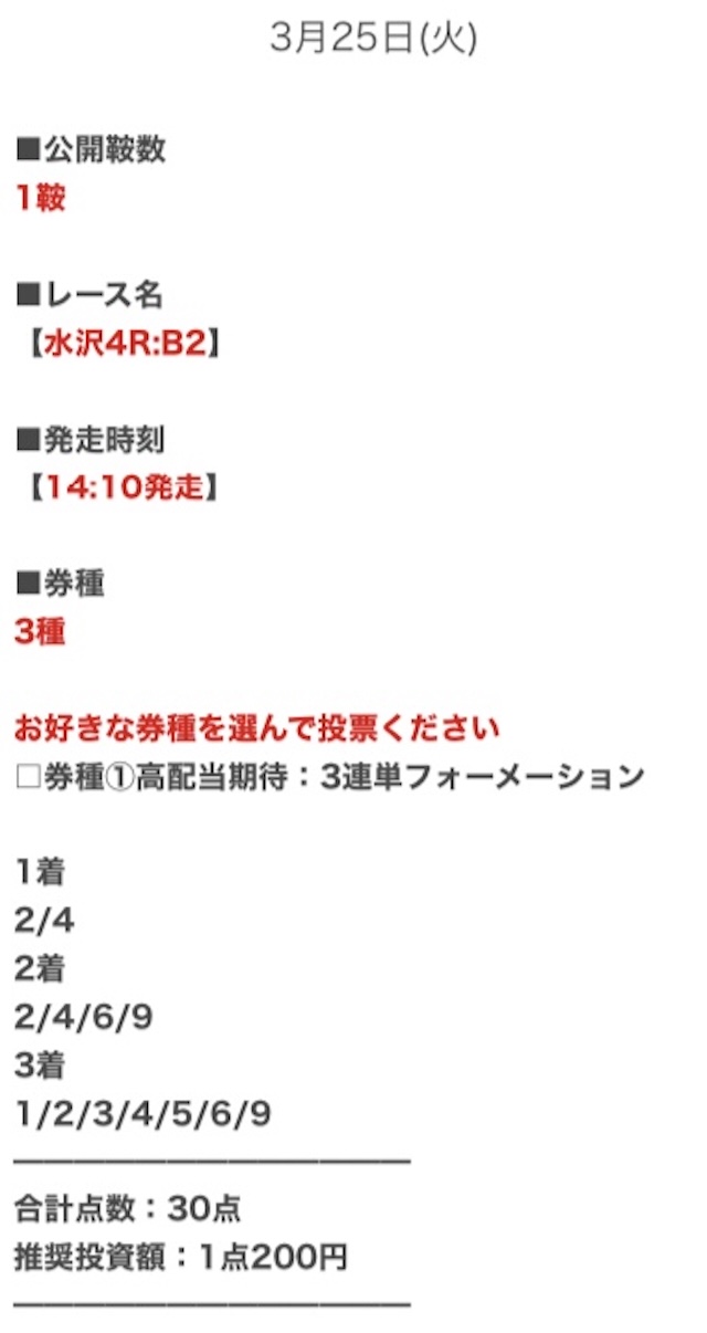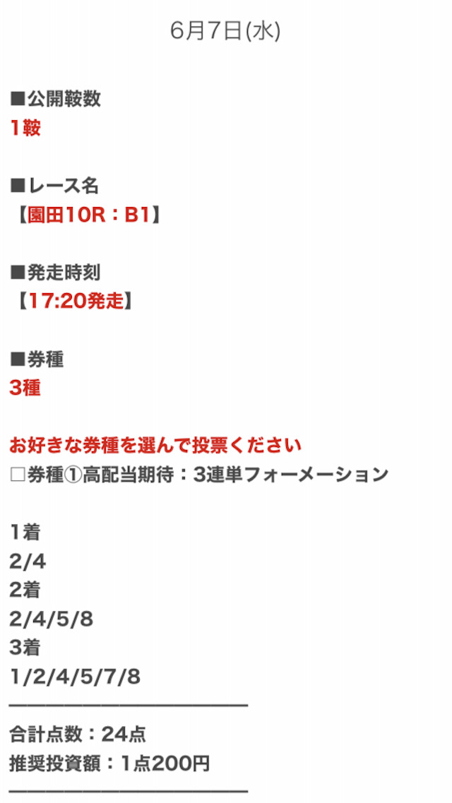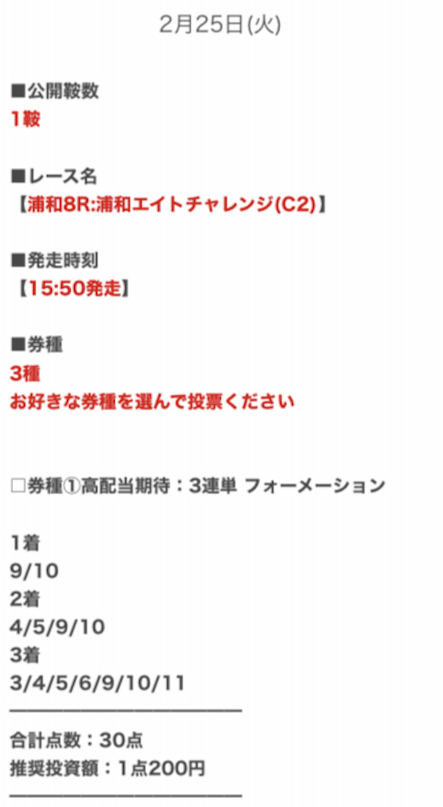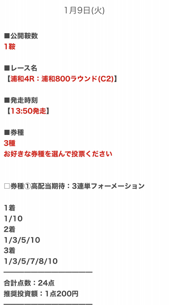 予想は毎日公開され、公開時間はレース当日の10時ごろ。