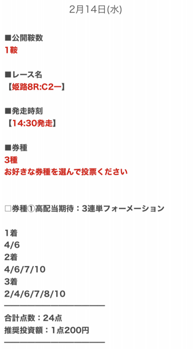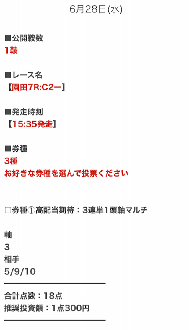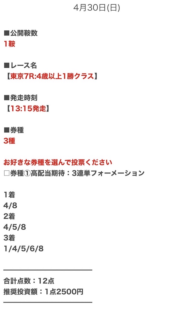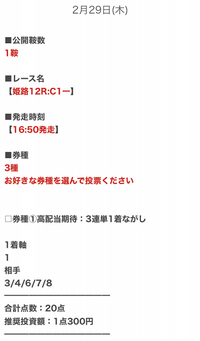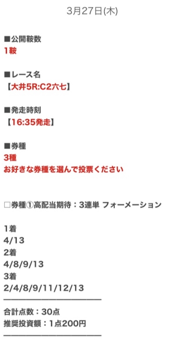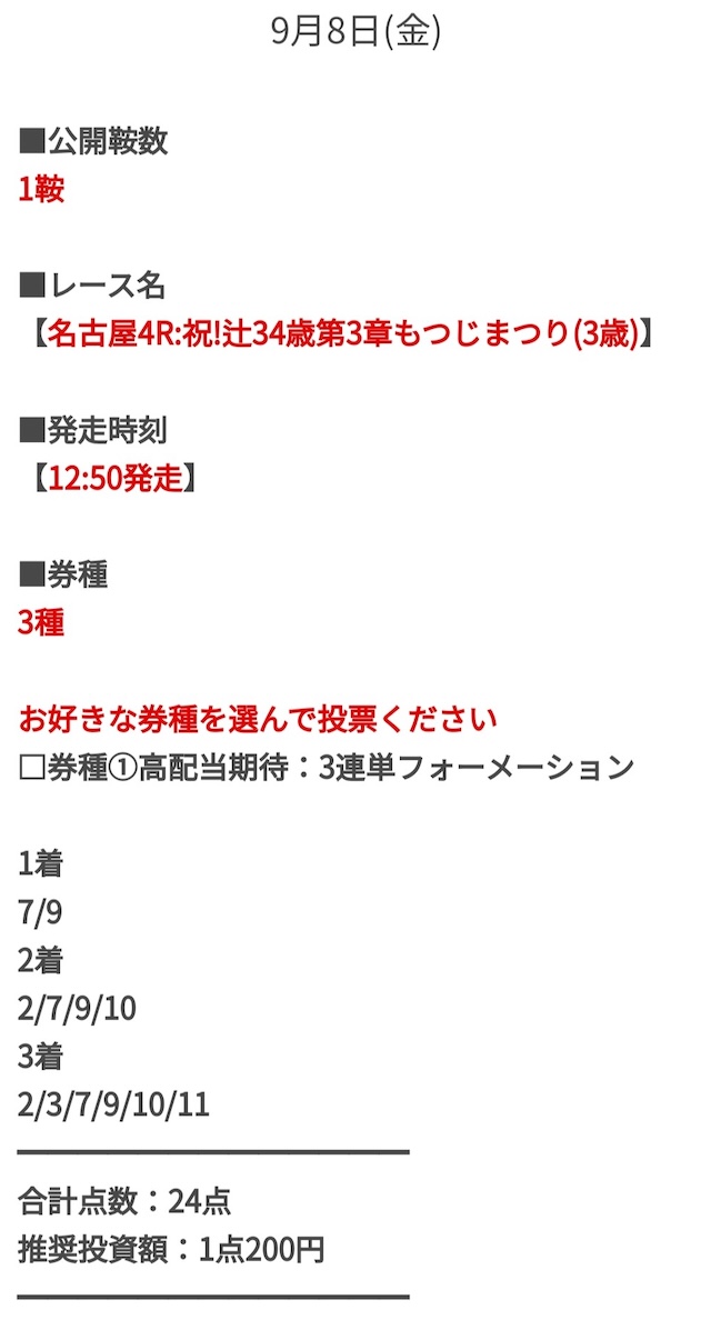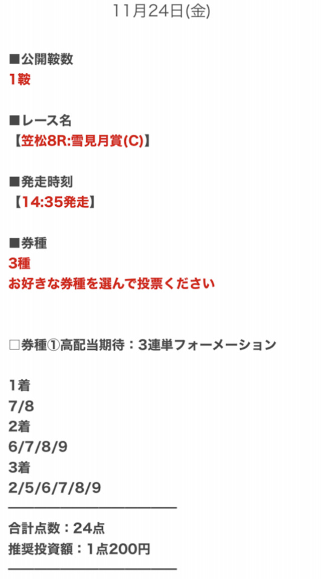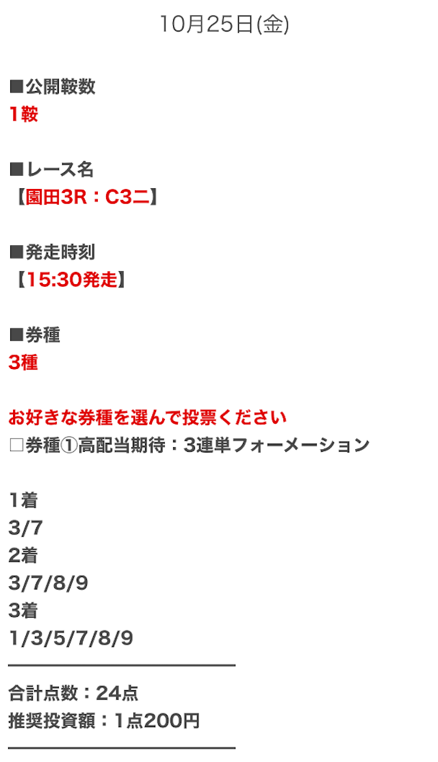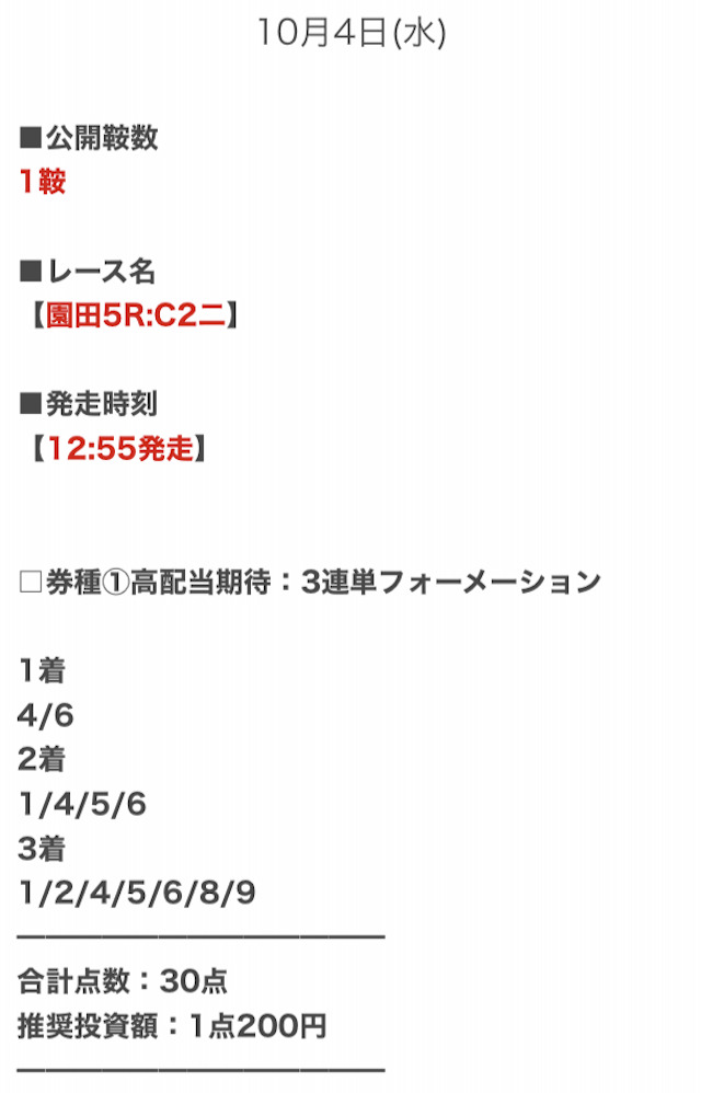 予想は毎日公開され、公開時間はレース当日の10時ごろ。