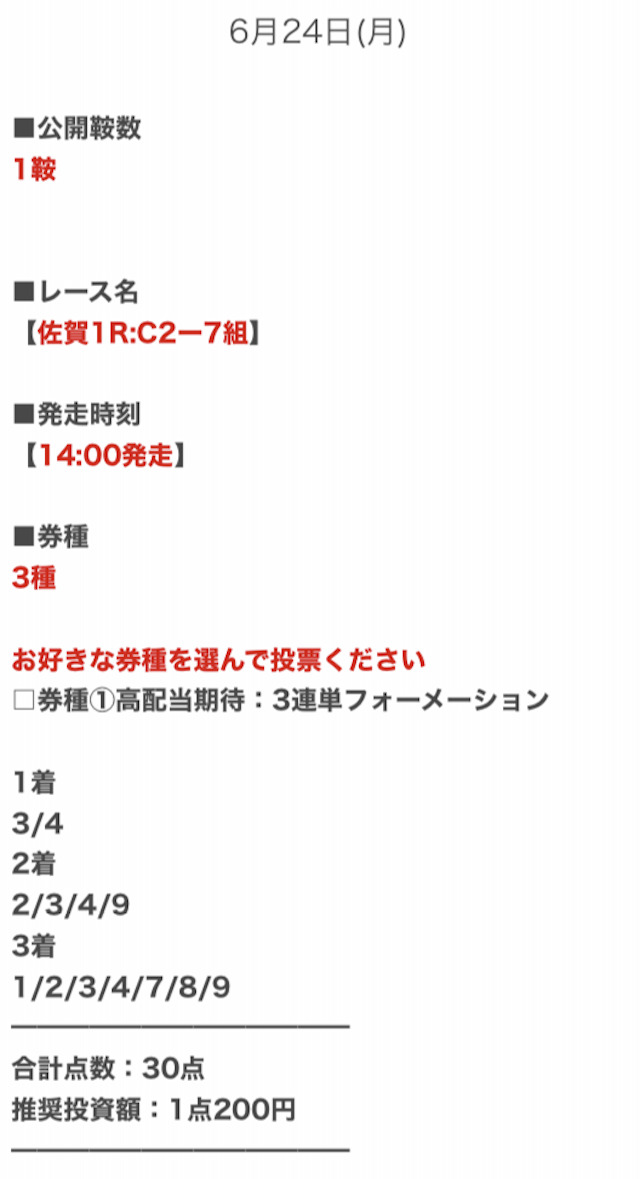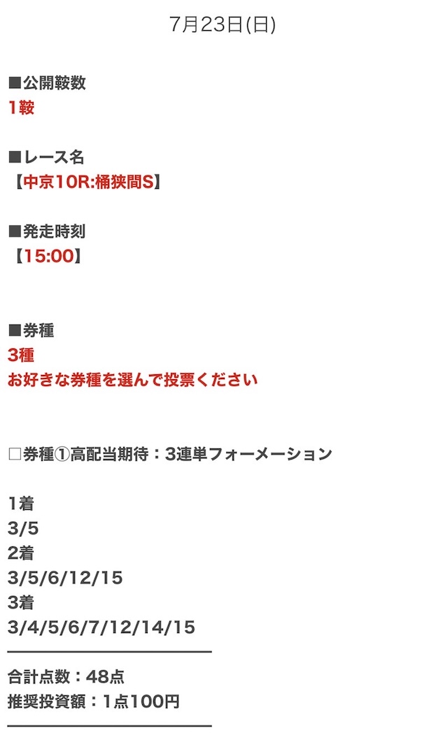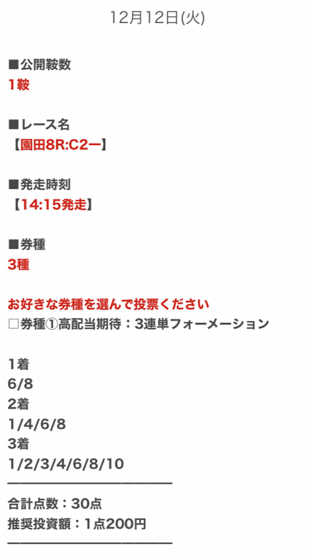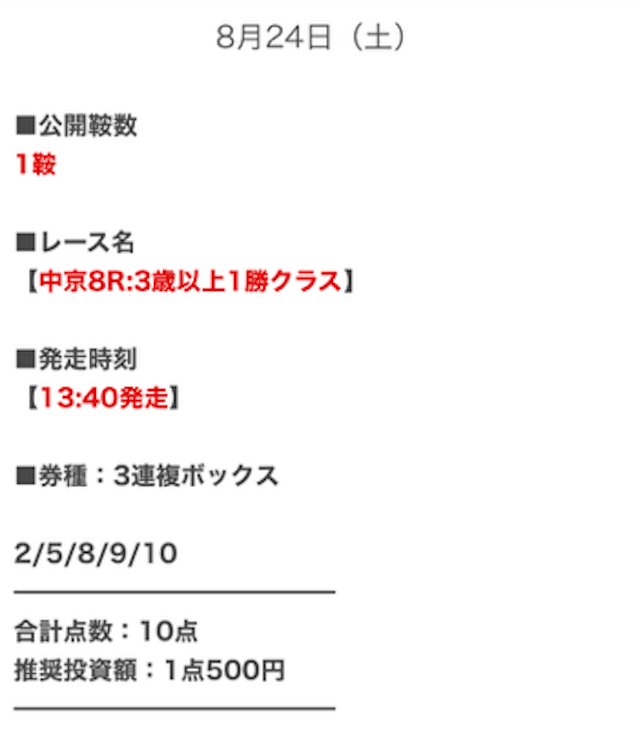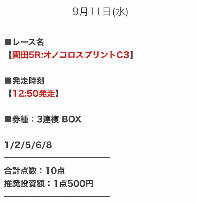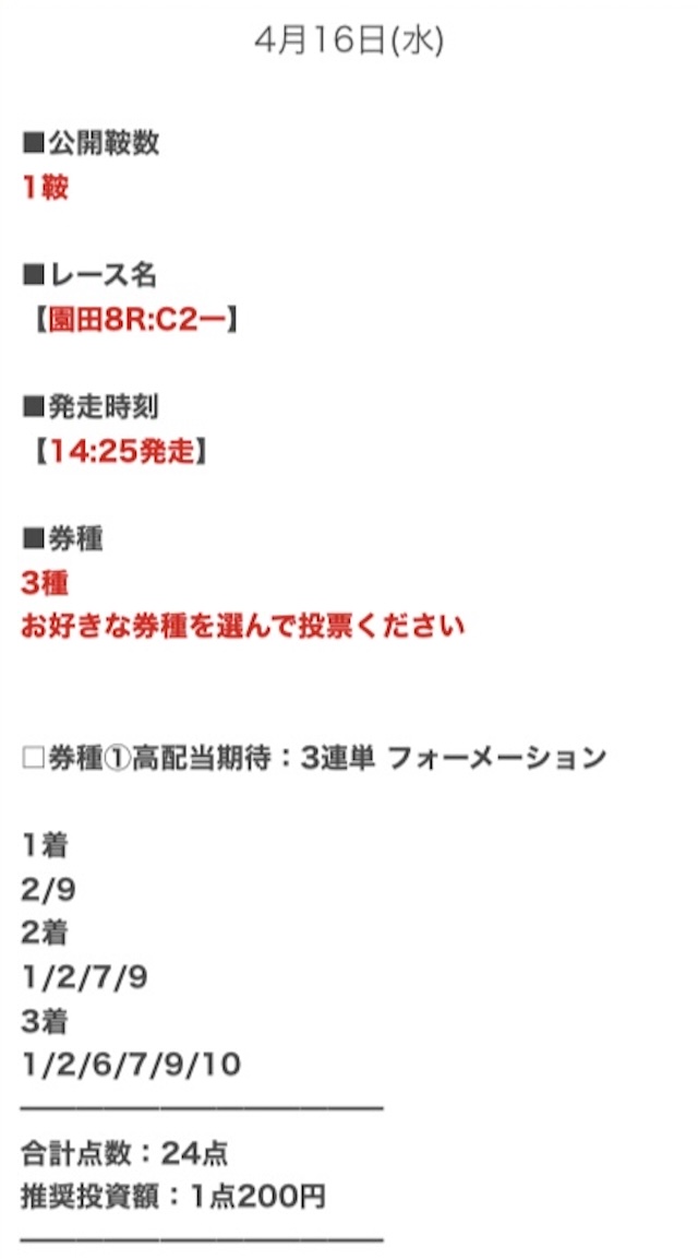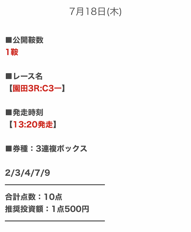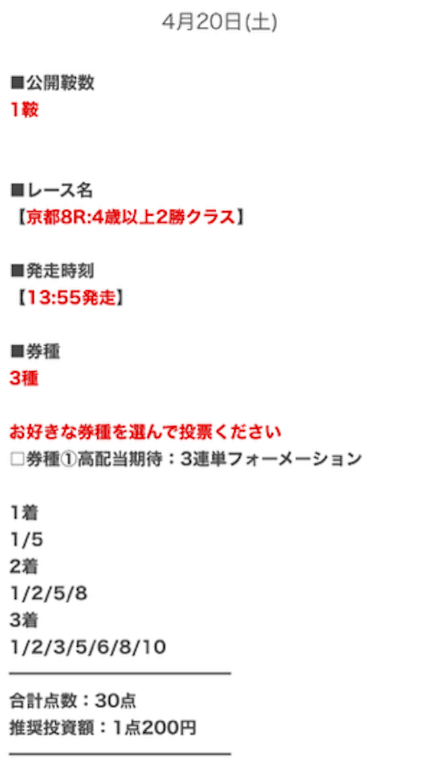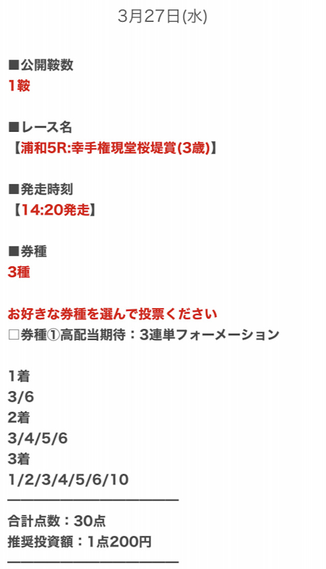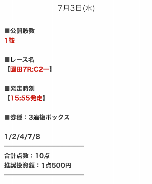 予想は毎日公開され、公開時間はレース当日の10時ごろ。