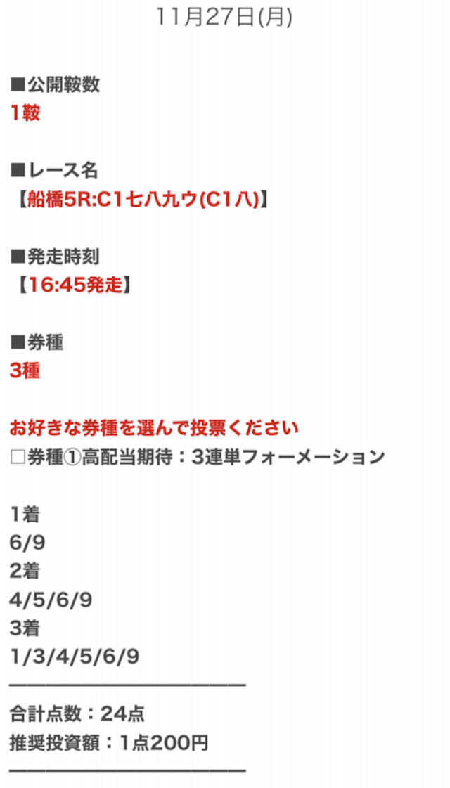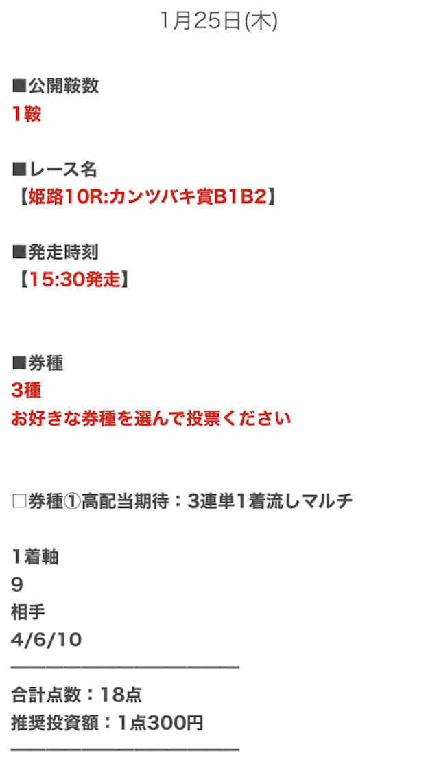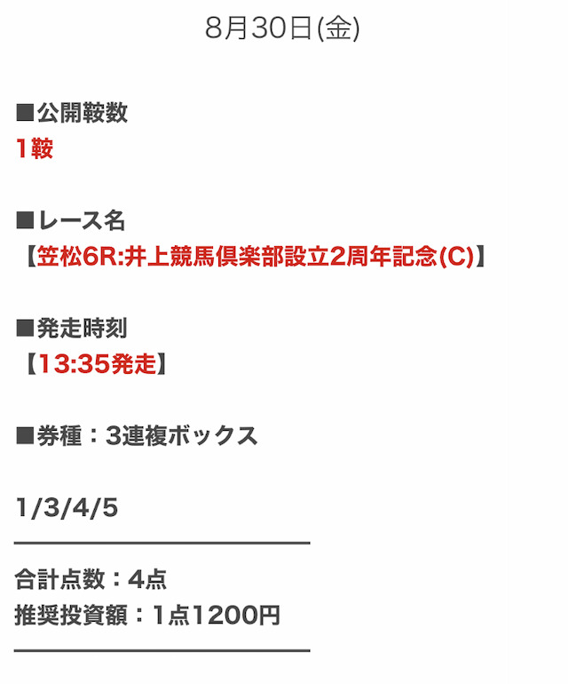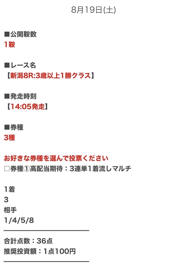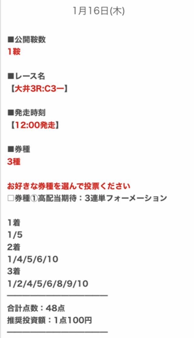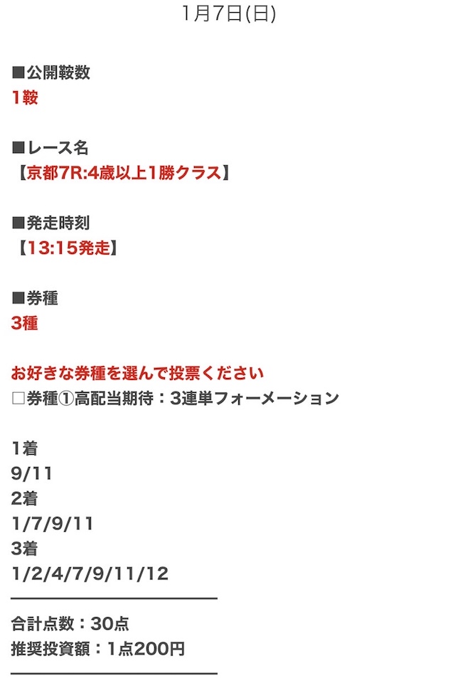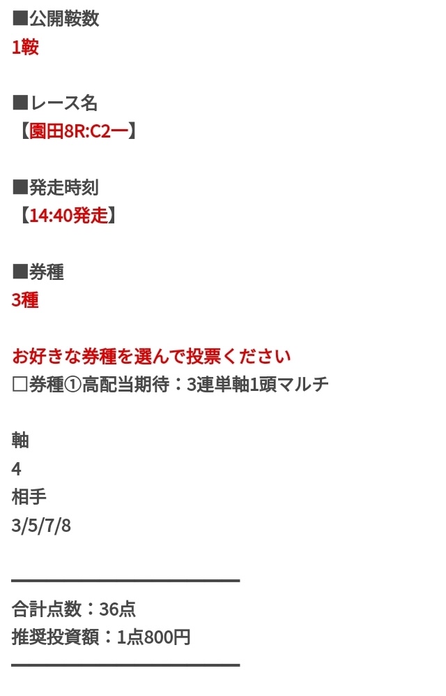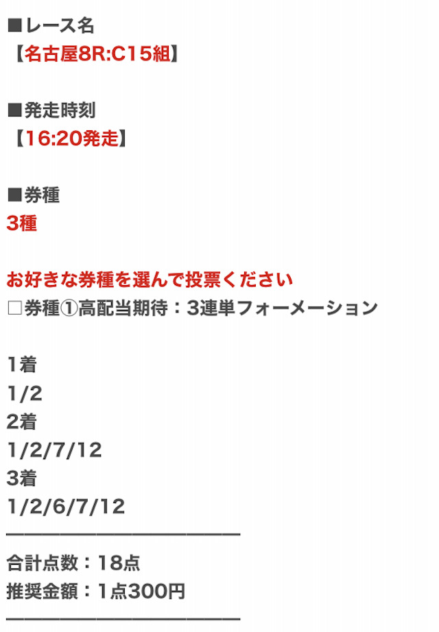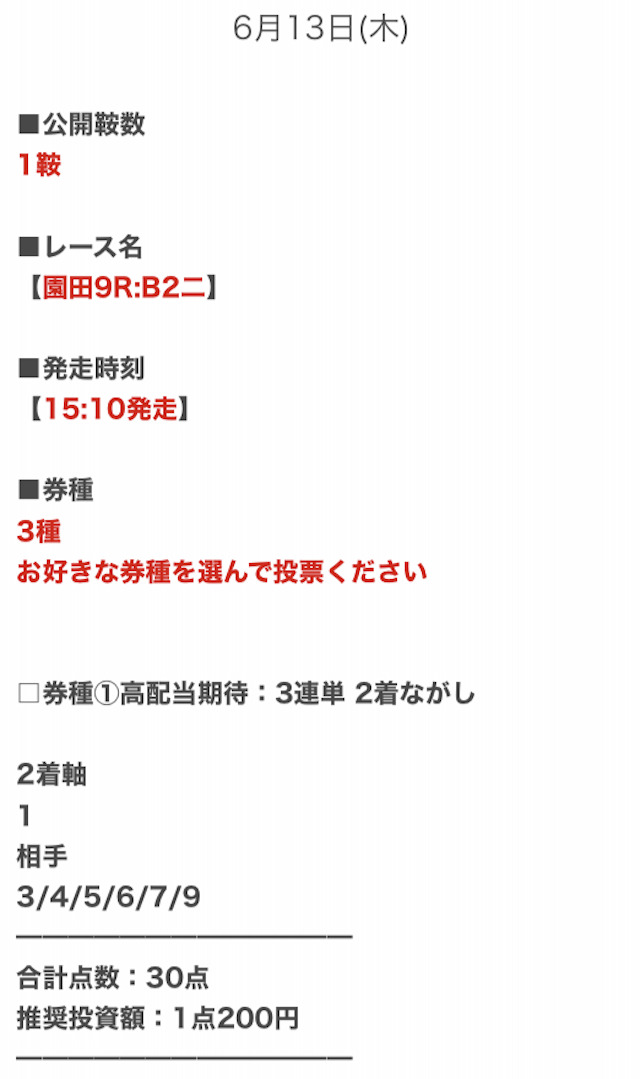 予想は毎日公開され、公開時間はレース当日の10時ごろ。