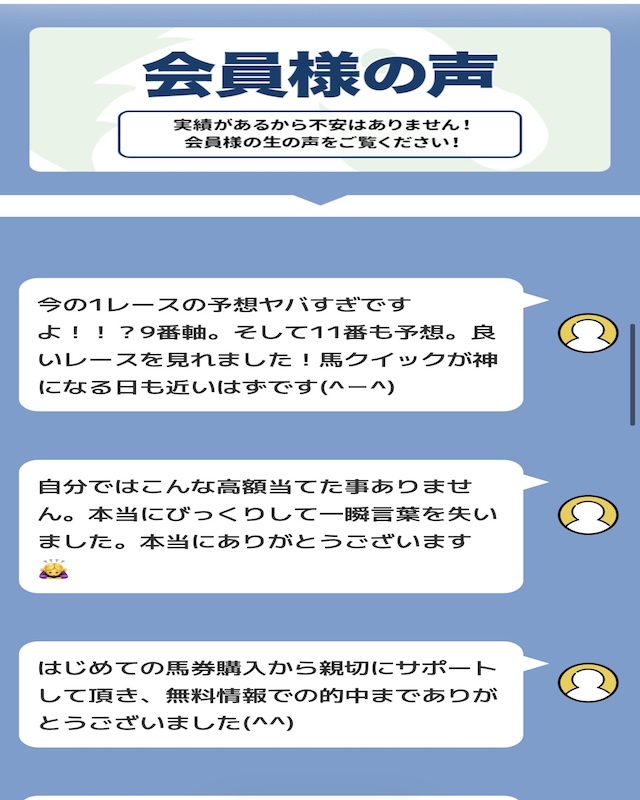サイトを見てみると、豊富な高評価の口コミと的中実績を確認!