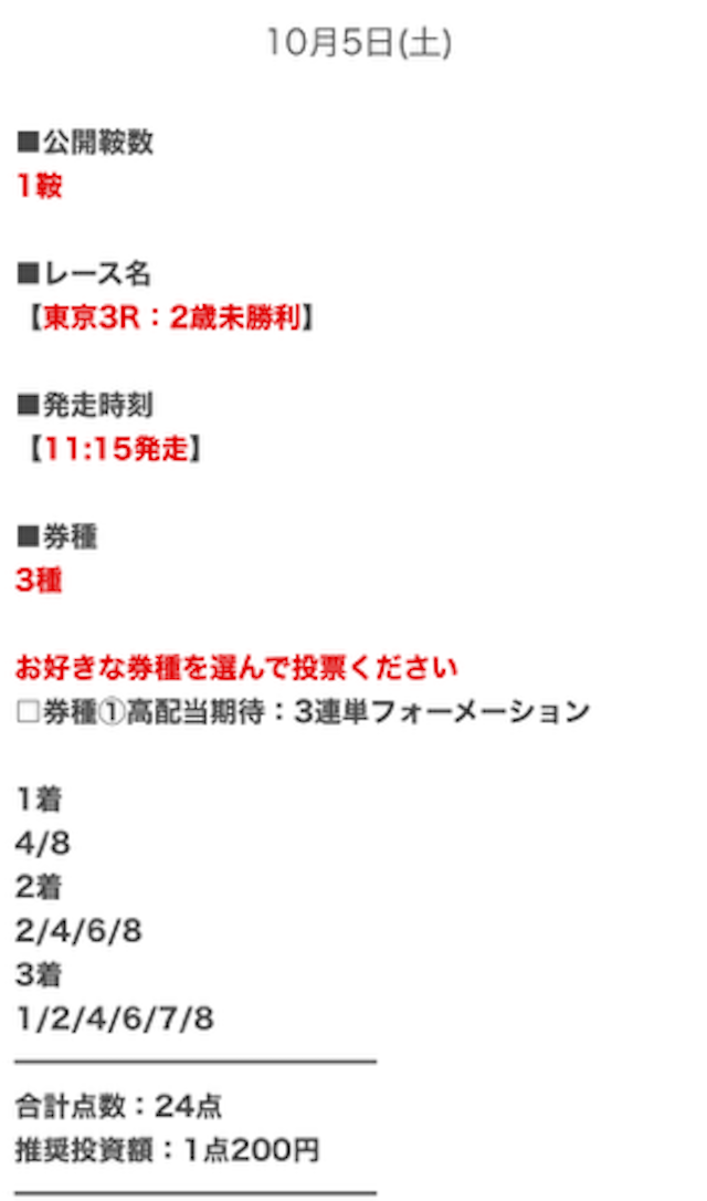 また、人気に囚われない馬選びをしていて、高配当を狙える点も魅力的でした。