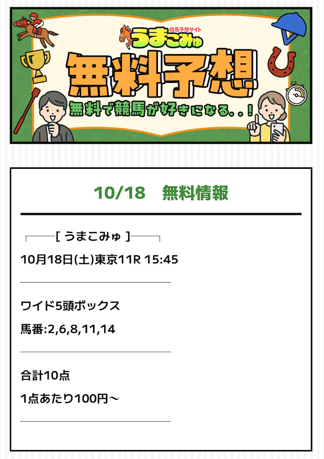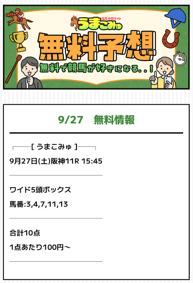 無料予想は毎日公開されているので、即日『当たる競馬』を楽しむことができます。