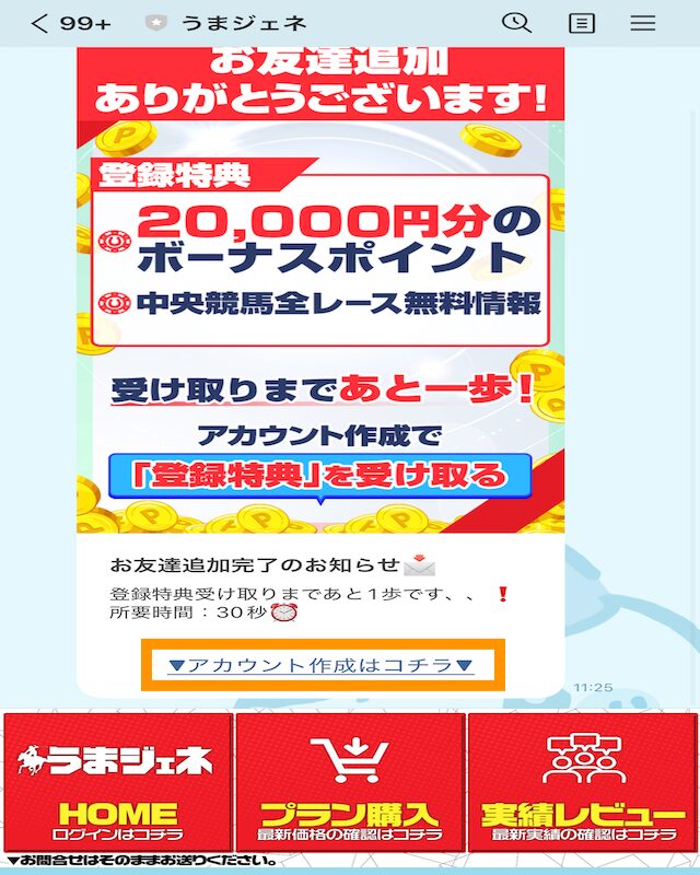 うまジェネには、公式サイトからLINEの友達追加をすれば登録できます。