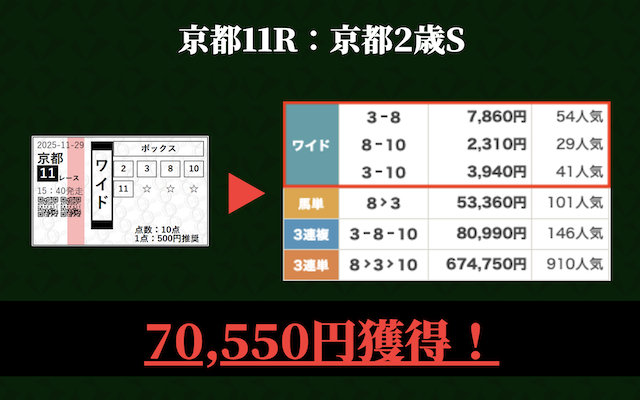 対象レースの実際のオッズと馬券コレクションが選んだ馬がこちら。