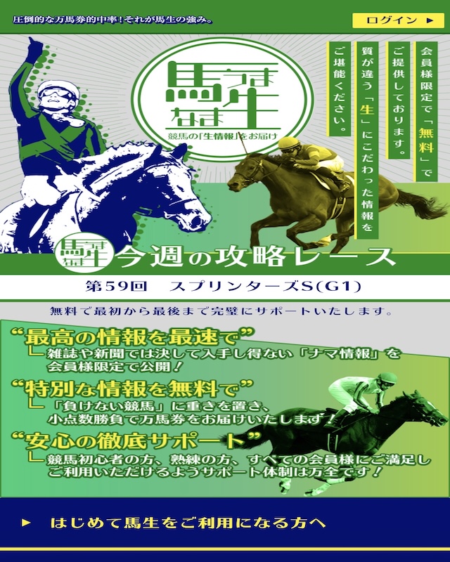 馬生は専門情報班が生の情報を分析し有力馬の選出をする競馬予想サイト!