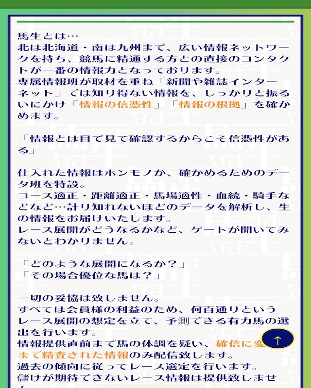 馬生は、専門情報班によっていくつものデータを分析して予想を公開するサイトです。