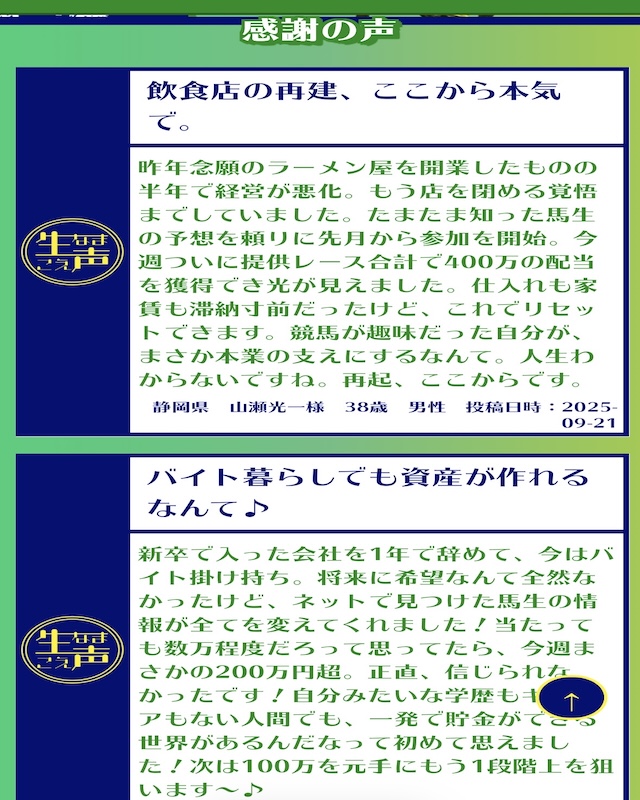 検証記事をご覧いただきありがとうござい ました! 利用者が成果を体感できるような、本当に 当たる競馬予想サイトだけをこれからも紹 介していけるような検証を志していきます! 経歴・プロフィールは馬ラボについてから