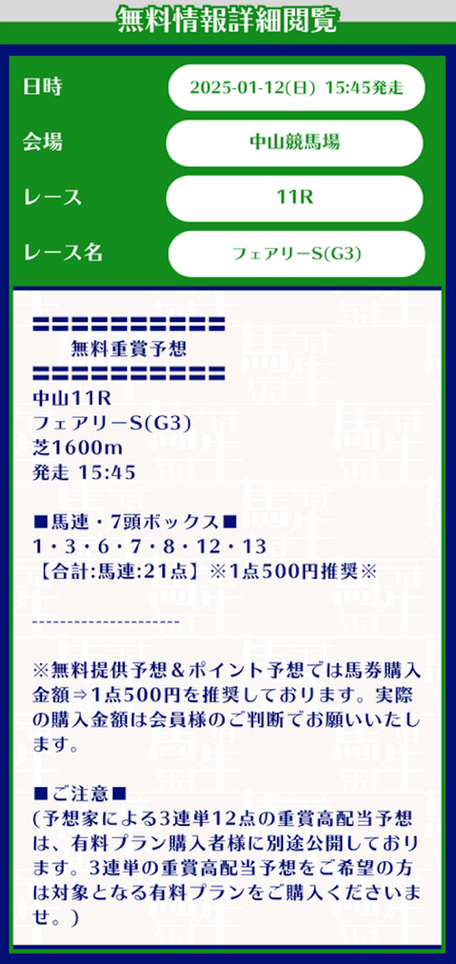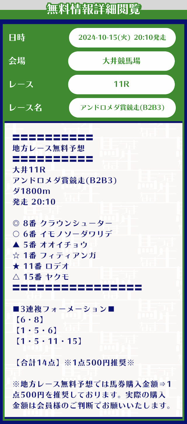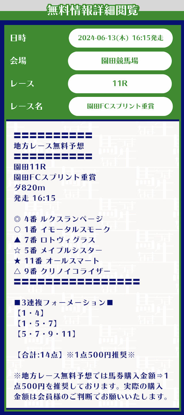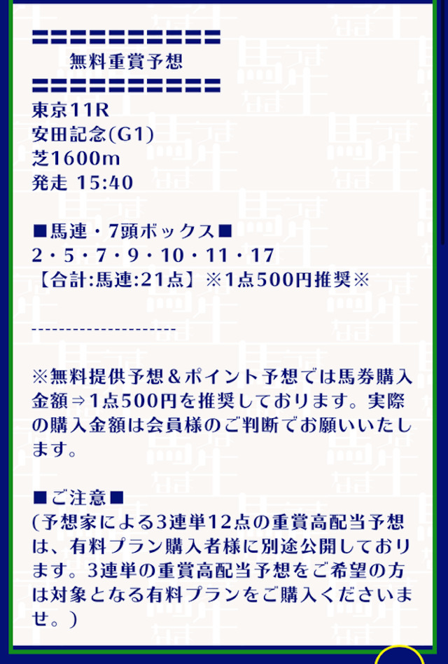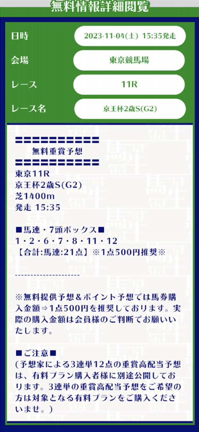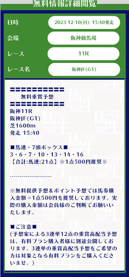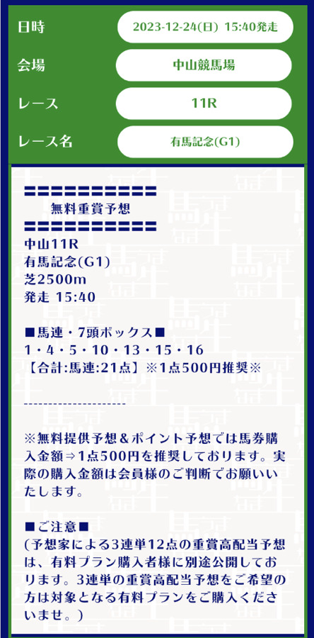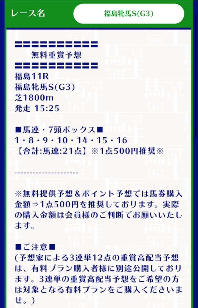 もしそんな高額なお金を持っていないという方は、無料予想で当てて資金を貯めましょう。