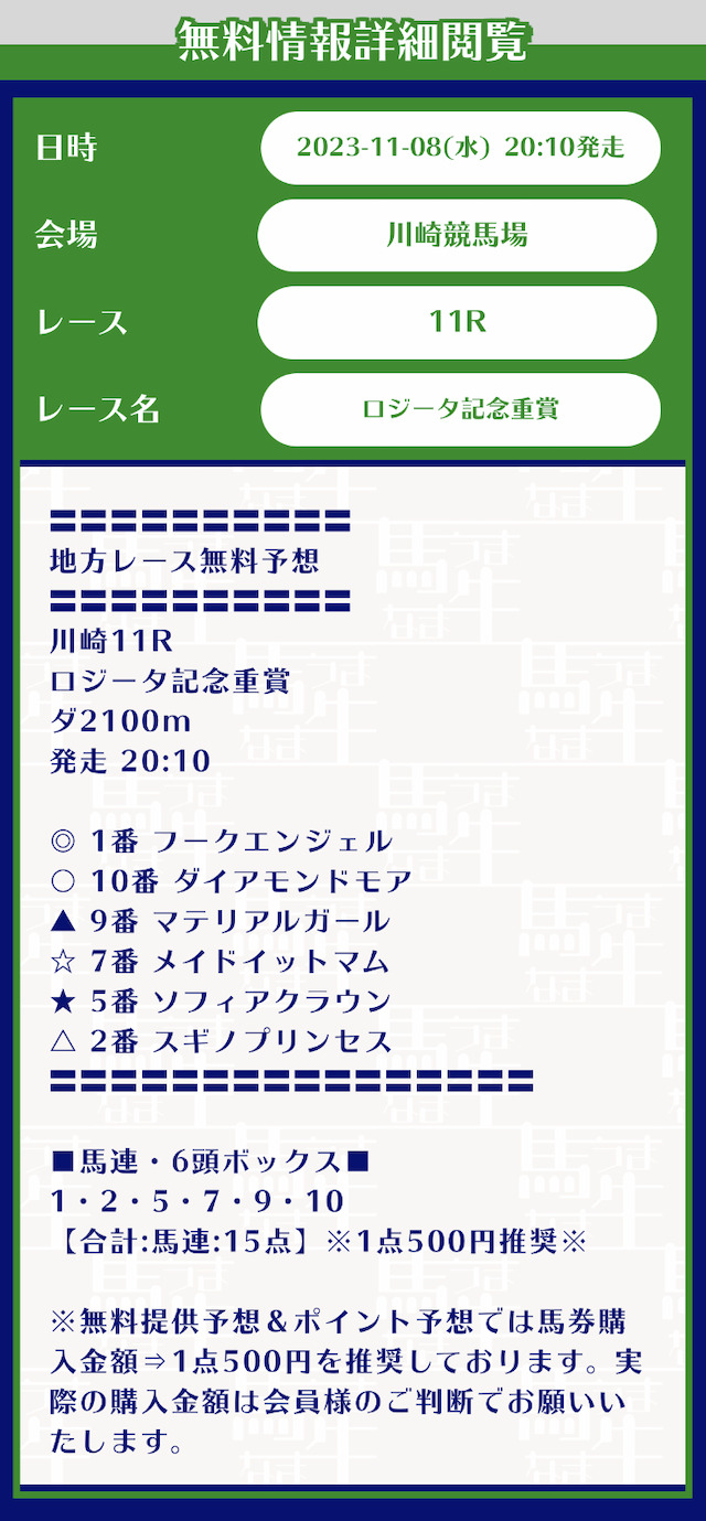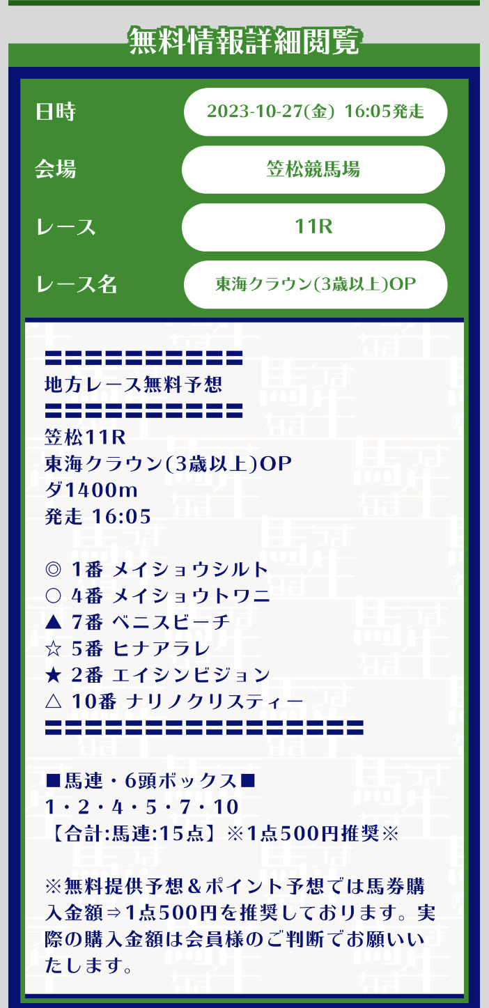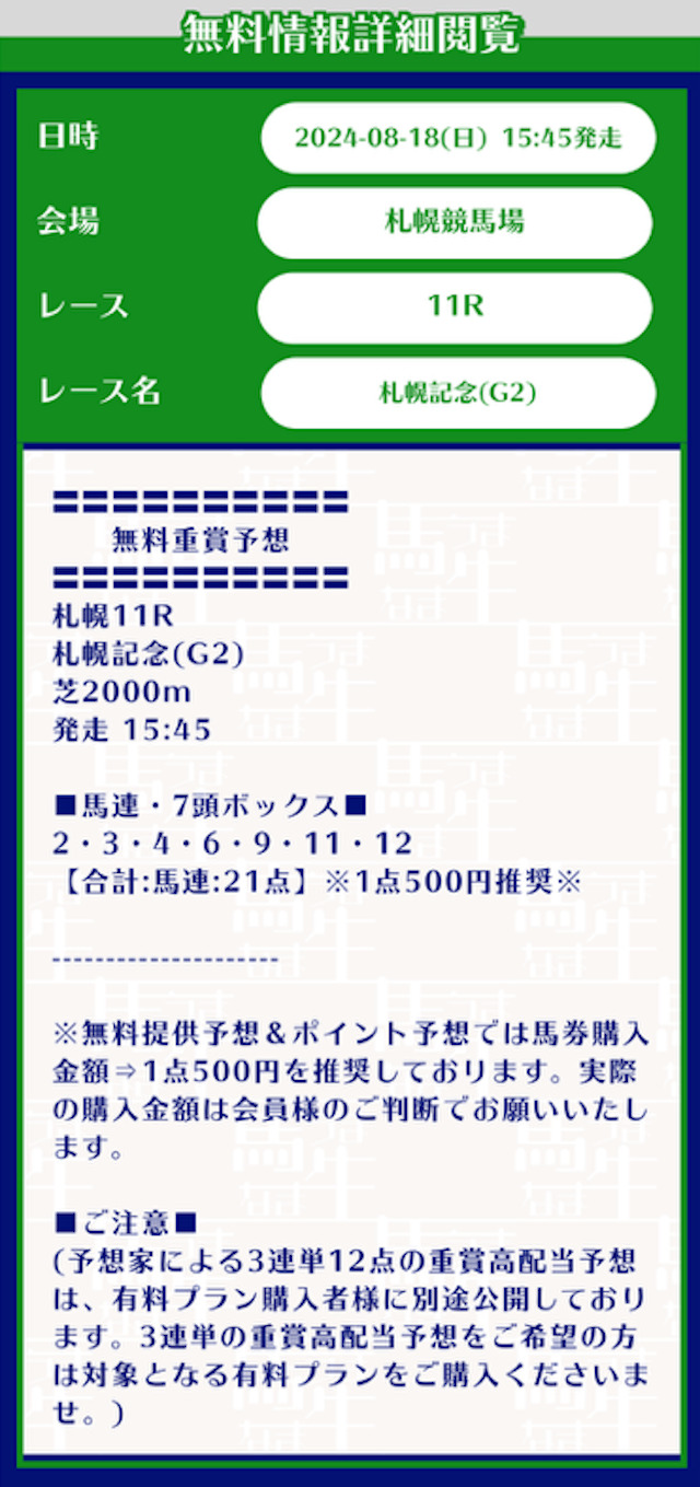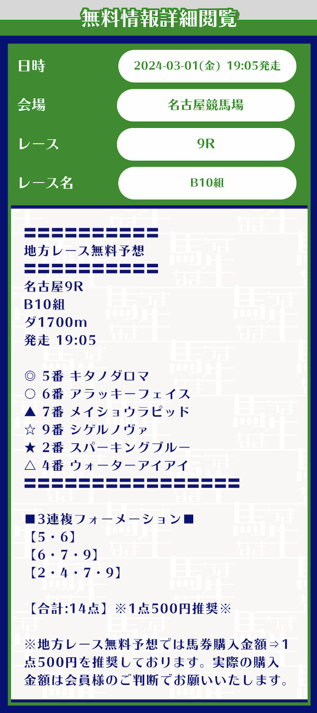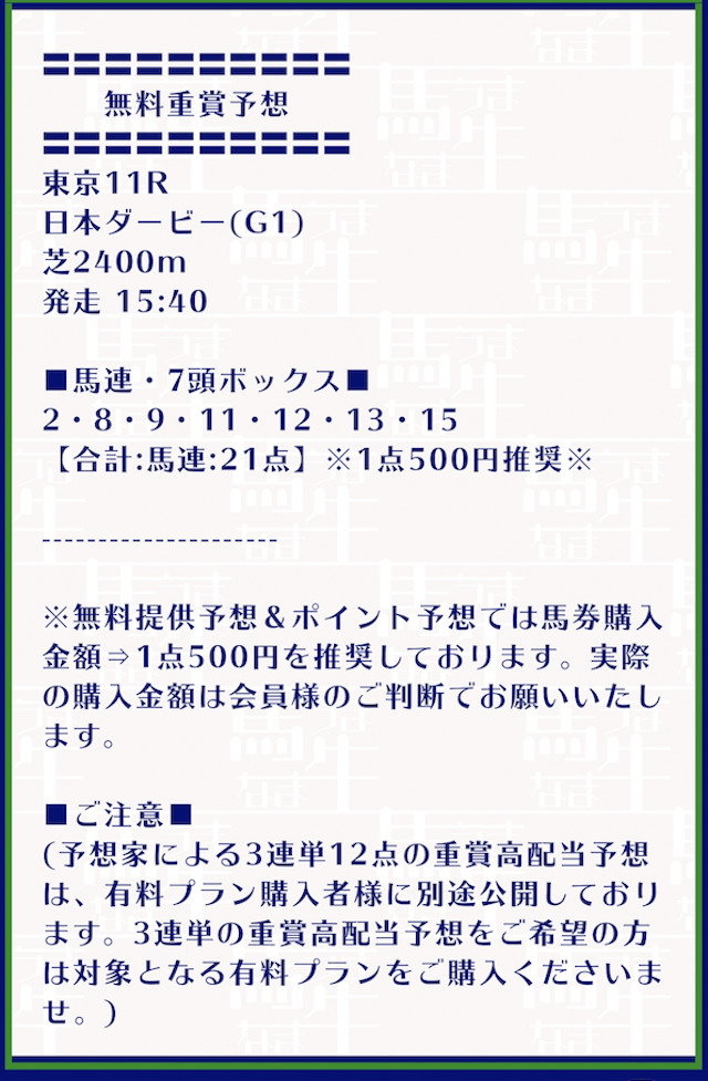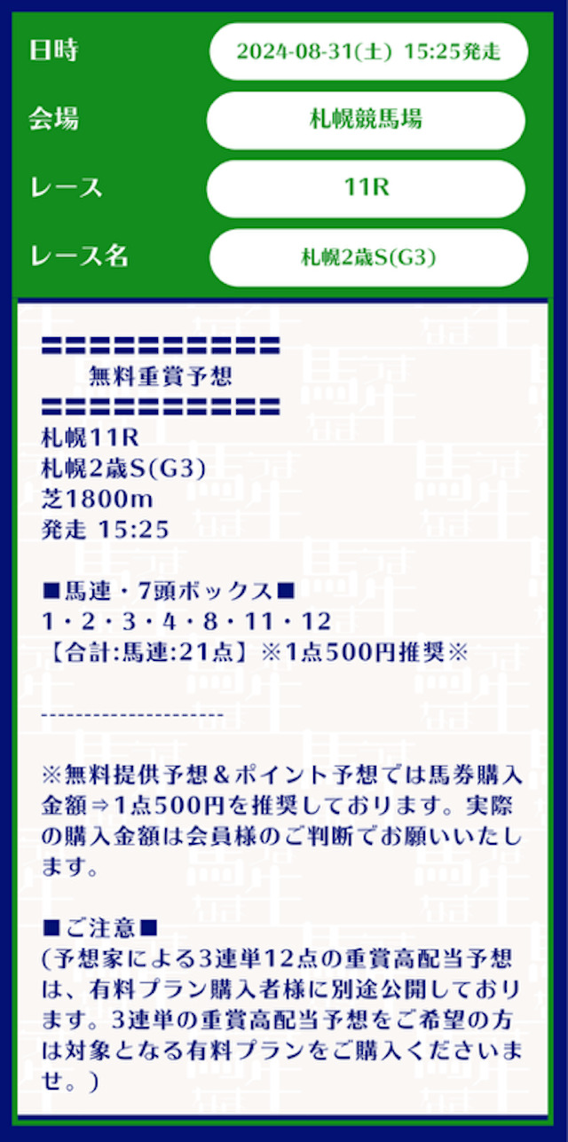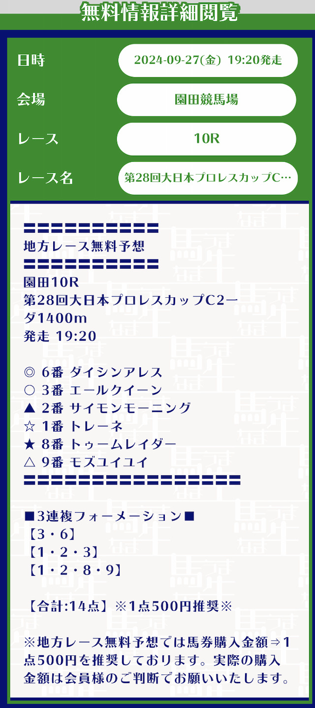 もしそんな高額なお金を持っていないという方は、無料予想で当てて資金を貯めましょう。