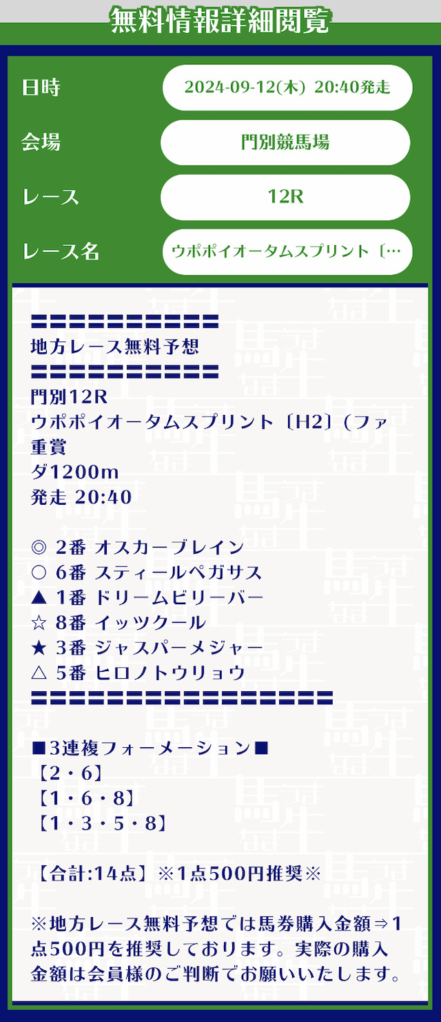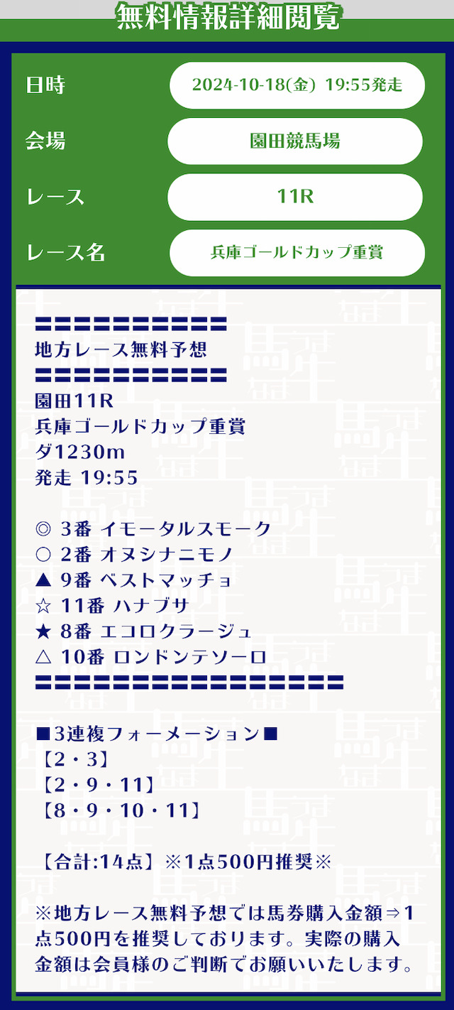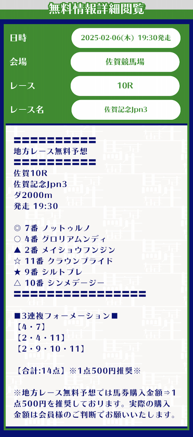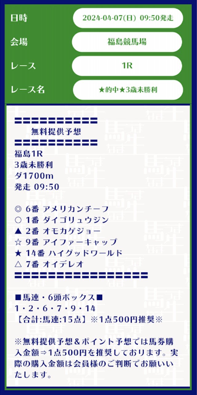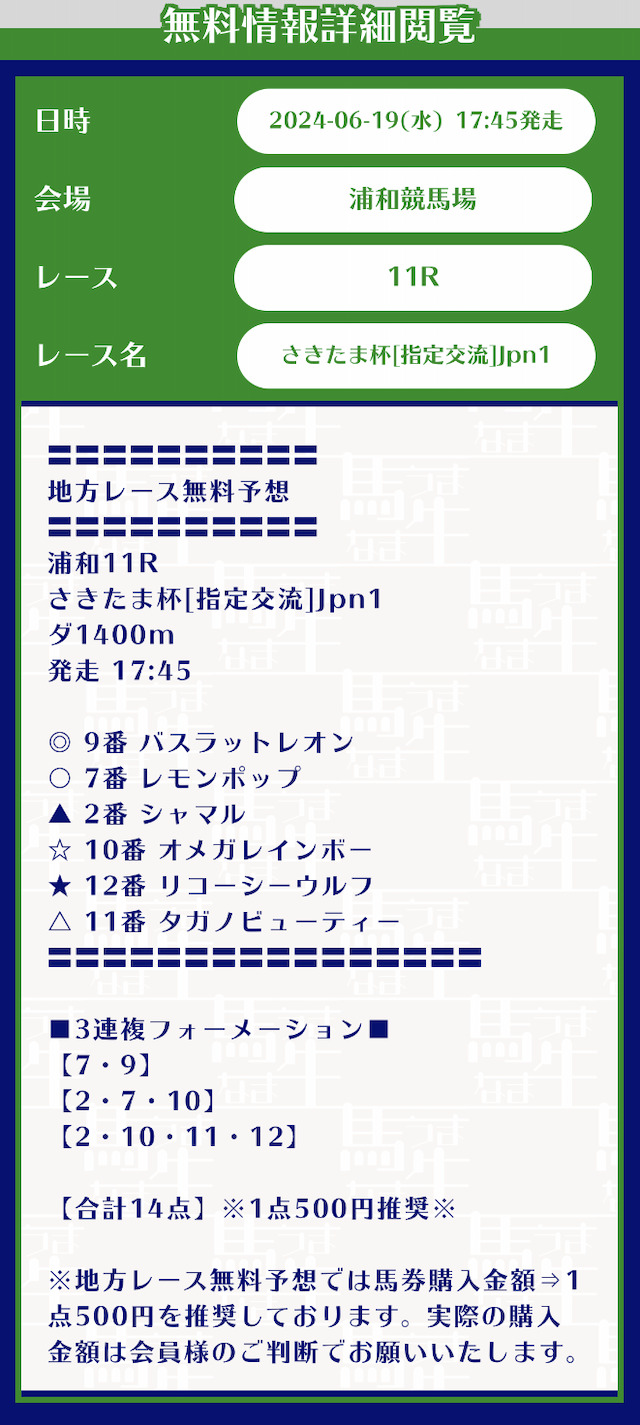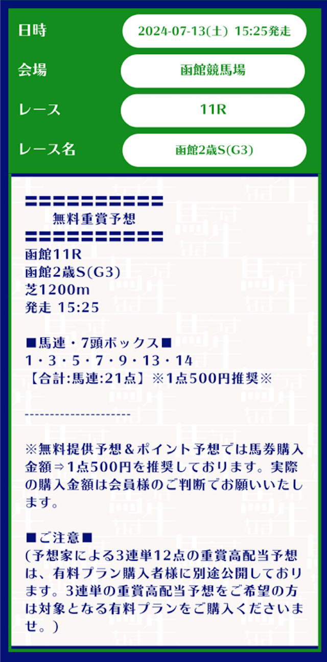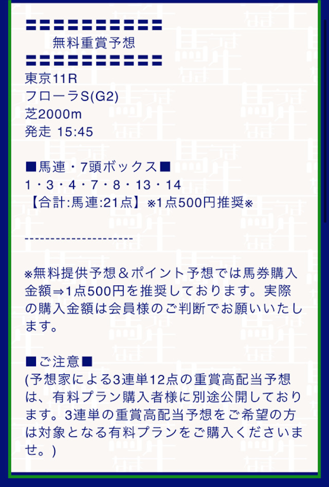 もしそんな高額なお金を持っていないという方は、無料予想で当てて資金を貯めましょう。