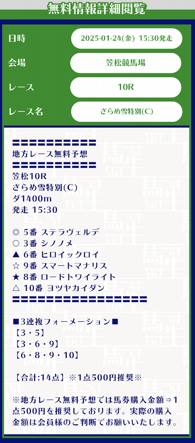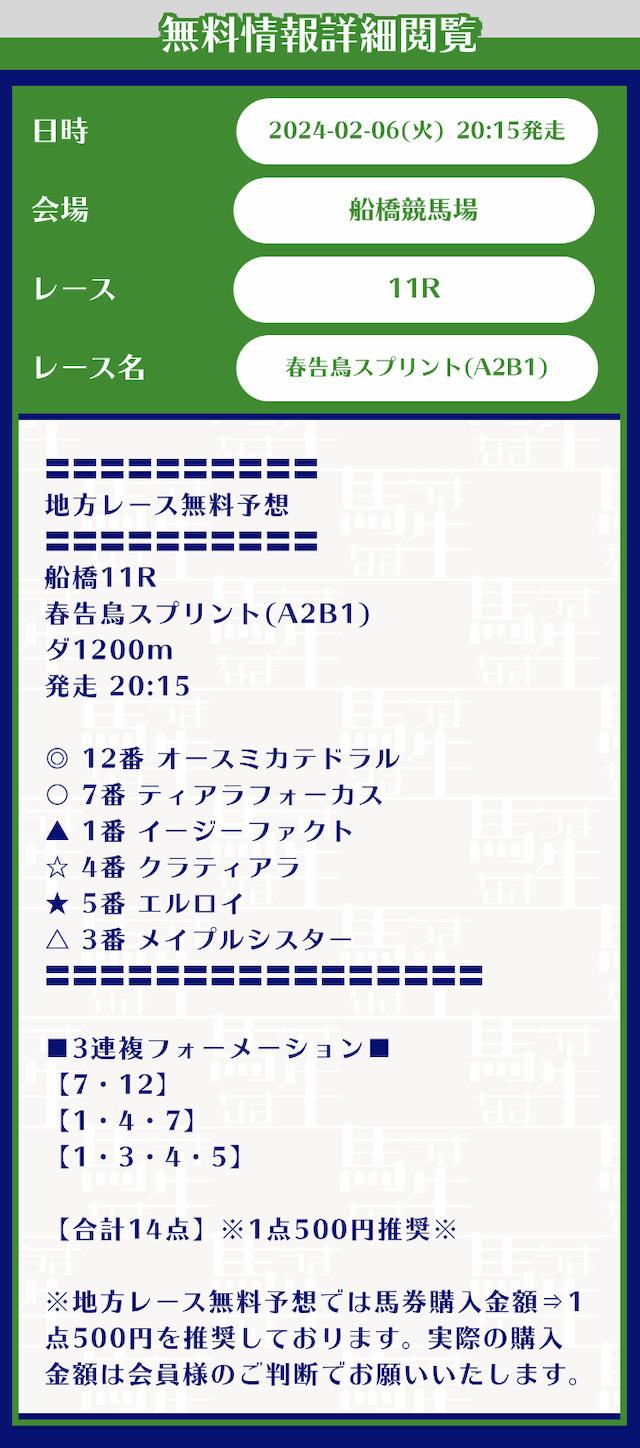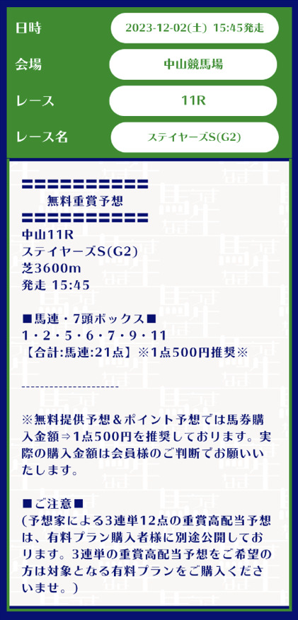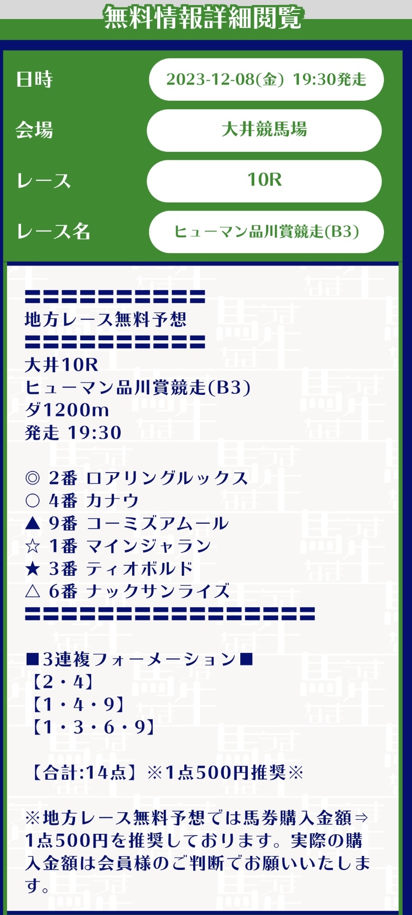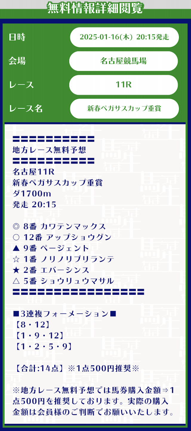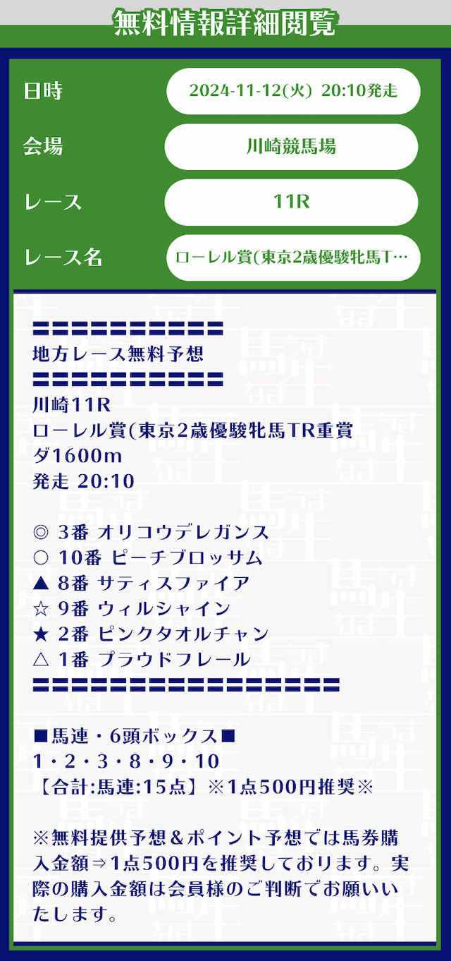 もしそんな高額なお金を持っていないという方は、無料予想で当てて資金を貯めましょう。