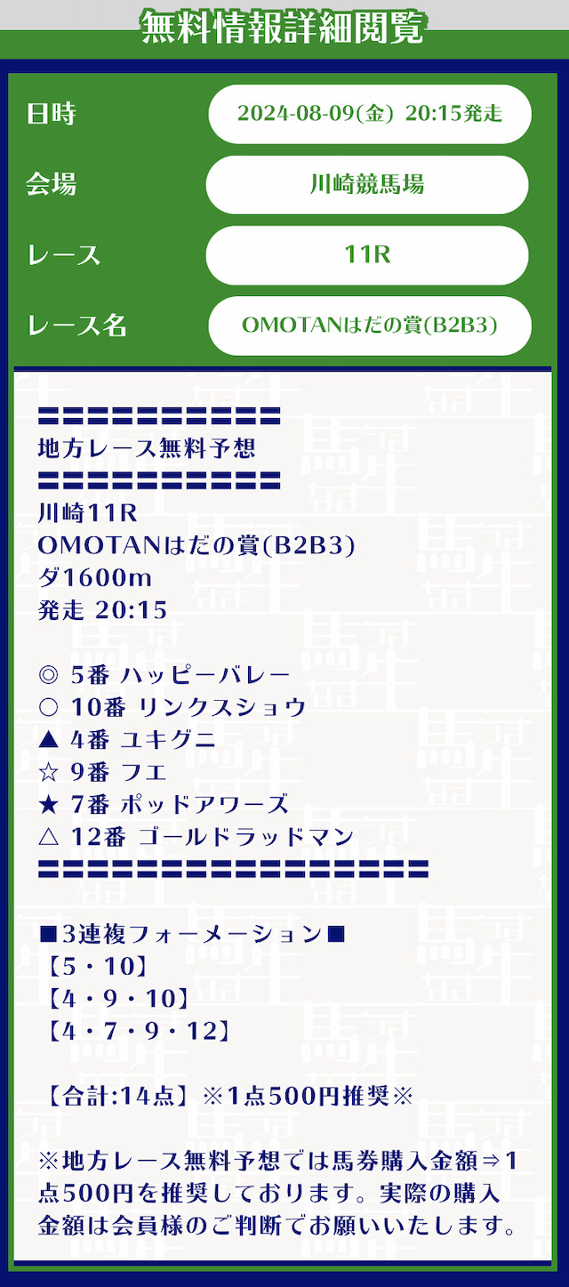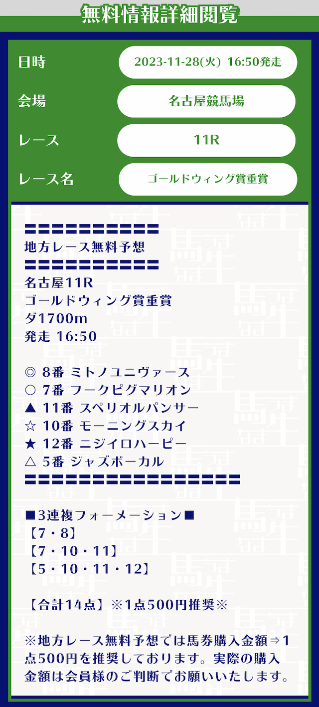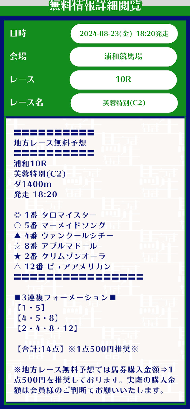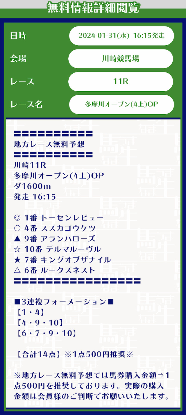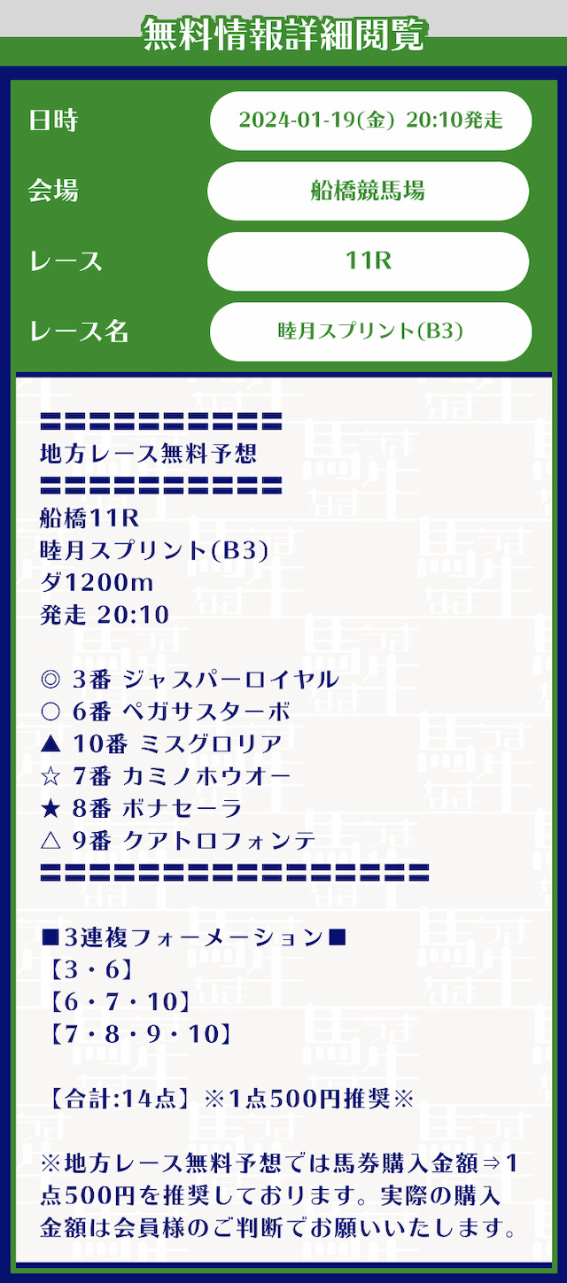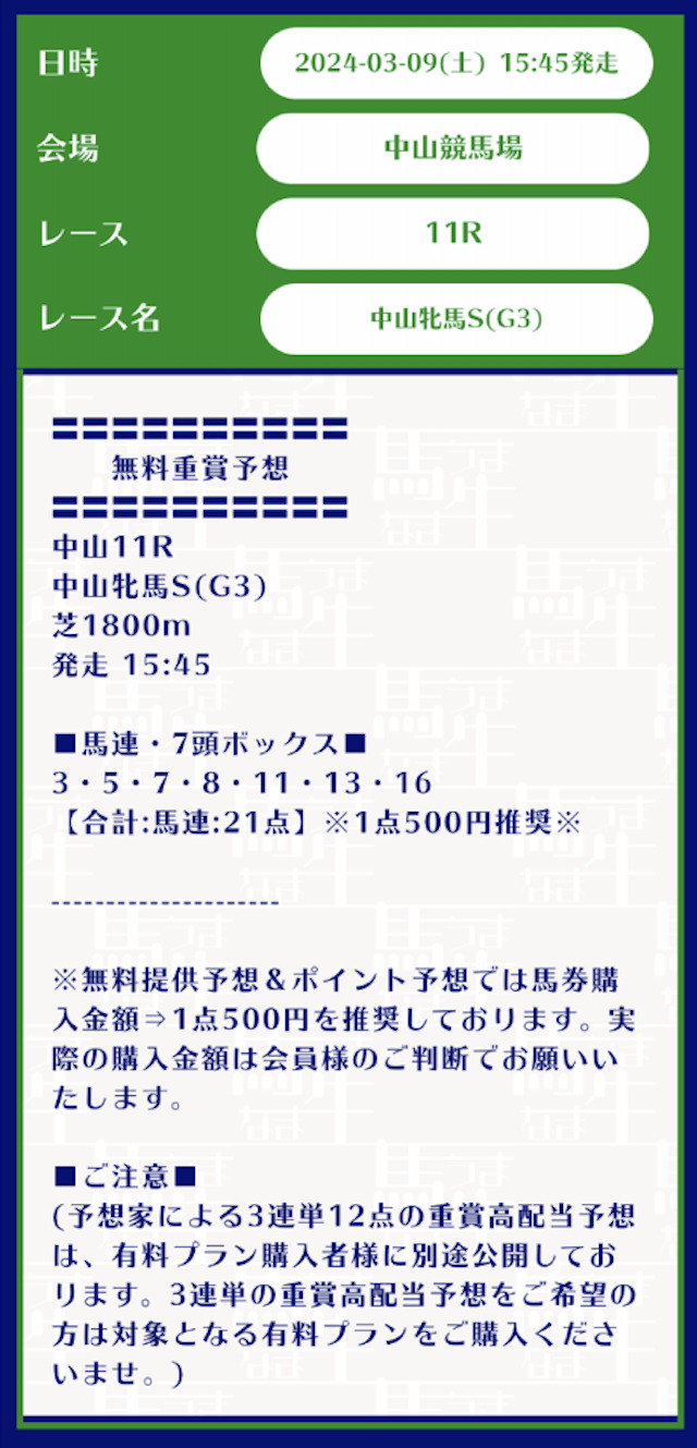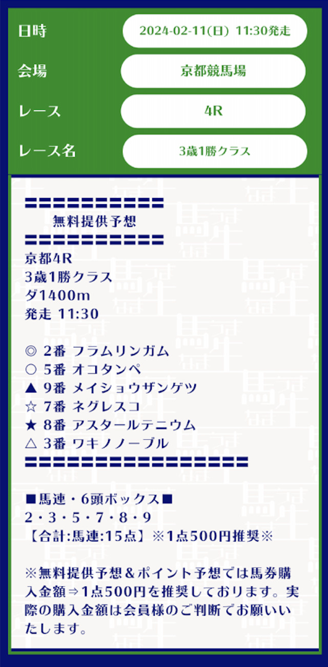 もしそんな高額なお金を持っていないという方は、無料予想で当てて資金を貯めましょう。