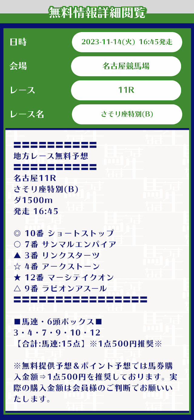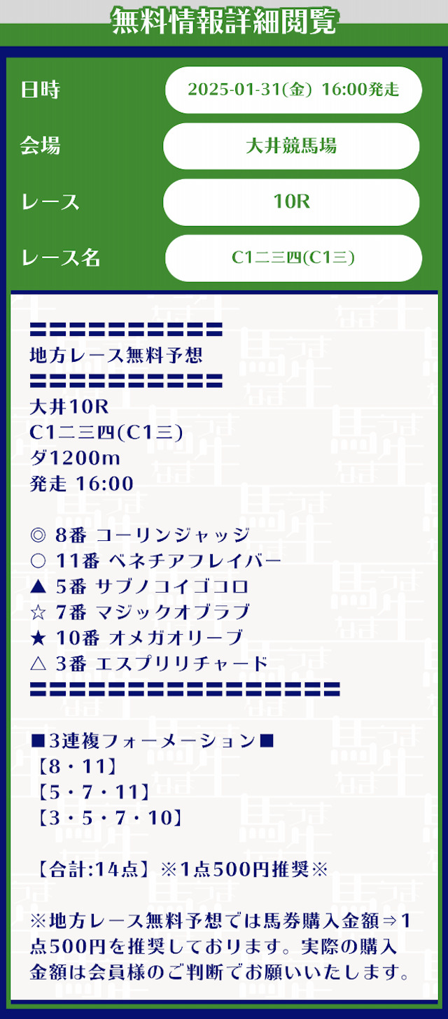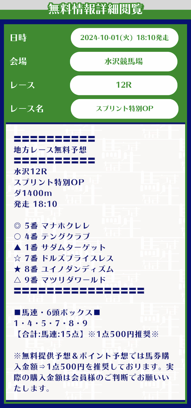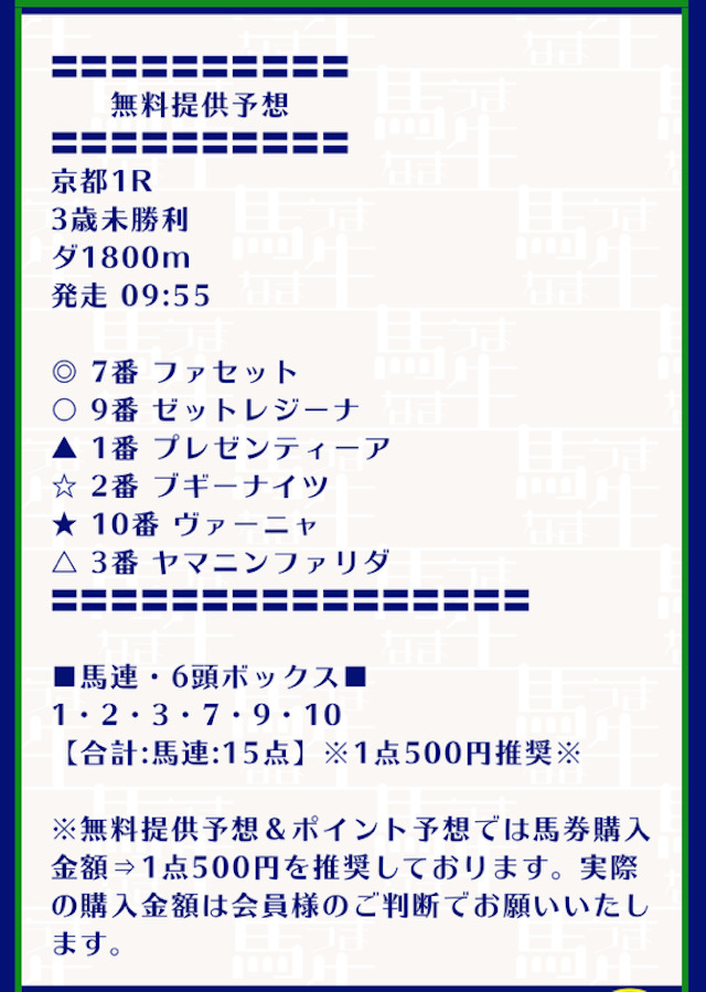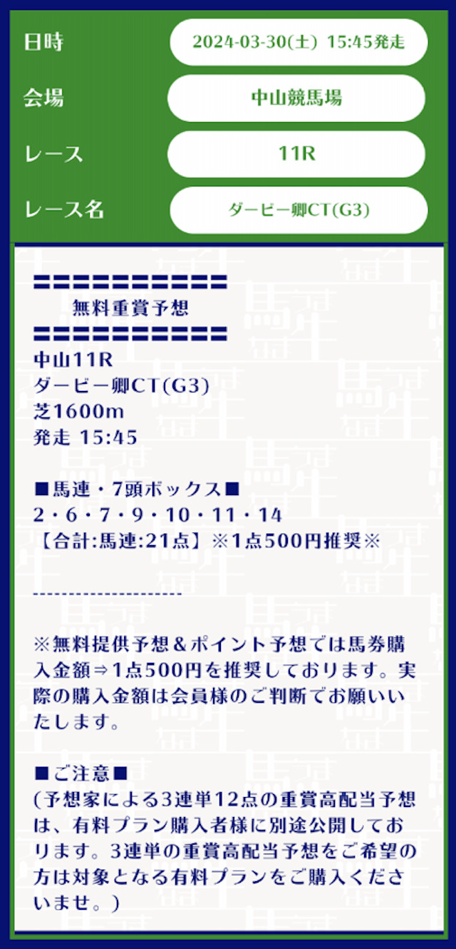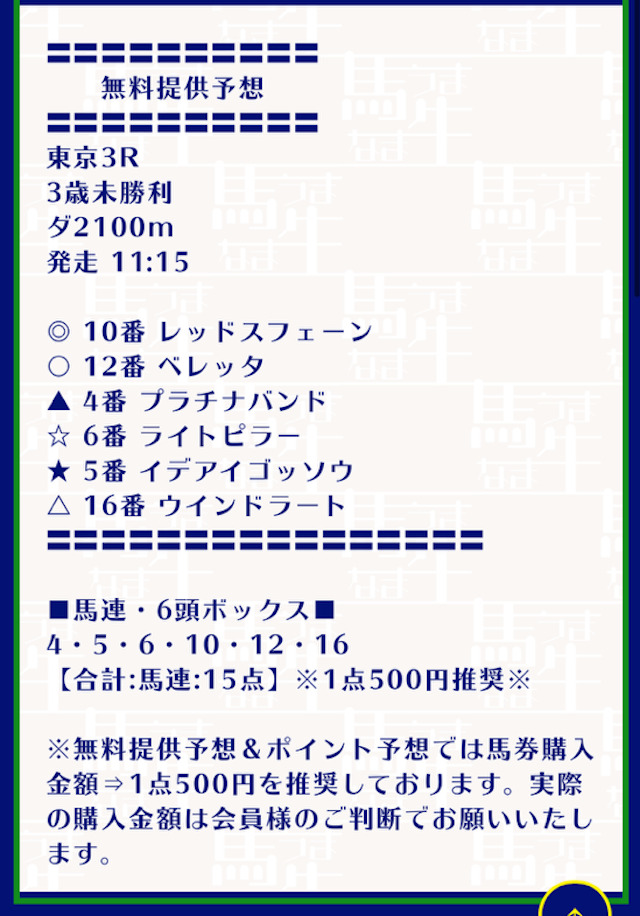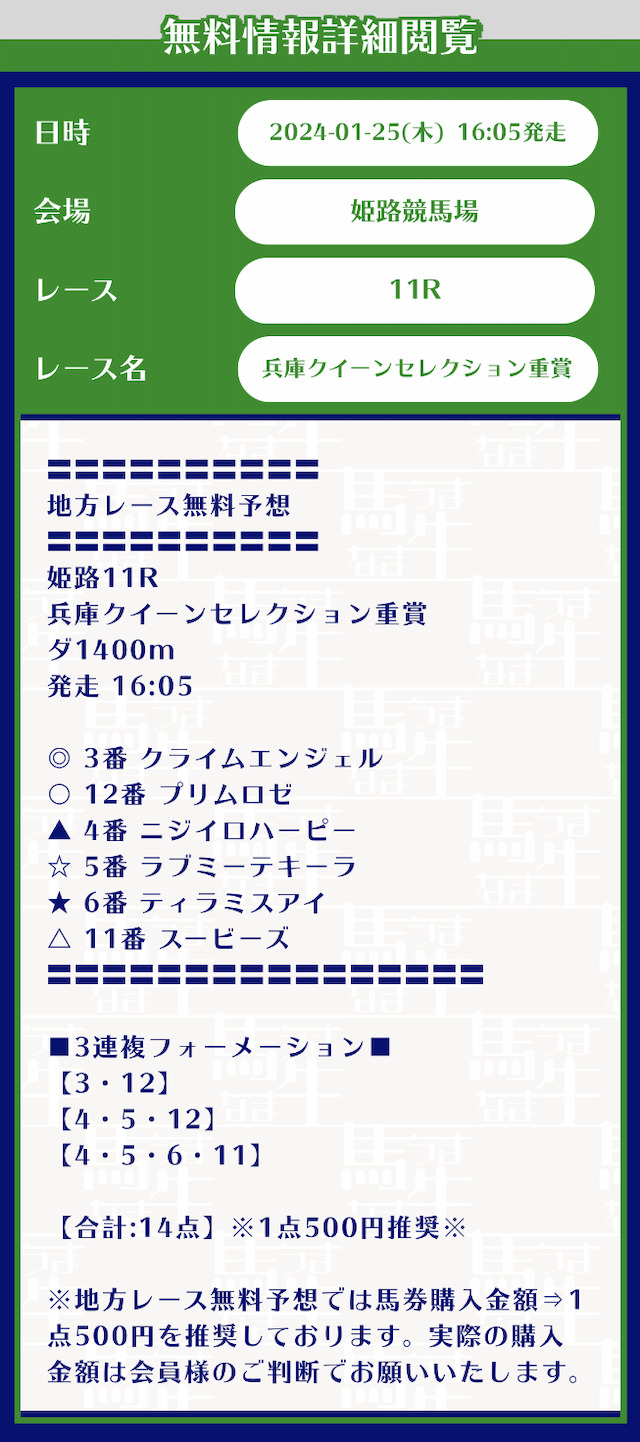 もしそんな高額なお金を持っていないという方は、無料予想で当てて資金を貯めましょう。