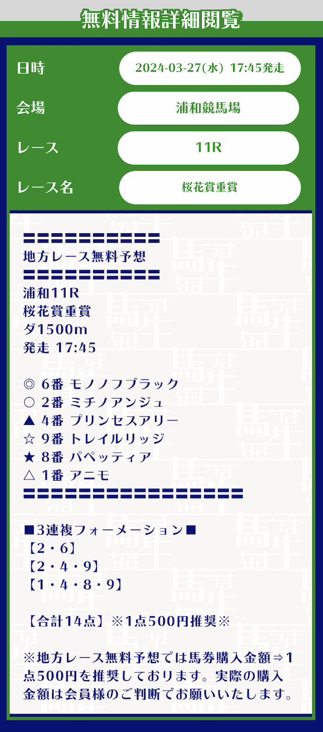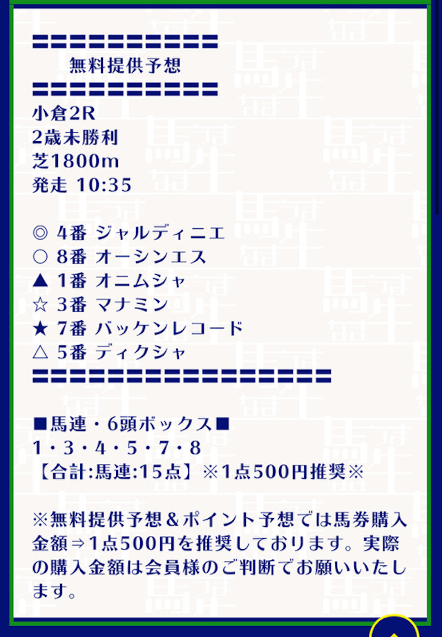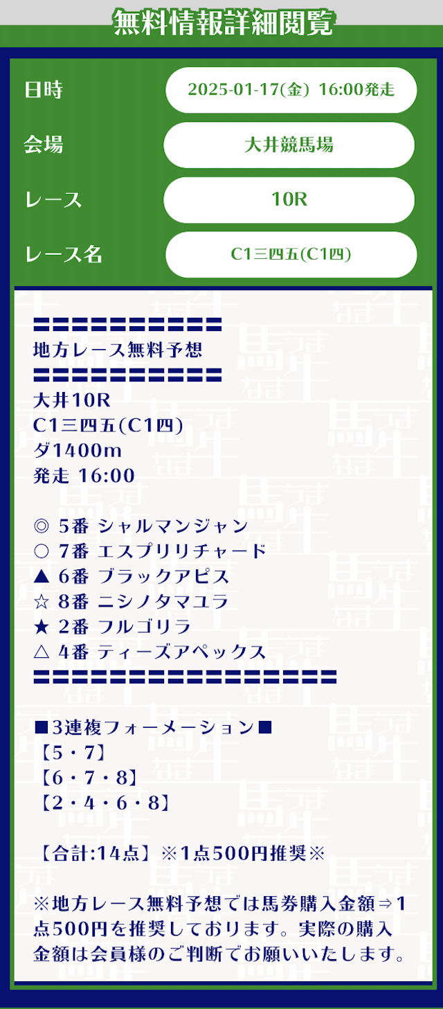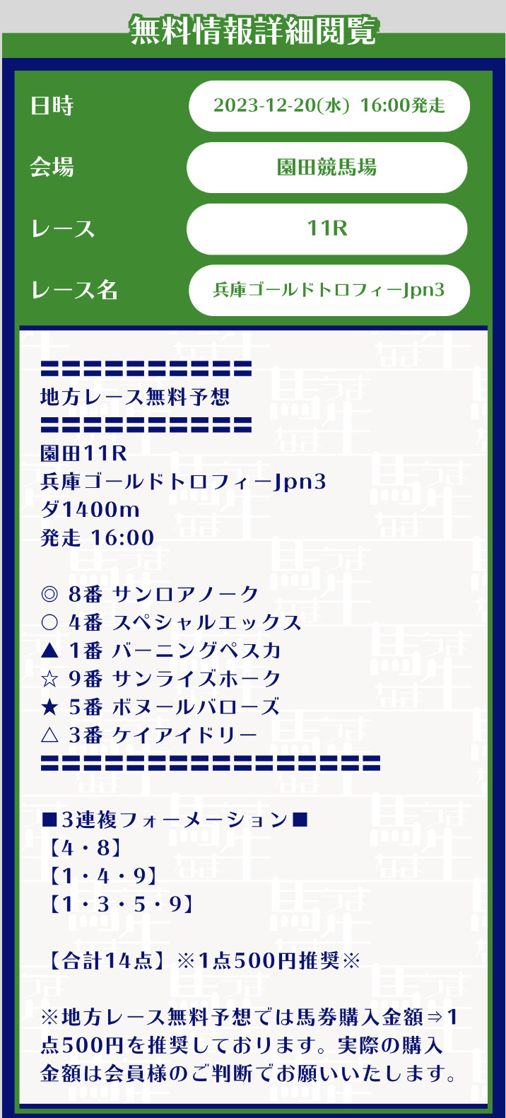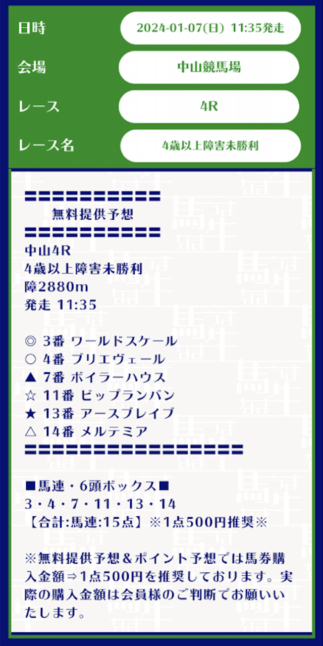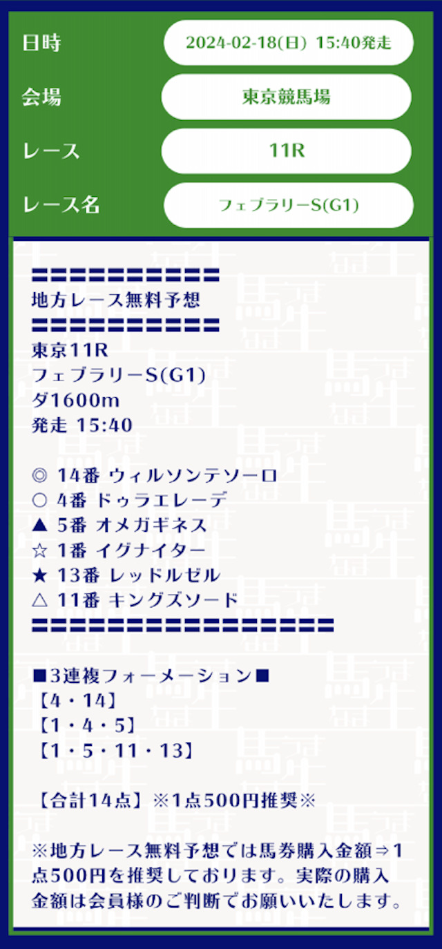 もしそんな高額なお金を持っていないという方は、無料予想で当てて資金を貯めましょう。